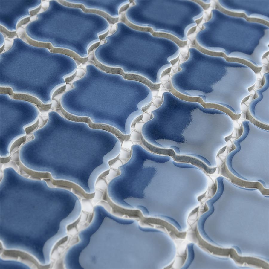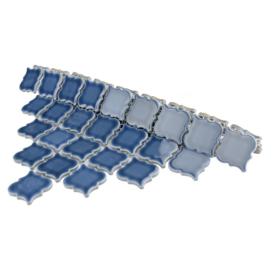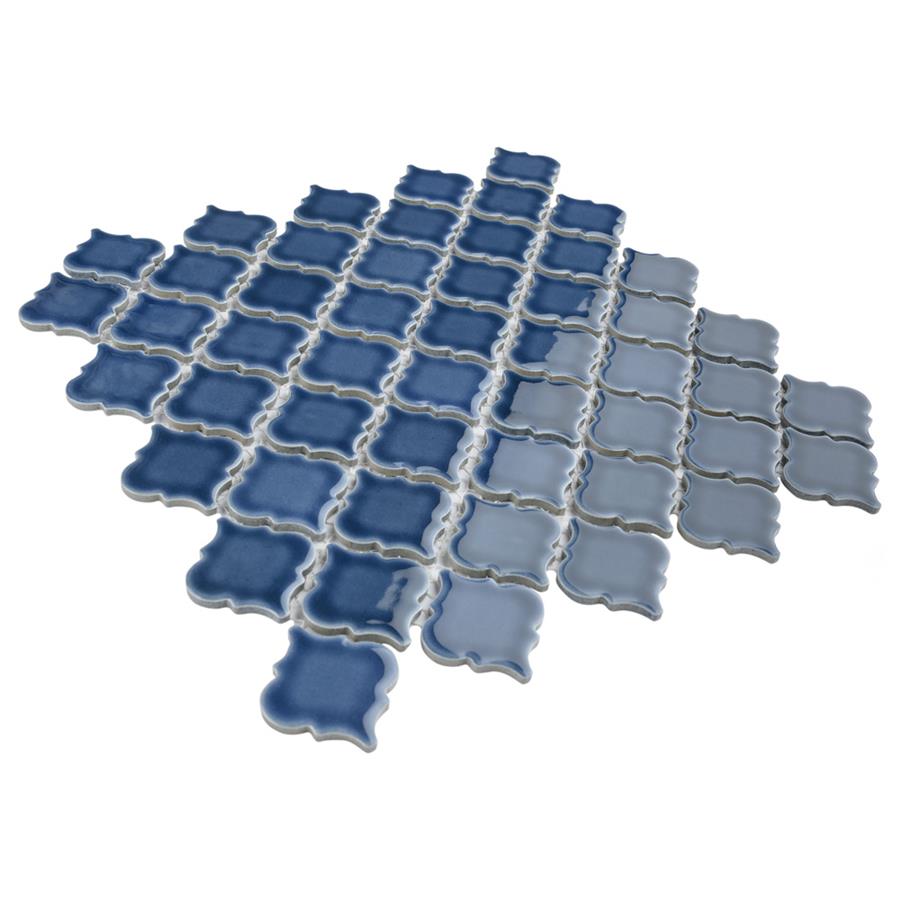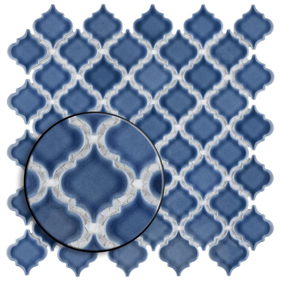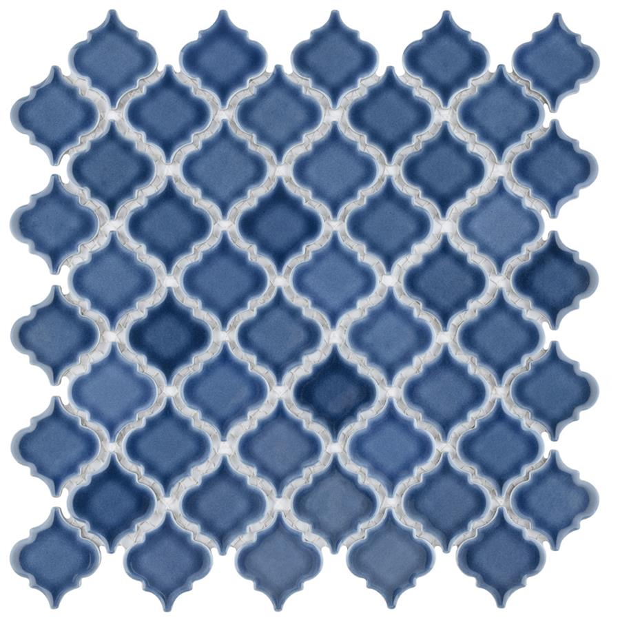 The SomerTile Hudson Tangier Denim Blue 12-3/8 in. x 12-1/2 in. x 5 mm Porcelain Mosaic Tile features our popular lantern design with a modern update. These tiles feature an eye-drop effect reactive glaze, creating a cool French blue in the center, with a gradient to subtle white on the edge. The end effect is a pleasing mixture of cool-toned tints with additional dimension added by the high-gloss finish. Impervious, frost-resistant and easy to clean, this tile is a perfect choice on its own or coordinated with other colors in our Hudson series.