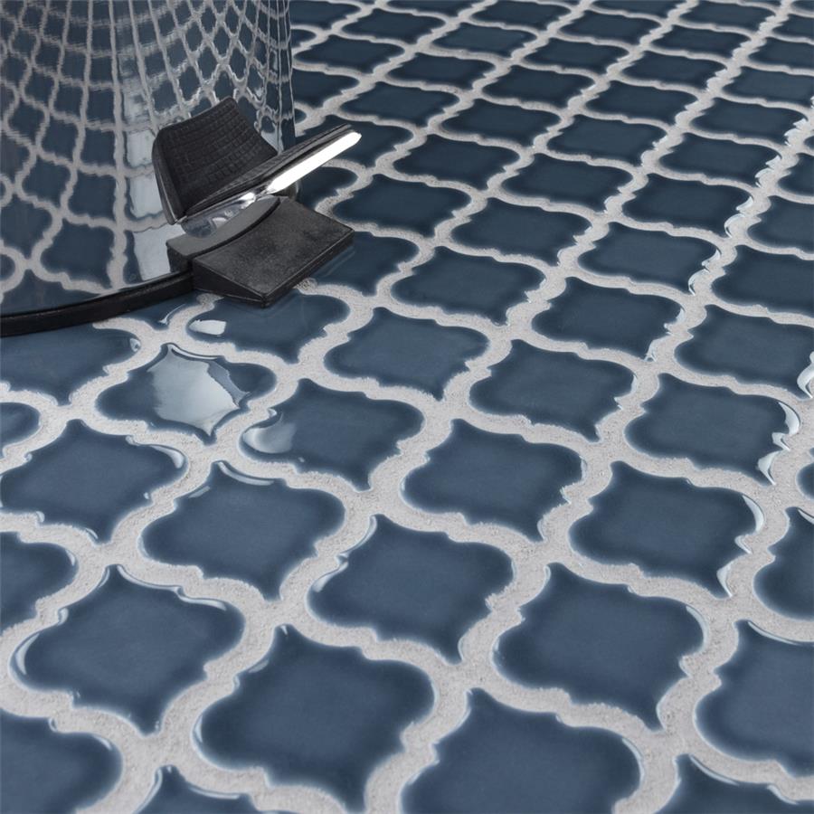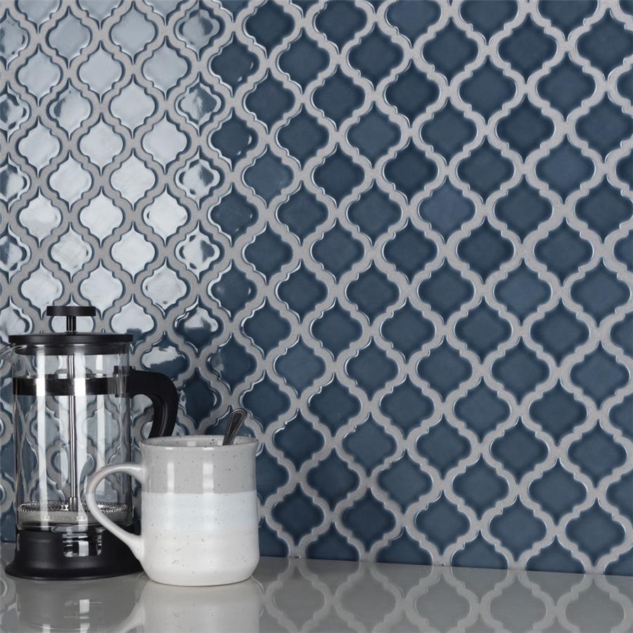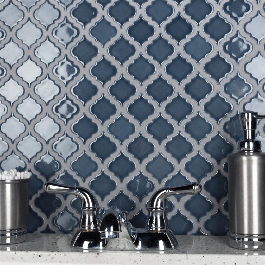 The SomerTile Hudson Tangier Storm Grey 12-3/8 in. x 12-1/2 in. x 5 mm Porcelain Mosaic Tile features our popular lantern design with a modern update. These tiles feature an eye-drop effect reactive glaze, creating an elegant grey-blue color in the center with a gradient to white on the edge. The end effect is a pleasing mixture of cool-toned tints with additional dimension added by the high-gloss finish. Impervious, frost-resistant and easy to clean, this tile is a perfect choice on its own or coordinated with other colors in our Hudson series.Tile is the better choice for your space. This tile is made from natural ingredients, making it a healthy choice as it is free from allergens, VOCs, formaldehyde and PVC.