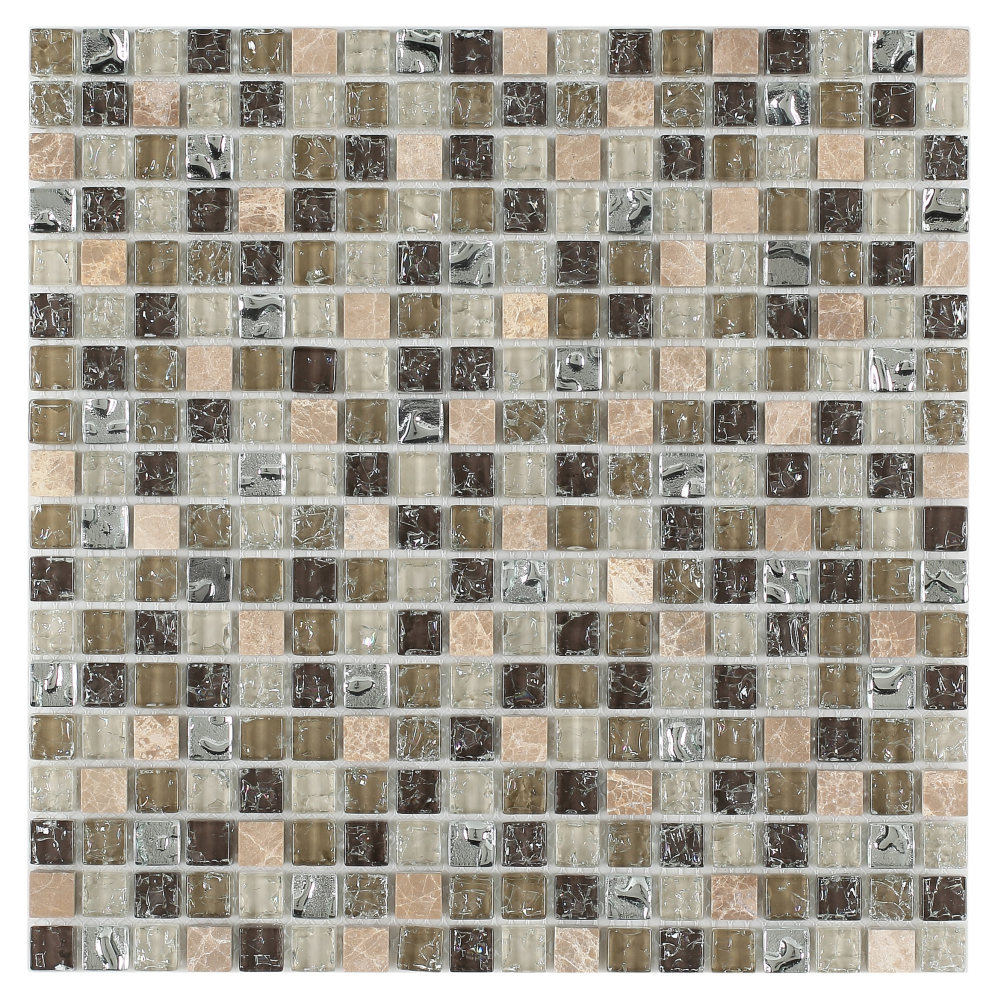 Product Sold By The SheetIcy Series: Icy Grey Mini 9/16″ Crackled Grey Glass Mixed with Light Emperador Stone.Suggested Grout Color: Bostik Dimension Opal H610WARNING: This product can expose you to chemicals including crystalline silica (airborne particles of respirable size) in dust created during fabrication/installation if the product is dry cut/ground or pulverized, which are known to the State of California to cause cancer. For more information, go to https://www.p65warnings.ca.gov/.