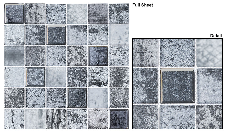 Tile Size: 2″ SquareSheet Size: 12 x 12″Sheet Coverage: 1 SQFRows per Sheet: 6Tiles per Sheet: 36Cut into Borders: AnyGrout Joint: 1/16″ (2mm)Mesh Mounted: YesDue to the variance in installation methods, grout colors, lighting, image variances and computer monitor settings; the images above may not accurately represent the true color of the products after installation.Therefore Glazzio Tiles always recommends that tiles not be purchased from an image of any kind.