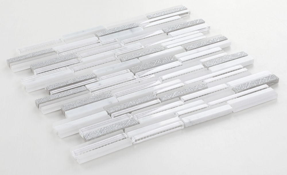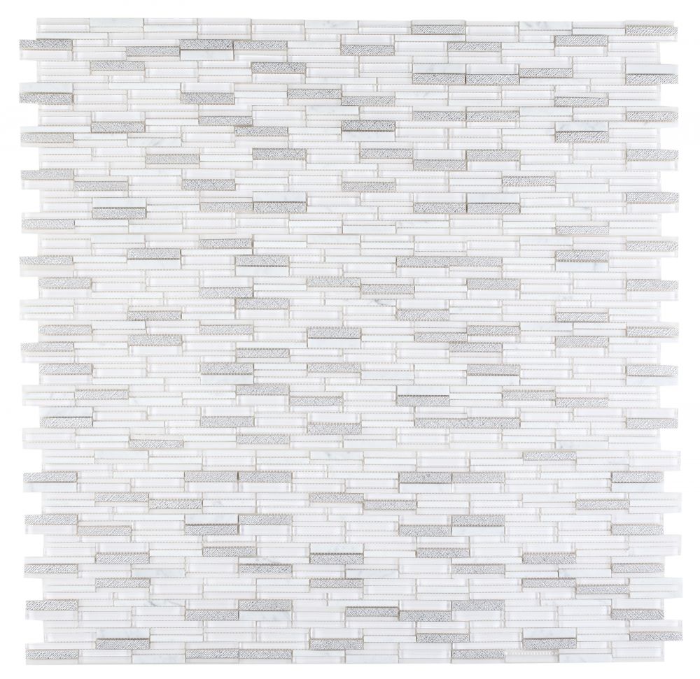 Product Sold By The SheetInga White-White Carrara, White glass & White Resin Deco in Slim Staggered Pattern.Suggested Grout Color: Bostik Dimension Diamond H600WARNING: This product can expose you to chemicals including crystalline silica (airborne particles of respirable size) in dust created during fabrication/installation if the product is dry cut/ground or pulverized, which are known to the State of California to cause cancer. For more information, go to https://www.p65warnings.ca.gov/.