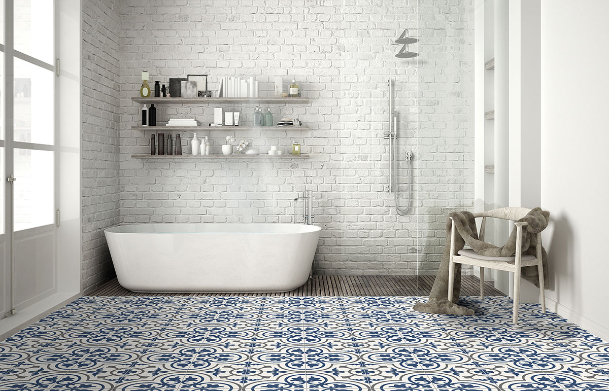 Zanzibar Encaustic Tile from our Kenzzi Collection features a creamy-white background accented by a soft blue and gray in a striking graphic pattern. Each design is handcrafted to recreate the intricate detail of individually, hand painted tiles. This matte-finished 8×8 tile works wonders on backsplashes, floors, showers, countertops, and more. Easy to clean, durable, and requiring no maintenance, it’s perfect for active homes with busy kitchens, baths, entries, mudrooms, and living areas. Give your space a fresh new look with Zanzibar Encaustic Tile.Flooring Info:Residential: YesCommercial Light: Yes