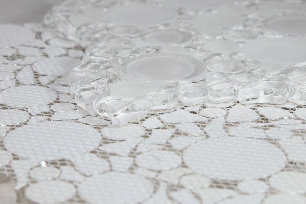 Product Sold By The SheetPool Rated for use in Swimming PoolsLady Bianco – White shining and white frosted round glass pieces with broken white glass in between.For Swimming Pool Installation, we recommend the following:Recommended Thin-Set: MAPEI Adesilex-P10 Premium Glass Tile Mortar mixed with MAPEI Keraply Latex Mortar AdditiveSuggested Grout: MAPEI Ultracolor Plus FA, MAPEI FlexColor CQ or BOSTIK Trucolor RapidcureWARNING: This product can expose you to chemicals including crystalline silica (airborne particles of respirable size) in dust created during fabrication/installation if the product is dry cut/ground or pulverized, which are known to the State of California to cause cancer. For more information, go to https://www.p65warnings.ca.gov/.