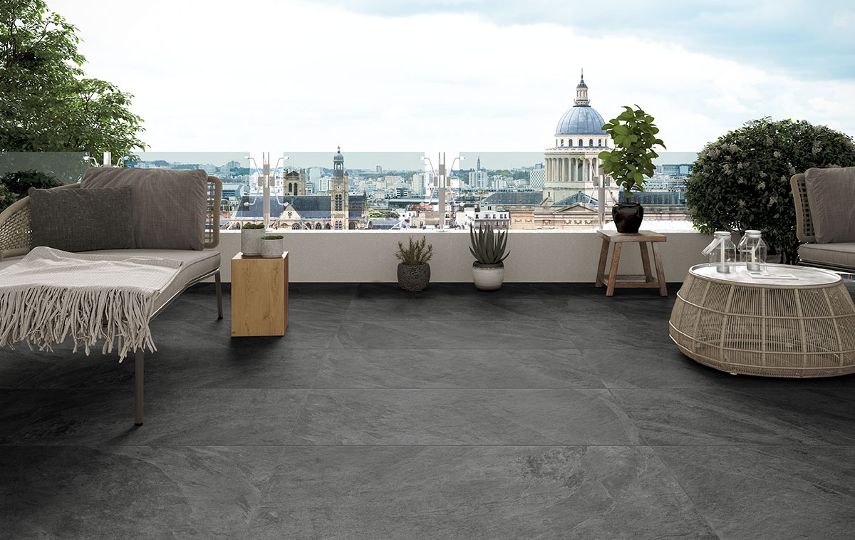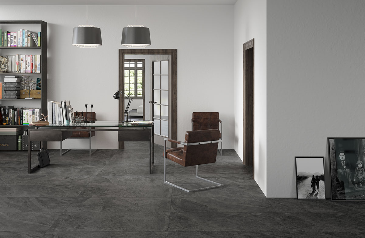Create drama in your space with Midnight Montage porcelain tile. These 24”x24” tiles add a bold yet natural element to a floor, accent wall, kitchen backsplash, or countertop interior. A matte finish and low sheen enhance the textural elements of the tile. Durable and easy to maintain, Midnight Montage Porcelain Tile provides a modern look for any residential or commercial space.Flooring Info:Residential: YesCommercial Light: Yes