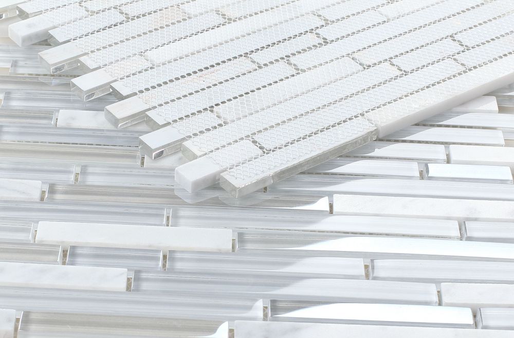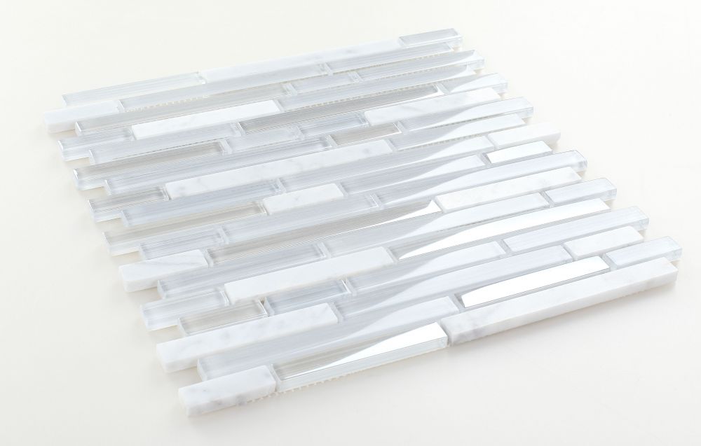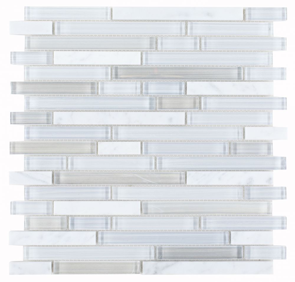 Product Sold By The SheetLinear Carrara Goose 11.75×12- carrara white marble mixed with light grey painted glass in offset linear pattern (previously named Linear Calacatta Goose)Glass tile thin-set required. We recommend: Custom Building Products White Premium Glass Tile Thin-Set Mortar.Suggested Grout Color: Bostik Dimension Diamond H600WARNING: This product can expose you to chemicals including crystalline silica (airborne particles of respirable size) in dust created during fabrication/installation if the product is dry cut/ground or pulverized, which are known to the State of California to cause cancer. For more information, go to https://www.p65warnings.ca.gov/.
