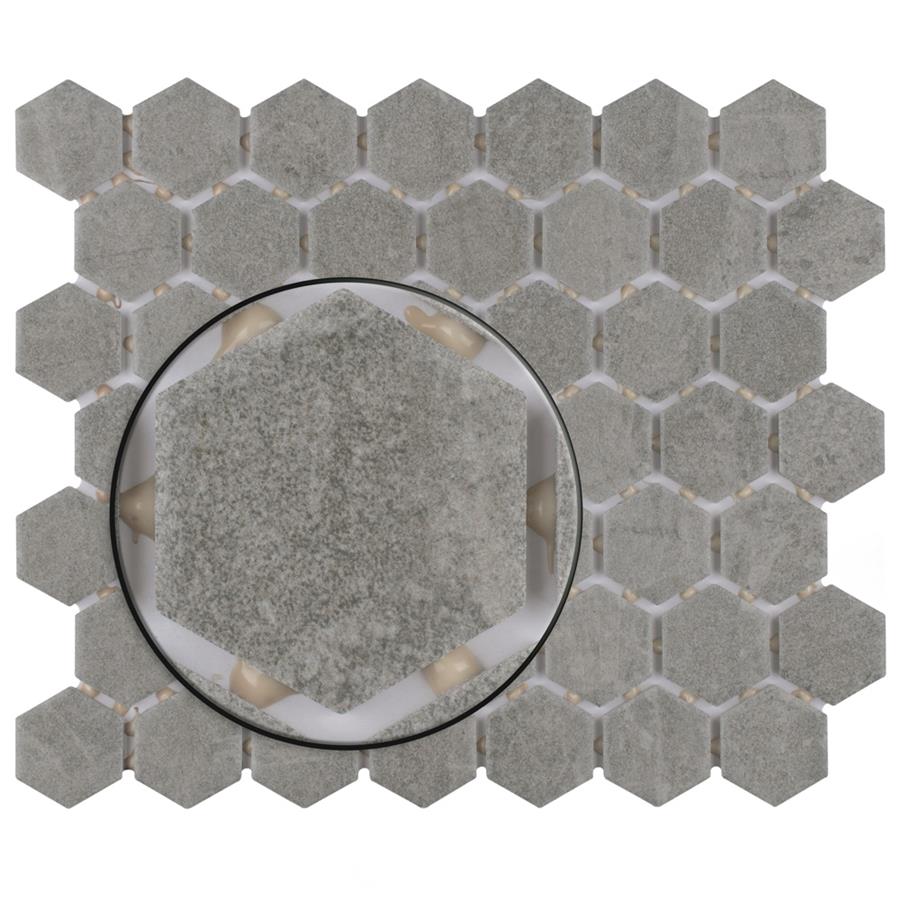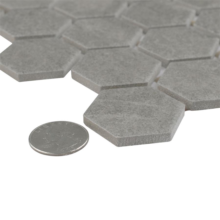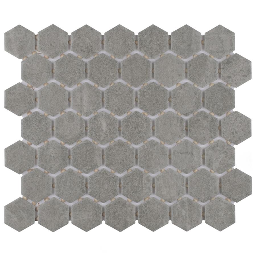 Capturing the rustic appearance of natural stone in a classic ceramic material, our Liverpool Hex Light Grey 11-3/8 in. x 10-1/4 in. Ceramic Floor and Wall Tile brings the irreplaceable beauty of nature into any living space. As an innovative twist on a classic hexagon, this mosaic is comprised of hexagonal chips in varying shades of light grey with a slightly textured surface. This tile replicates the natural appeal of stone with imitation scuffs and spots that suit a variety of looks, including vintage, natural and modern. Its durable and frost resistant features make this an ideal choice for both indoor and outdoor spaces including, kitchen backsplashes, bathrooms and patios.Tile is the better choice for your space. This tile is made from natural ingredients, making it a healthy choice as it is free from allergens, VOCs, formaldehyde and PVC.