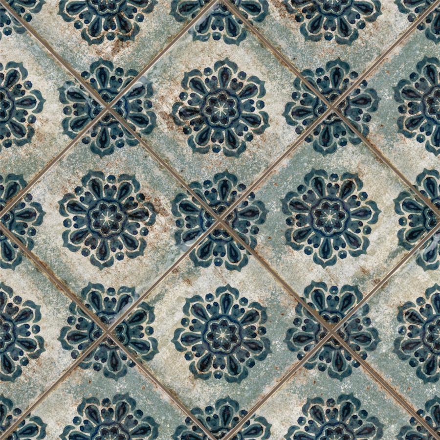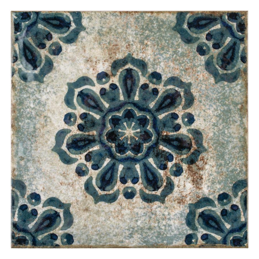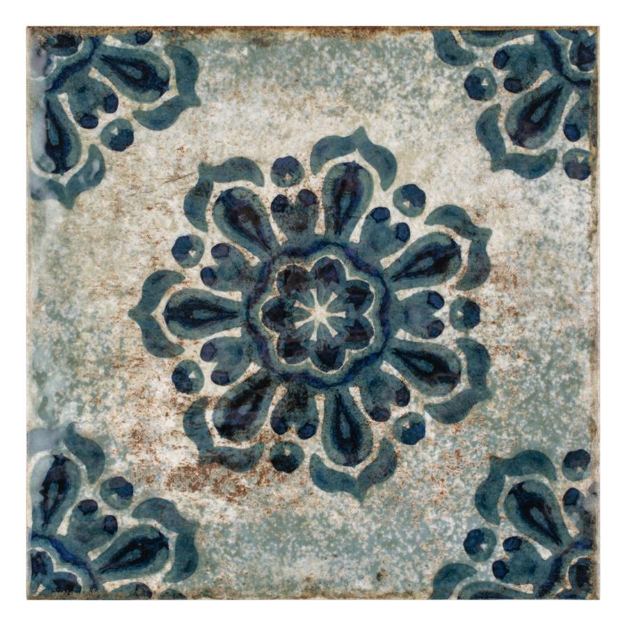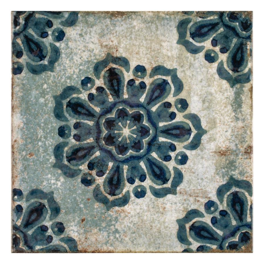 Reflecting the beauty of Spanish culture and design, our Livorno Décor Vechio 7-7/8 in. x 7-7/8 in. Ceramic Wall Tile transmits the splendor of old-world European elegance. Shades of dark blue craft stunning floral designs that blend to create continuity throughout the installation. Imitations of scuffs and spots that are the marks of well-loved, worn, century-old tile bring rustic charm to your interior. There are multiple print variations available that are randomly scattered throughout each case. This wall only tile is ideal for any indoor wall installation. Tile is the better choice for your space. This tile is made from natural ingredients, making it a healthy choice as it is free from allergens, VOCs, formaldehyde and PVC.