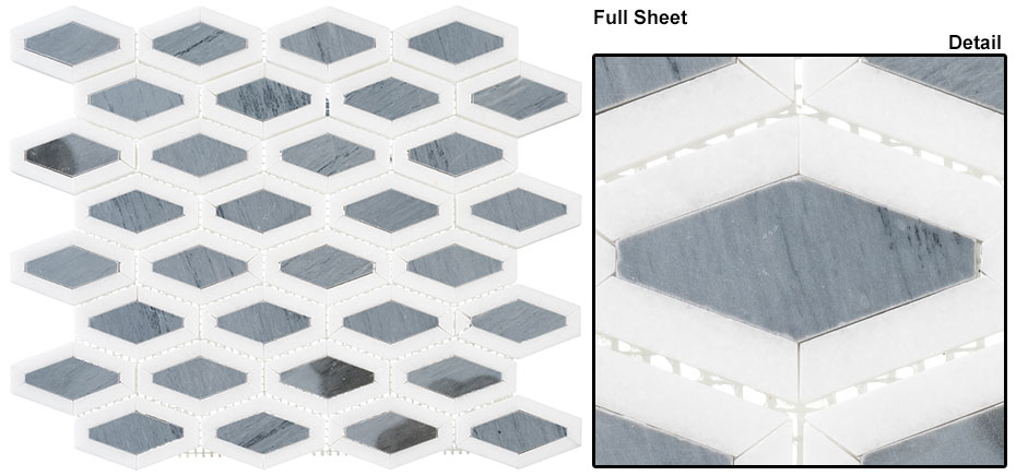 Tile Size: 2” x 3” DiamondSheet Size: 12 7/8” x 11 1/4”Sheet Coverage: 1 SQFRows Per Sheet: 8Tiles Per Sheet: 244Cut into Borders: Any Tile Thickness: 25/64” (10mm)Grout Joint: 1/16” (2mm)Mesh Mounted: YesDisclaimer:In order to avoid stains and discoloration as well as to prevent grout from getting into the pores of the tile; this product should always be sealed prior to grouting.Due to the variance in installation methods, grout colors, lighting, image variances and computer monitor settings; the images above may not accurately represent the true color of the products after installation.Therefore Glazzio Tiles always recommends that tiles not be purchased from an image of any kind.