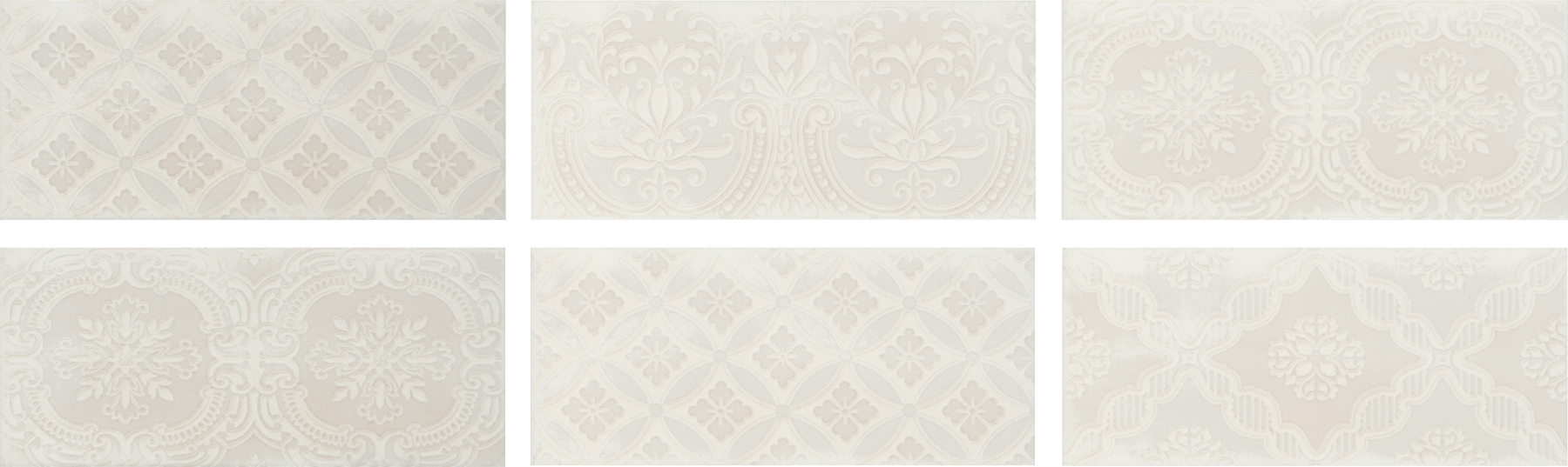 A vintage soul to praise ceramics, lace and wallpaper. Gradient colors and water reliefs join in polished enamels with a handmade appearance uniting creativity and tradition. Maiolica is a versatile collection that combines style, subtleness and charm thanks to its great combination possibilities.