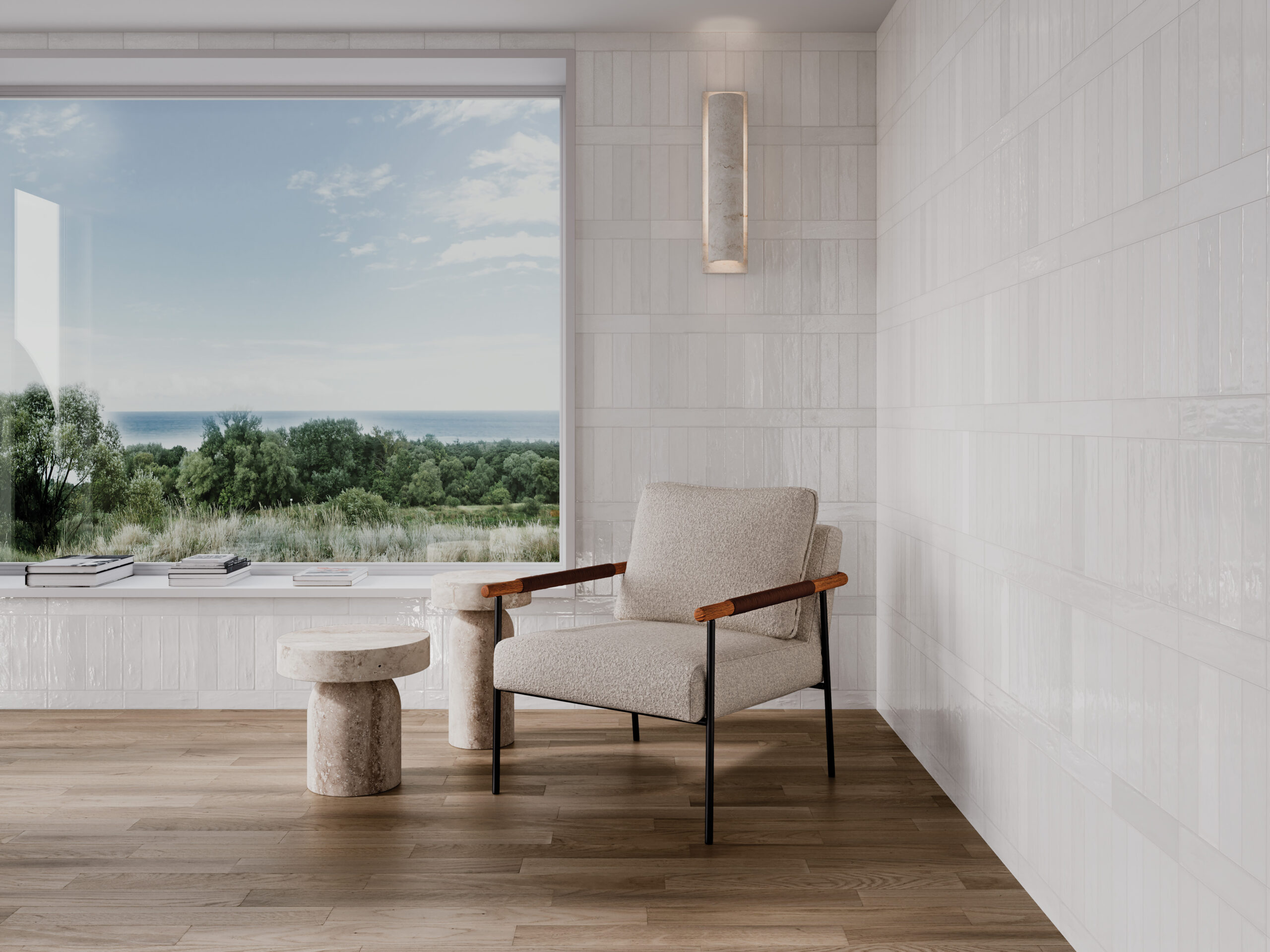 The ocean is in constant motion, ebbing and flowing as its surface gently undulates in all directions. This soothing movement of water is the essence of our Marin Collection of glazed ceramic tile. With its gentle, uneven body and high-gloss finish, light dances across the tile like the sun on the ocean, creating a serene, shimmering look. Available in three sizes and nine placid colors, Marin evokes all the elements of the coast, from sea to sand to salt air.