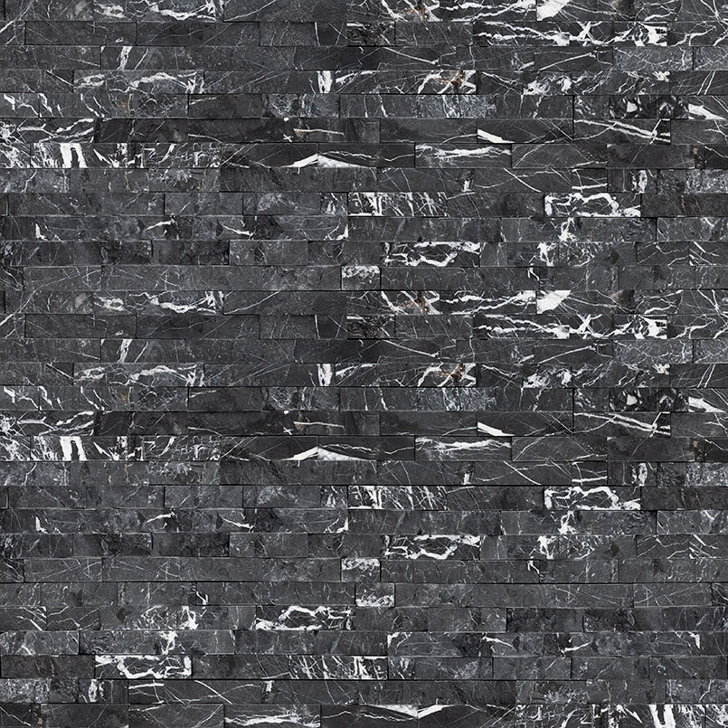 Marquina Nero Stacked Stone adds a distinct and dynamic visual element to a room. Shades of gray and black marble blend beautifully in the background, while white veining enhances the panels’ texture and adds movement. The split face finish is natural and works in interior and exterior applications. From classic to contemporary, this ledger panel works with any architectural style. Use it to create unparalleled backsplashes, accent walls, fireplace surrounds, and more. Matching corners are available to finish off projects.