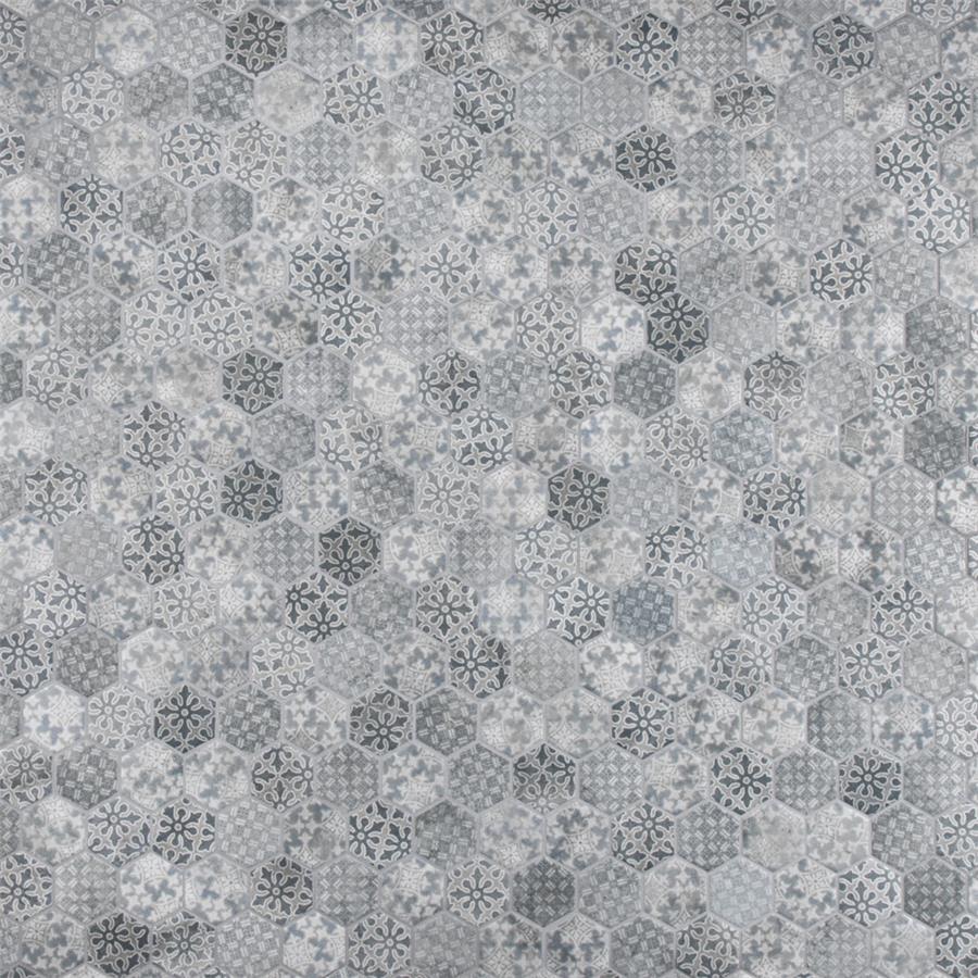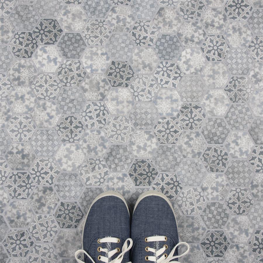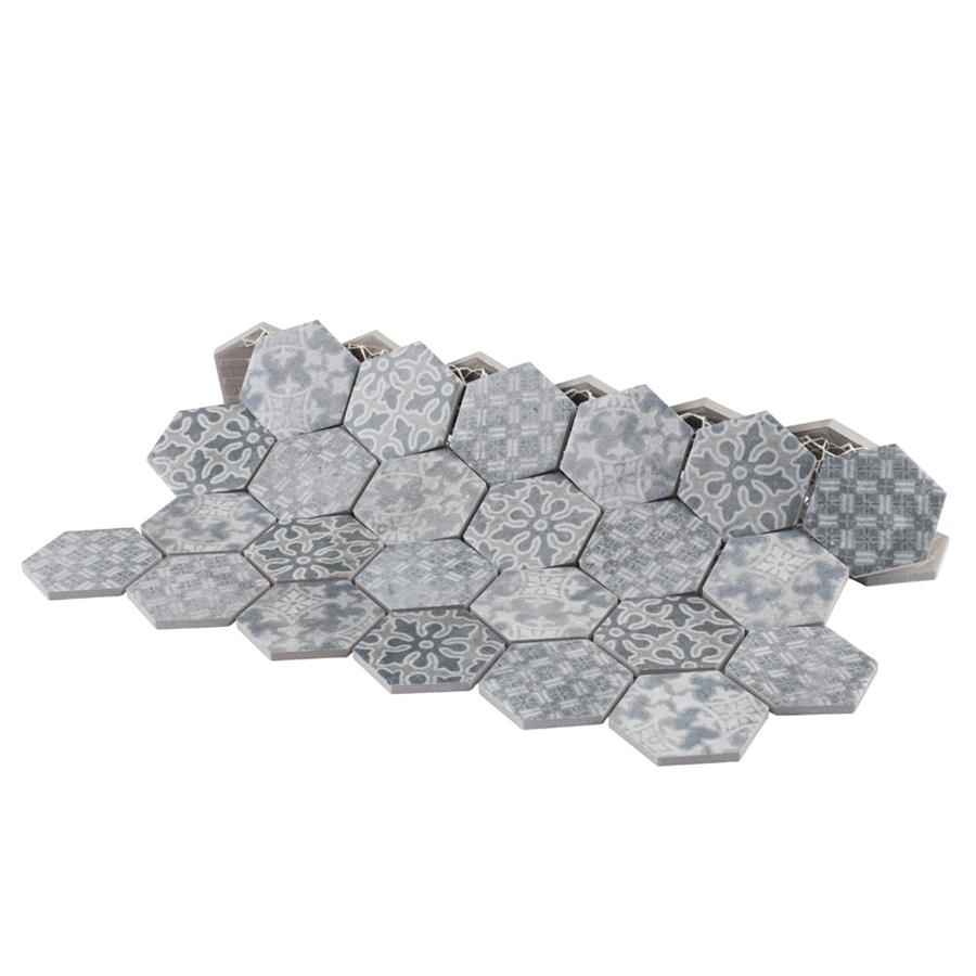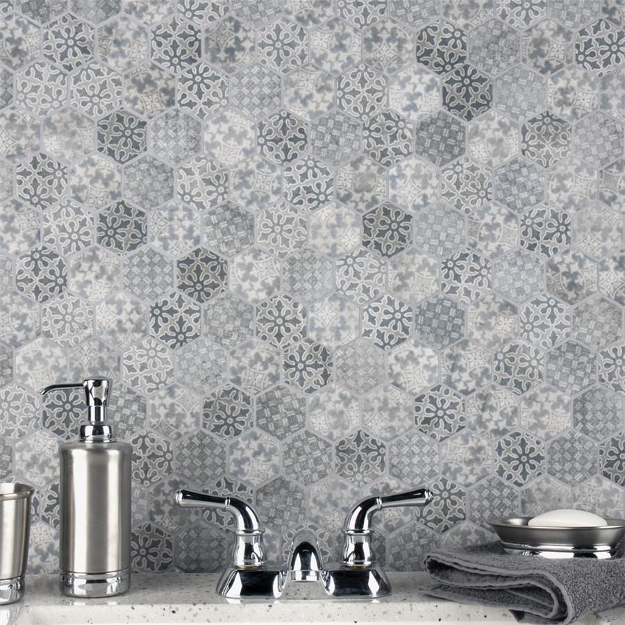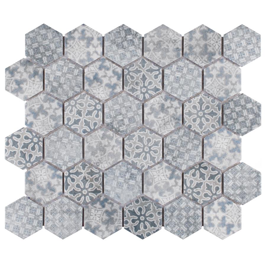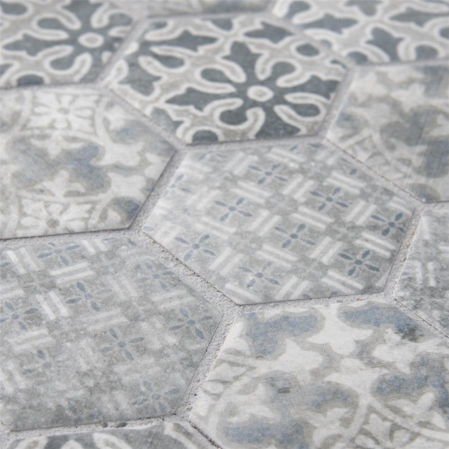 Our Medley Hex Slate Blue 11 in. x 12-5/8 in. Porcelain Floor and Wall Tile ties together the intricate look of individual tiles with the easy installation of a mosaic. This geometric patchwork mosaic features four varying old-world designs in slate grey and blue tones with a slightly textured surface. This multi-patterned tile puts a contemporary twist on the traditional simplistic nature of hexagon tile. Matte hexagons are arranged on an interlocking mesh to create a seamless installation. This tile replicates the natural appeal of stone with imitation scuffs and spots that suit a variety of looks, including vintage, natural and modern. Its impervious, frost resistant and durable features make this an ideal choice for both indoor and outdoor commercial and residential installations including, kitchens, bathrooms, entryways and patios.Tile is the better choice for your space. This tile is made from natural ingredients, making it a healthy choice as it is free from allergens, VOCs, formaldehyde and PVC.