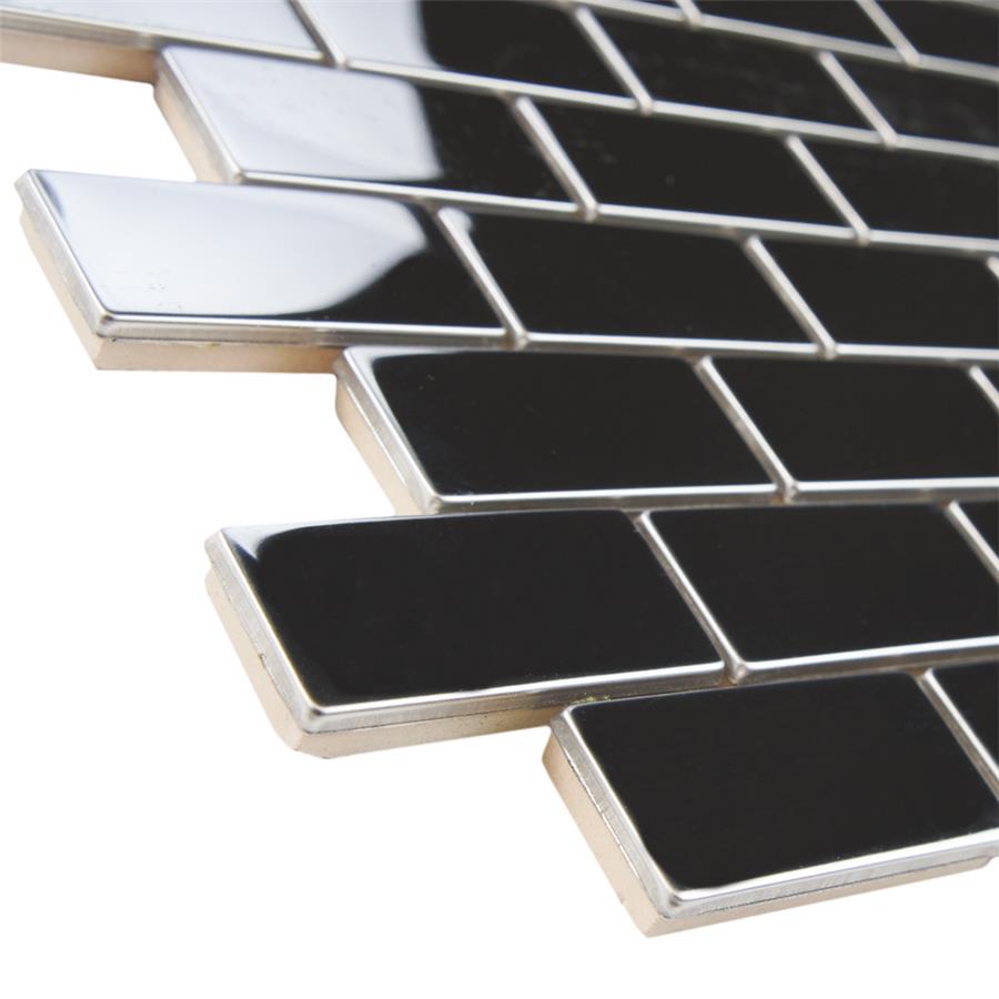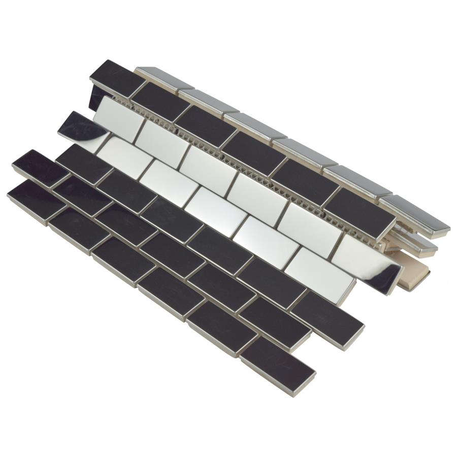 Our Meta Standard Subway Mirror 11-3/4 in. x 11-1/4 in. Stainless Steel Over Ceramic Mosaic features stainless steel chips arranged in a classic subway pattern to give a bit of flair to any installation. With a glossy, mirrored metal finish, this tile offers a polished appearance that is sure to impress. This wall only tile is suitable for indoor residential use only.Tile is the better choice for your space. This tile is made from natural ingredients, making it a healthy choice as it is free from allergens, VOCs, formaldehyde and PVC.