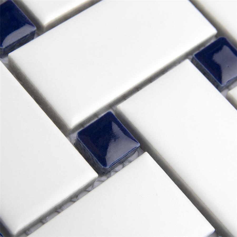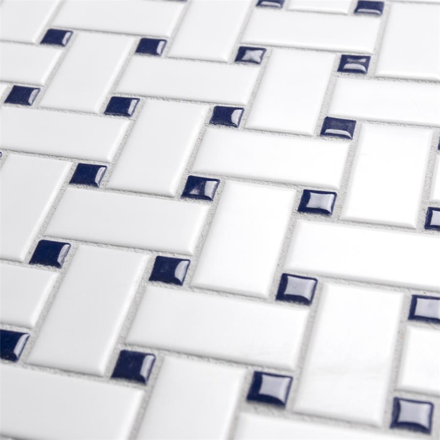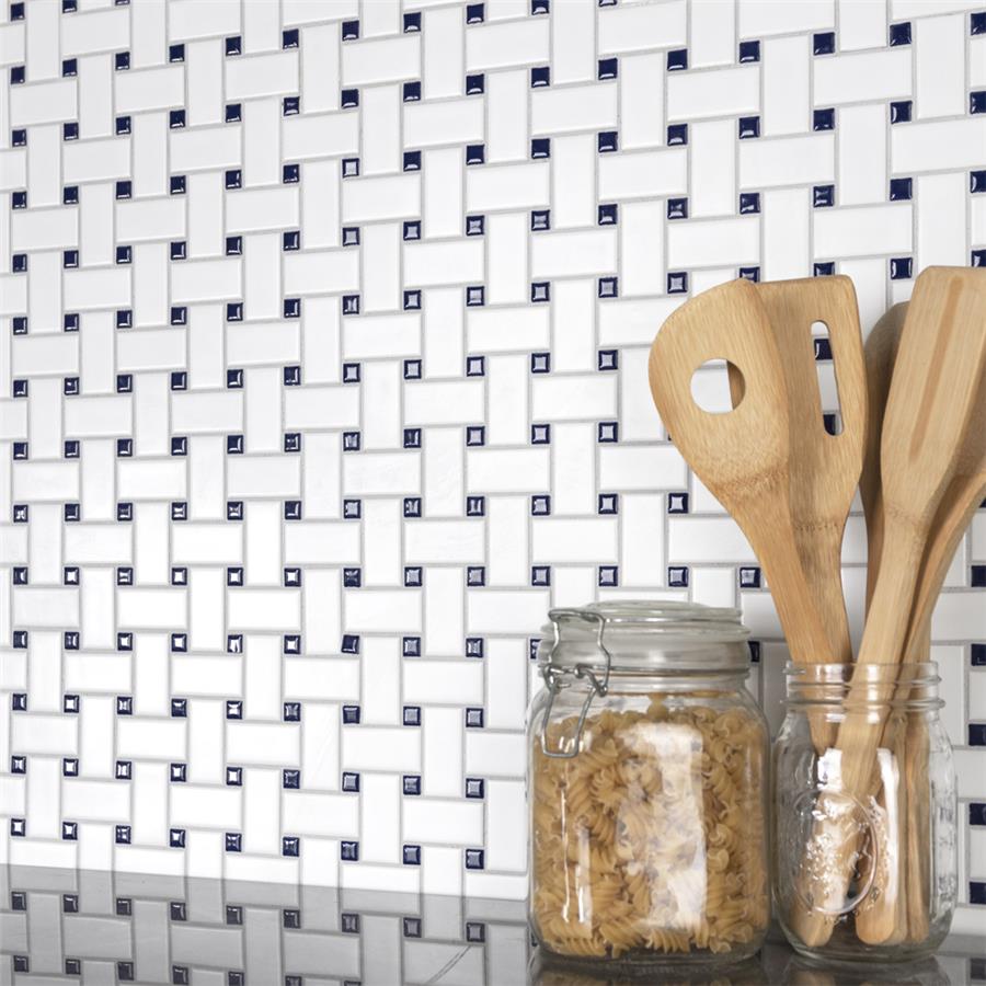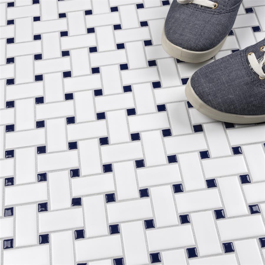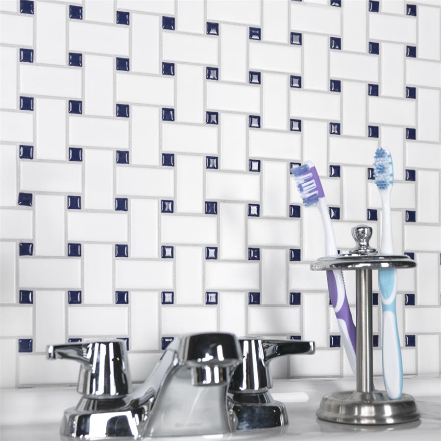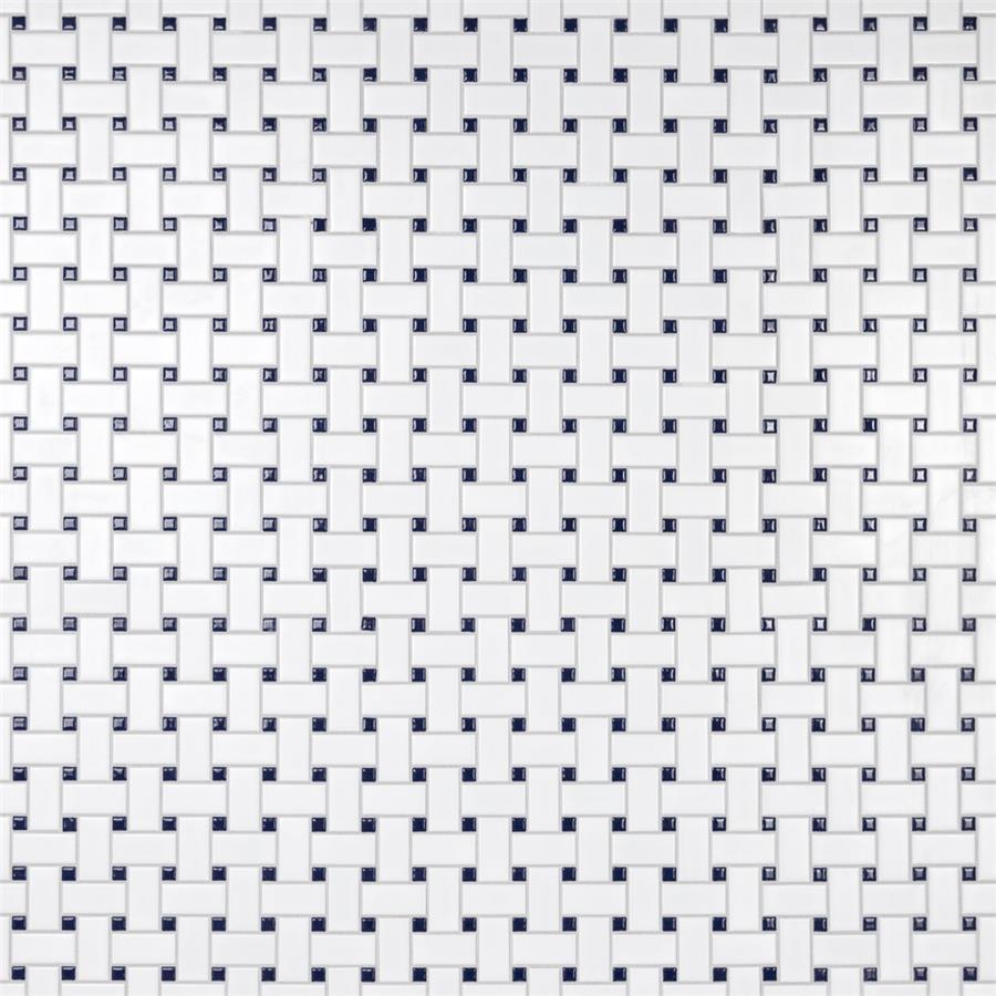 Transform your space into a tribute to retro design with our Metro Basketweave Matte White with Glossy Cobalt Blue Dot 11-3/4 in. x 11-3/4 in. Porcelain Mosaic Floor and Wall Tile. As a modern deviation from the classic mosaic, this tile option is a throwback to traditional retro design with a contemporary feel. Matte white chips are accentuated by small glossy cobalt blue dots that provide a woven illusion. These mosaic chips are precisely arranged on an interlocking mesh to create a seamless installation. This minimalistic geometric porcelain mosaic is unique yet simplistic enough to integrate into any design, ranging from traditional style renovations to modern home projects. Its impervious and glazed features make this an ideal tile for indoor residential use, including backsplashes, bathrooms, showers and kitchens. Tile is the better choice for your space. This tile is made from natural ingredients, making it a healthy choice as it is free from allergens, VOCs, formaldehyde and PVC.