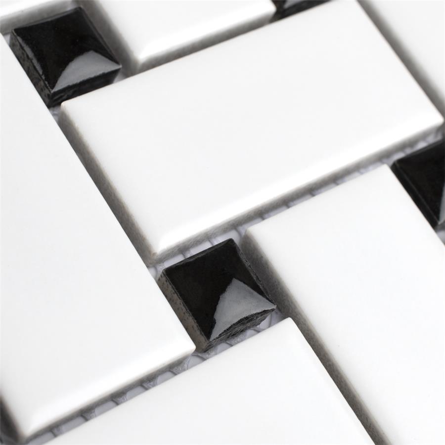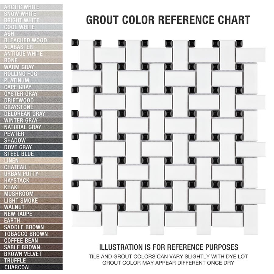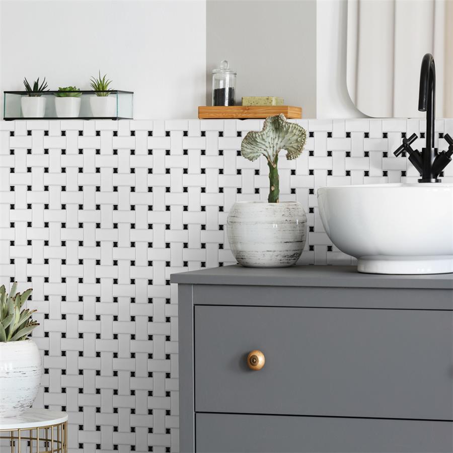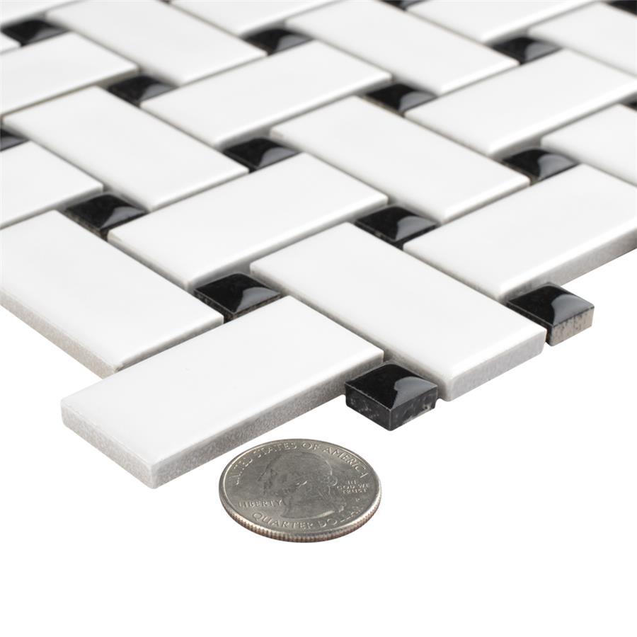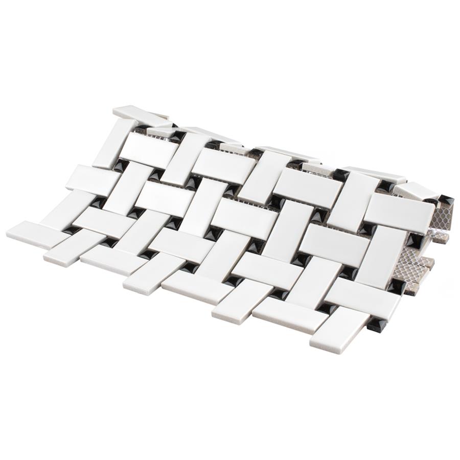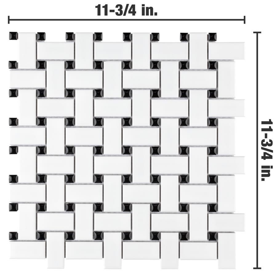 Transform your space into a tribute to retro design with our Metro Basketweave Matte White with Glossy Black Dot 11-3/4 in. x 11-3/4 in. Porcelain Mosaic Floor and Wall Tile. As a modern deviation from the classic mosaic, this tile option is a throwback to traditional retro design with a contemporary feel. Matte white chips are accentuated by small glossy black dots that provide a woven illusion. These mosaic chips are precisely arranged on an interlocking mesh to create a seamless installation. This minimalistic geometric porcelain mosaic is unique yet simplistic enough to integrate into any design, ranging from traditional style renovations to modern home projects. Its impervious and glazed features make this an ideal tile for indoor and outdoor residential use, including backsplashes, bathrooms, showers and kitchens. Tile is the better choice for your space. This tile is made from natural ingredients, making it a healthy choice as it is free from allergens, VOCs, formaldehyde and PVC.