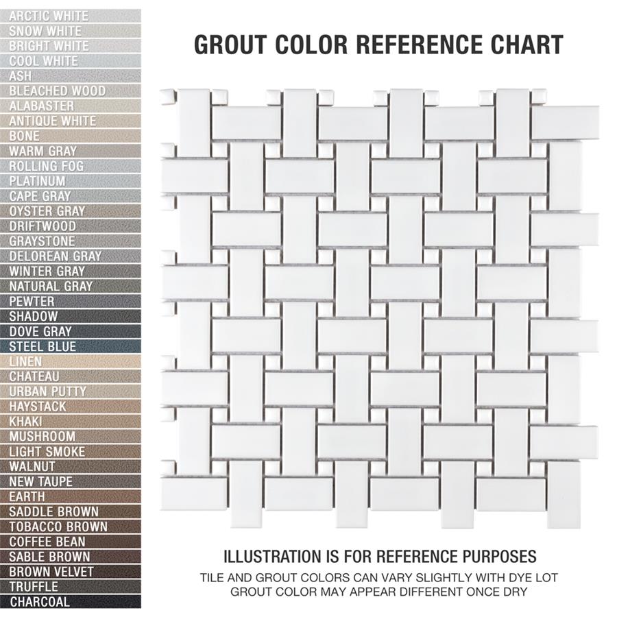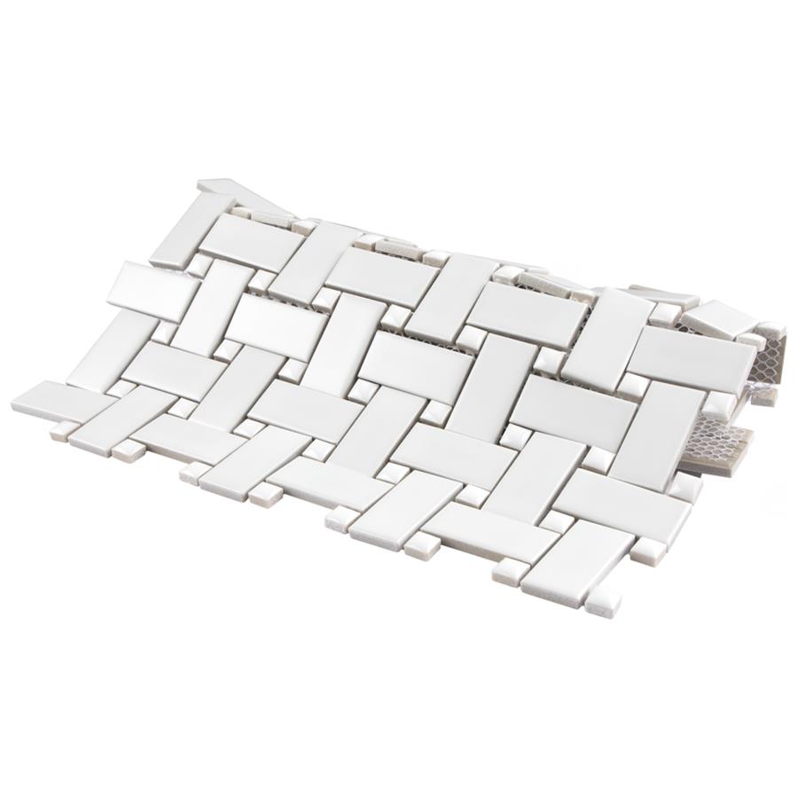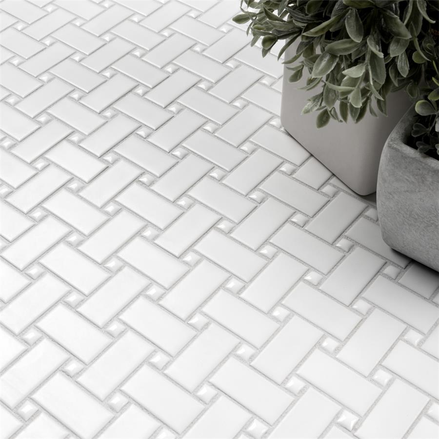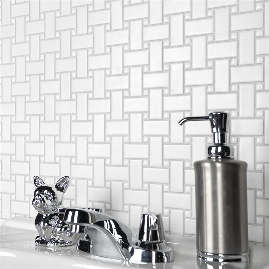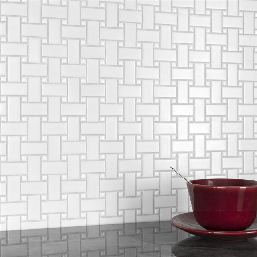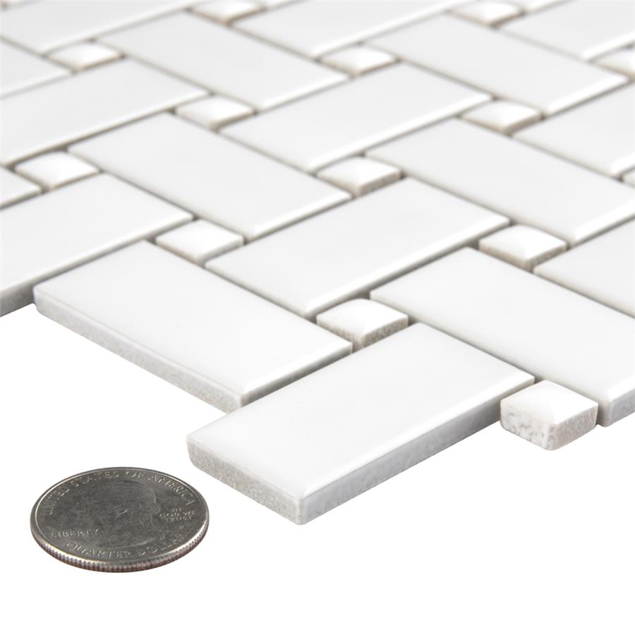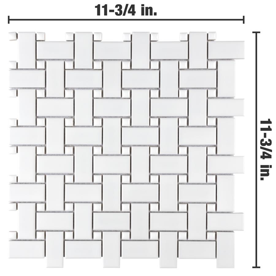 Transform your space into a tribute to retro design with our Metro Basketweave Matte White with Glossy White Dot 11-3/4 in. x 11-3/4 in. Porcelain Mosaic Floor and Wall Tile. As a modern deviation from the classic mosaic, this tile option is a throwback to traditional retro design with a contemporary feel. Matte white chips are accentuated by small glossy white dots that provide a woven illusion. These mosaic chips are precisely arranged on an interlocking mesh to create a seamless installation. This minimalistic geometric porcelain mosaic is unique yet simplistic enough to integrate into any design, ranging from traditional style renovations to modern home projects. Its impervious and glazed features make this an ideal tile for indoor residential use, including backsplashes, bathrooms, showers and kitchens. Tile is the better choice for your space. This tile is made from natural ingredients, making it a healthy choice as it is free from allergens, VOCs, formaldehyde and PVC.