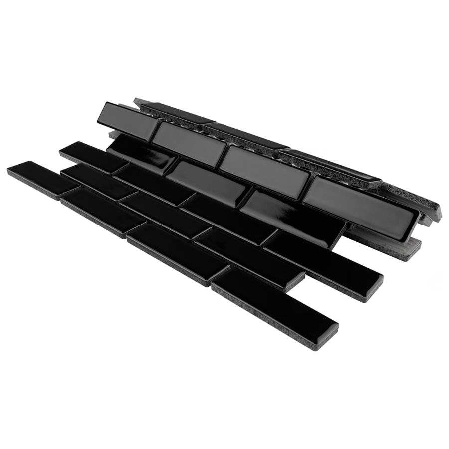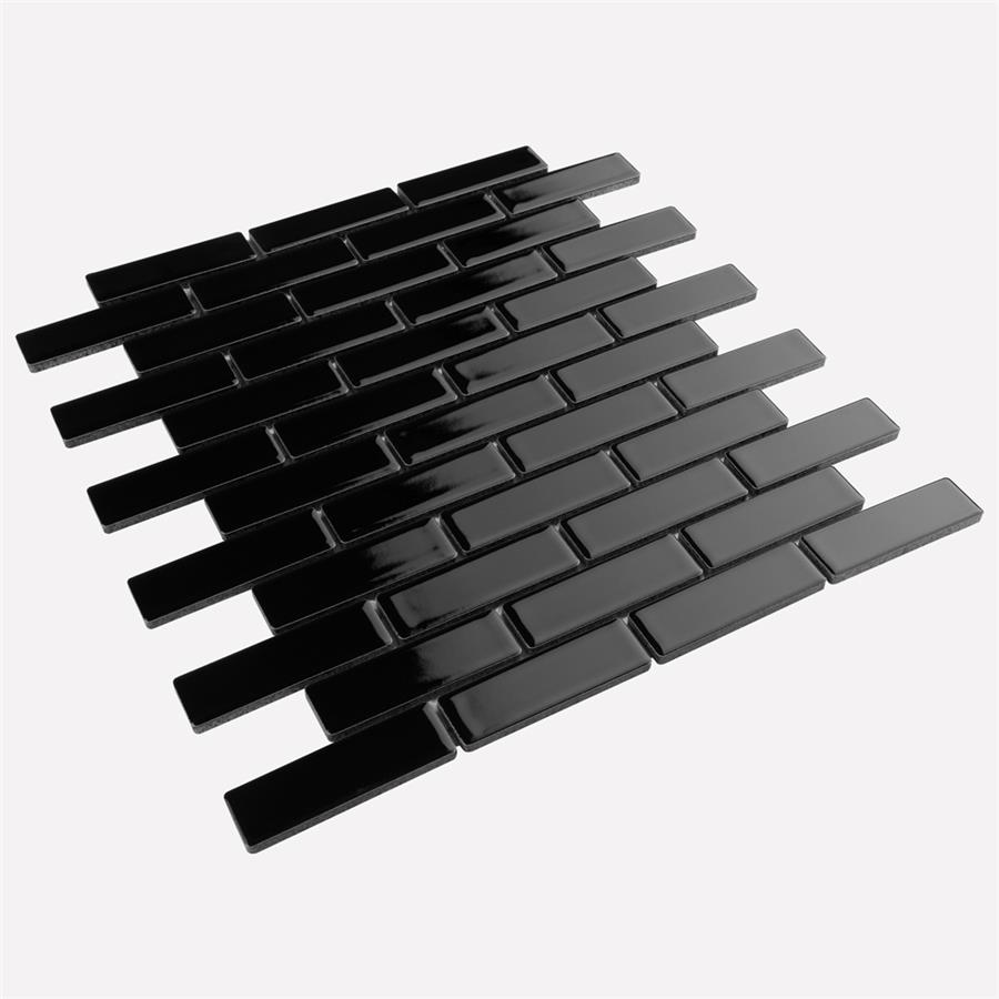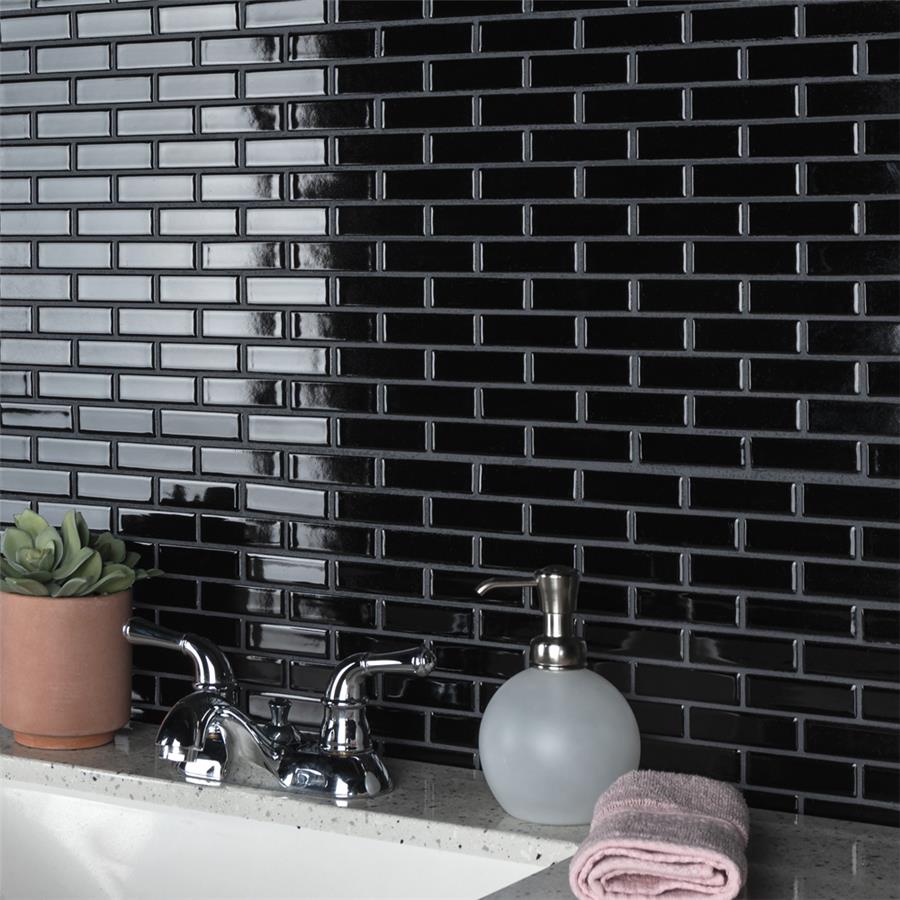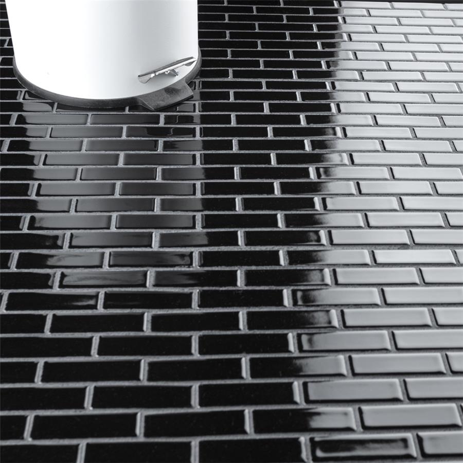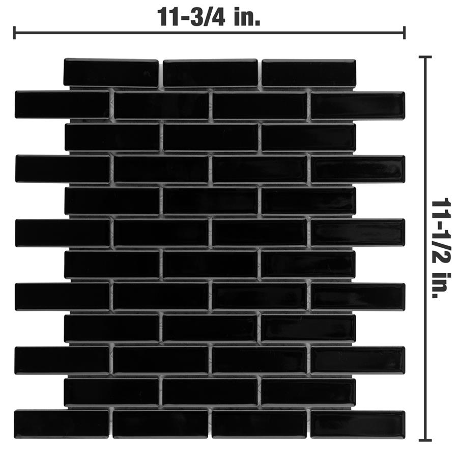 Our Metro Brick Subway Glossy Black 11-1/2 in. x 11-3/4 in. Porcelain Floor and Wall Mosaic Tile instantly elevates spaces through a refreshing dose of timeless design. As an innovative twist on the classic mosaic, this floor and wall product is comprised of subway shaped chips in black with a smooth surface. Glossy rectangles are arranged on an interlocking mesh to create a seamless installation. This minimalistic geometric porcelain mosaic is unique yet simplistic enough to integrate into any design, ranging from traditional style renovations to modern home projects. Its impervious and frost-resistant features make this an ideal tile for both indoor and outdoor residential use, including backsplashes, bathrooms, showers, kitchens and fireplace facades. This tile is a perfect choice on its own or paired with other products in the Metro Brick Subway Collection. Tile is the better choice for your space. This tile is made from natural ingredients, making it a healthy choice as it is free from allergens, VOCs, formaldehyde and PVC.