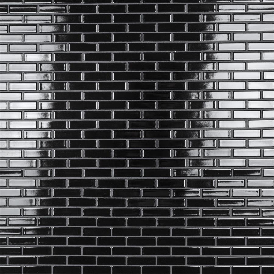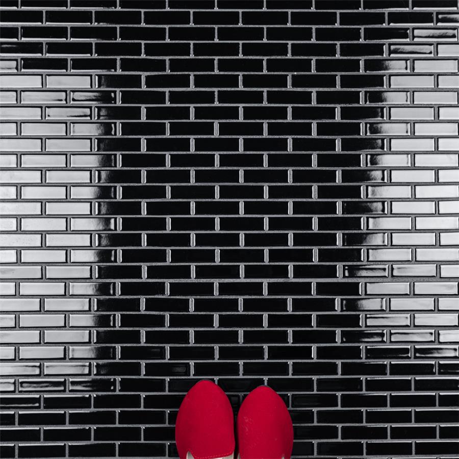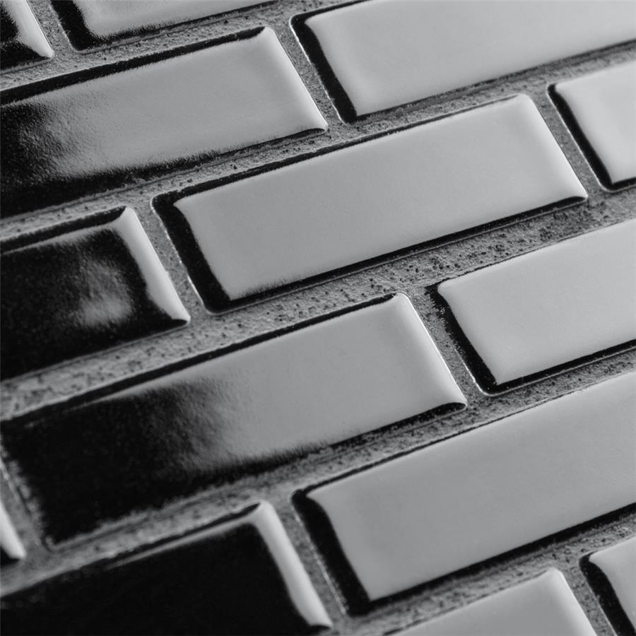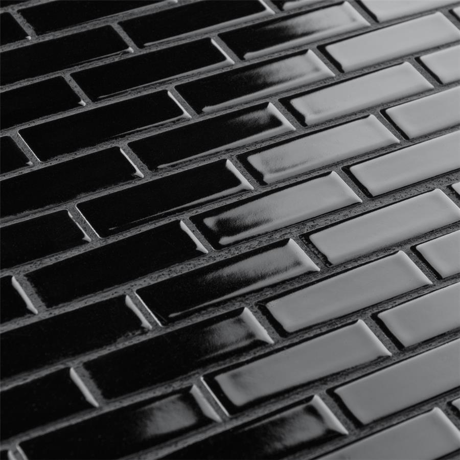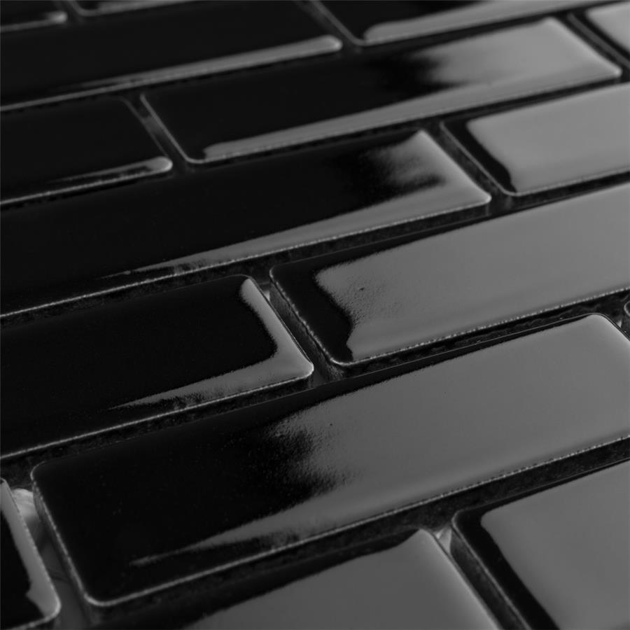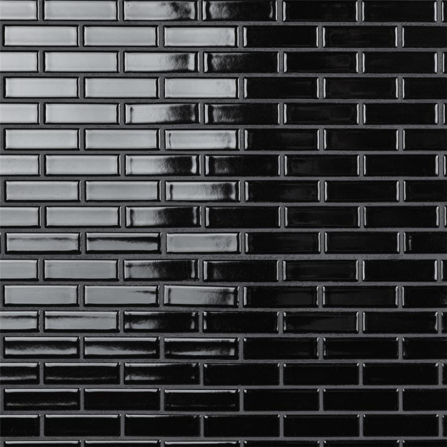 Our Metro Brick Subway Glossy Black 11-1/2 in. x 11-3/4 in. Porcelain Floor and Wall Mosaic Tile instantly elevates spaces through a refreshing dose of timeless design. As an innovative twist on the classic mosaic, this floor and wall product is comprised of subway shaped chips in black with a smooth surface. Glossy rectangles are arranged on an interlocking mesh to create a seamless installation. This minimalistic geometric porcelain mosaic is unique yet simplistic enough to integrate into any design, ranging from traditional style renovations to modern home projects. Its impervious and frost-resistant features make this an ideal tile for both indoor and outdoor residential use, including backsplashes, bathrooms, showers, kitchens and fireplace facades. This tile is a perfect choice on its own or paired with other products in the Metro Brick Subway Collection. Tile is the better choice for your space. This tile is made from natural ingredients, making it a healthy choice as it is free from allergens, VOCs, formaldehyde and PVC.