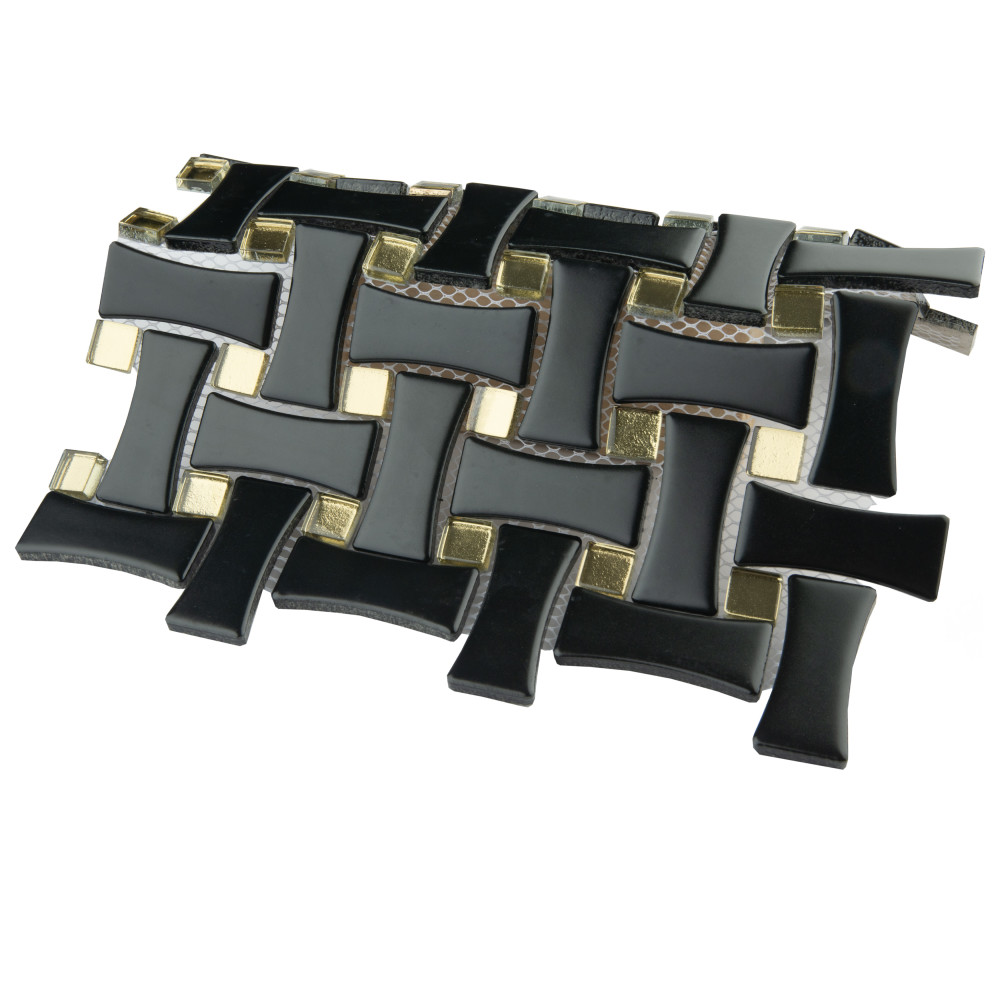 Offering a mosaic look, our Metro Dog Bone Basketweave Matte Black with Glass Gold Dot Porcelain Wall Tile features a smooth, mixed finish, making it a great choice for your space. With its impervious, frost-resistant features, this black rectangle mosaic is an ideal selection for both indoor and outdoor commercial and residential installations, including kitchens, bathrooms, backsplashes, showers, hallways and fireplace facades. This tile is a perfect choice on its own or paired with other products in the Metro Dog Bone Basketweave Collection. Tile is the better choice for your space!