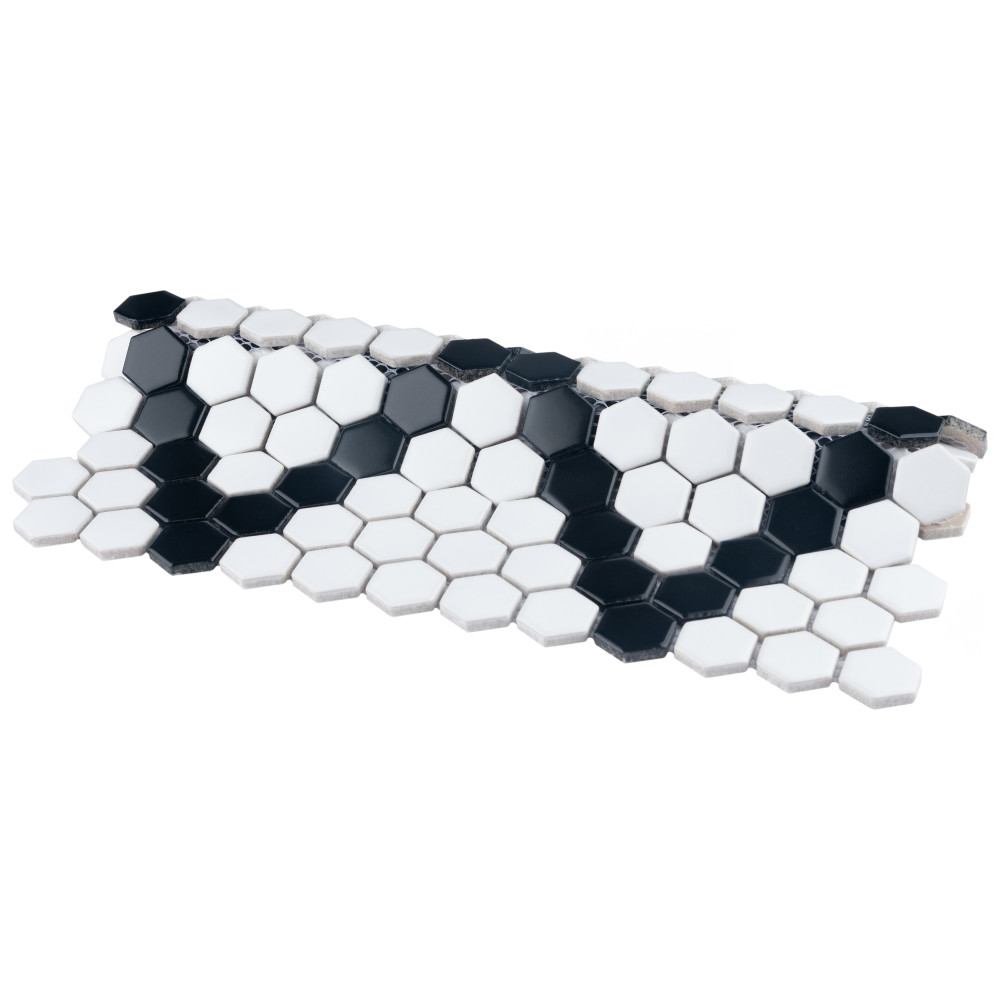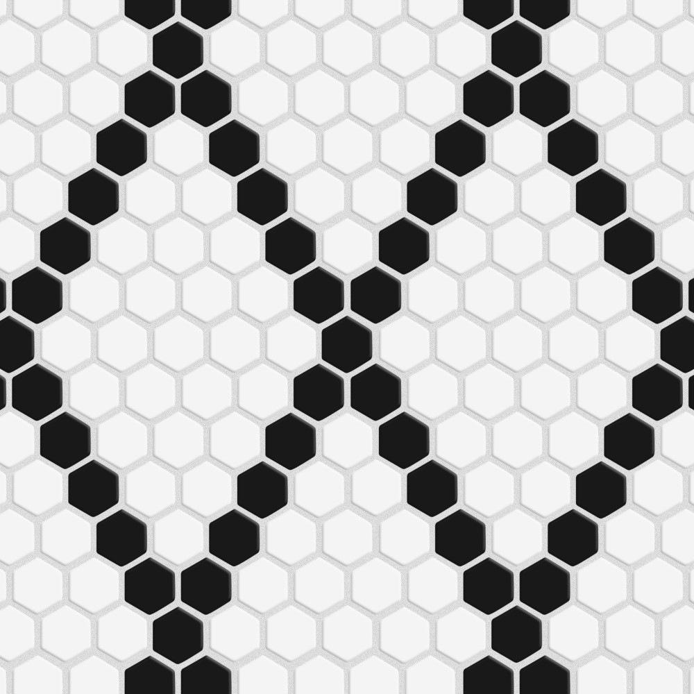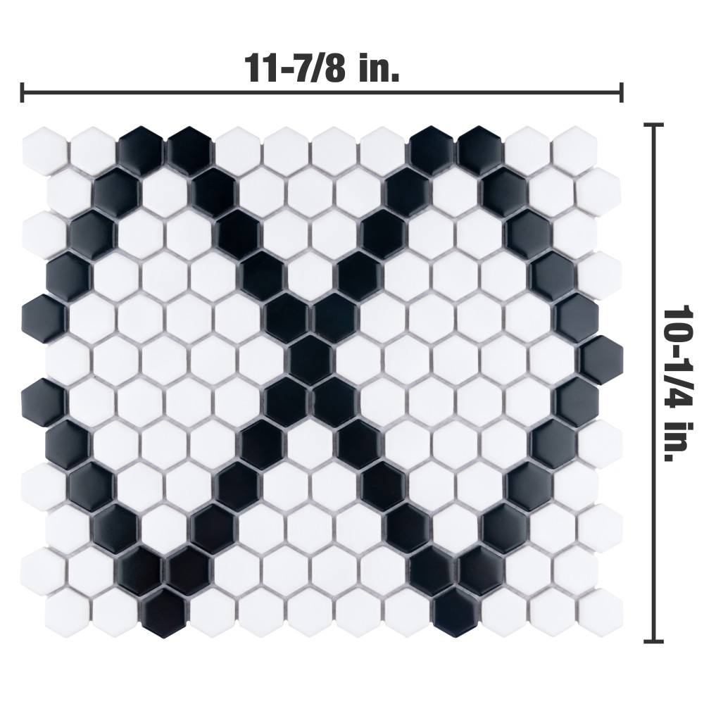 Metro Hex M Wht w/ M Blk Diamond 10-1/4 in. x 11-7/8 in. Porcelain Mosaic Tile
