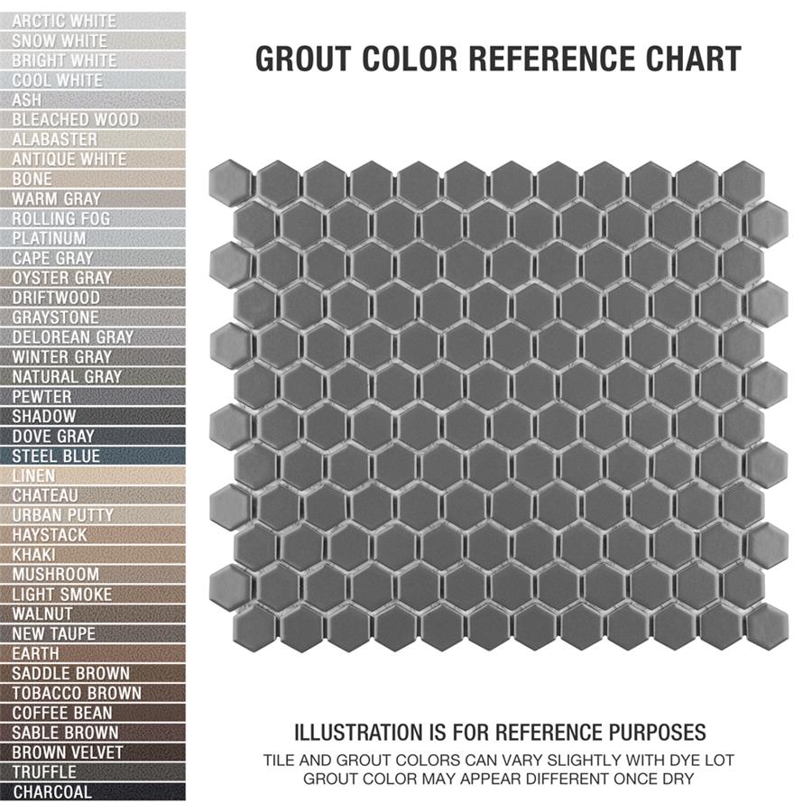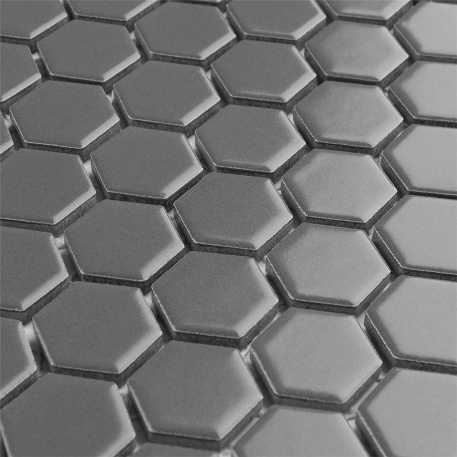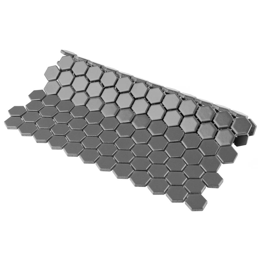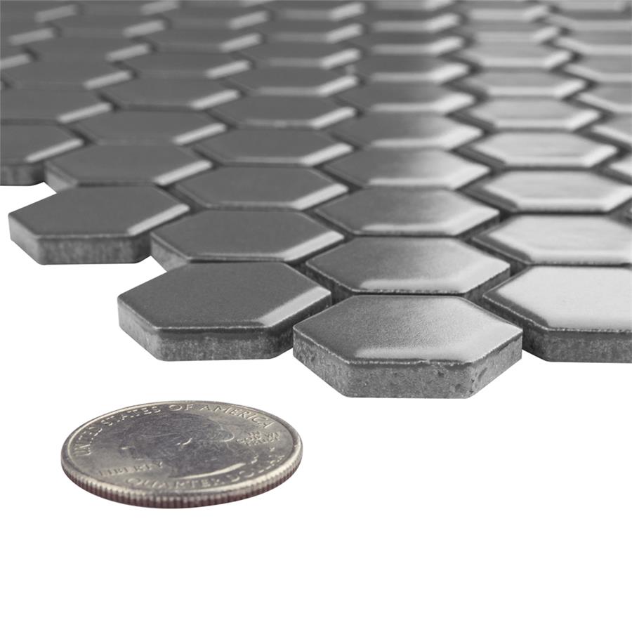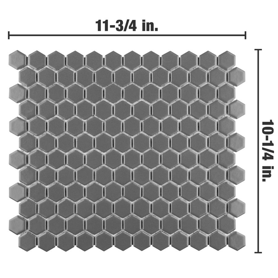 Transform your space into a tribute to retro design with our Metro Hex Matte Grey 10-1/4 in. x 11-3/4 in. Porcelain Floor and Wall Mosaic Tile. As a modern deviation from the classic mosaic, this fresh option is a throwback to traditional retro design with a contemporary feel. Matte grey hexagons are arranged on an interlocking mesh to create a seamless installation. This minimalistic geometric porcelain mosaic is unique yet simplistic enough to integrate into any design, ranging from traditional style renovations to modern home projects. Its ADA-compliant, impervious and frost resistant features make this an ideal tile for indoor and outdoor use, including backsplashes, bathrooms, showers, kitchens and fireplace facades.Tile is the better choice for your space. This tile is made from natural ingredients, making it a healthy choice as it is free from allergens, VOCs, formaldehyde and PVC.