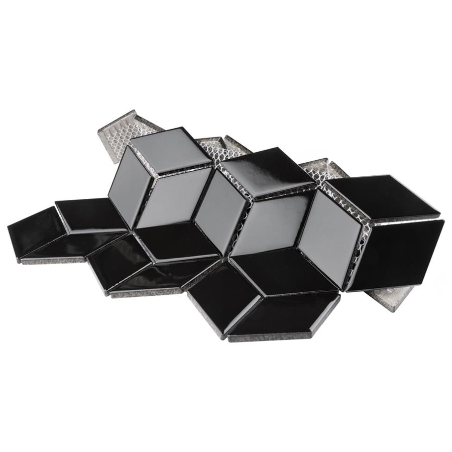 Metro Rhombus Glossy Black 10-1/2″x12-1/8″ Porcelain Mos