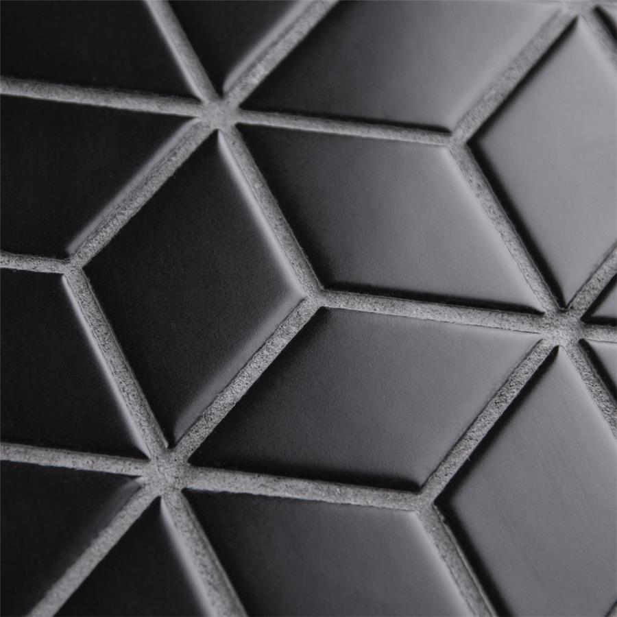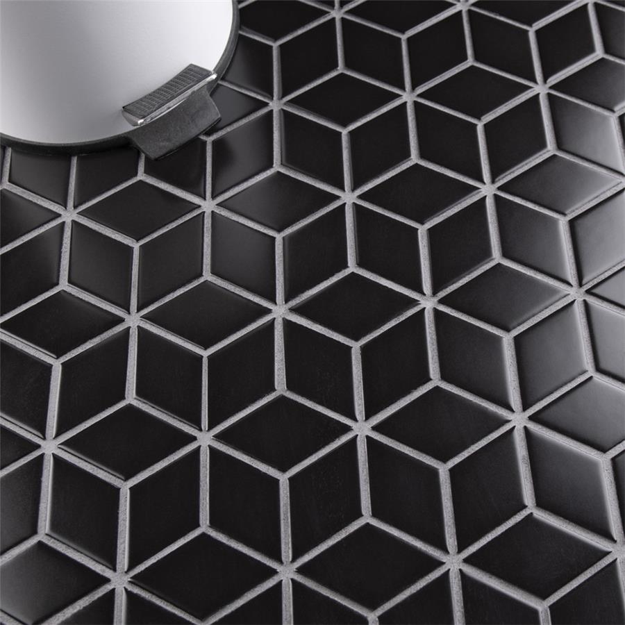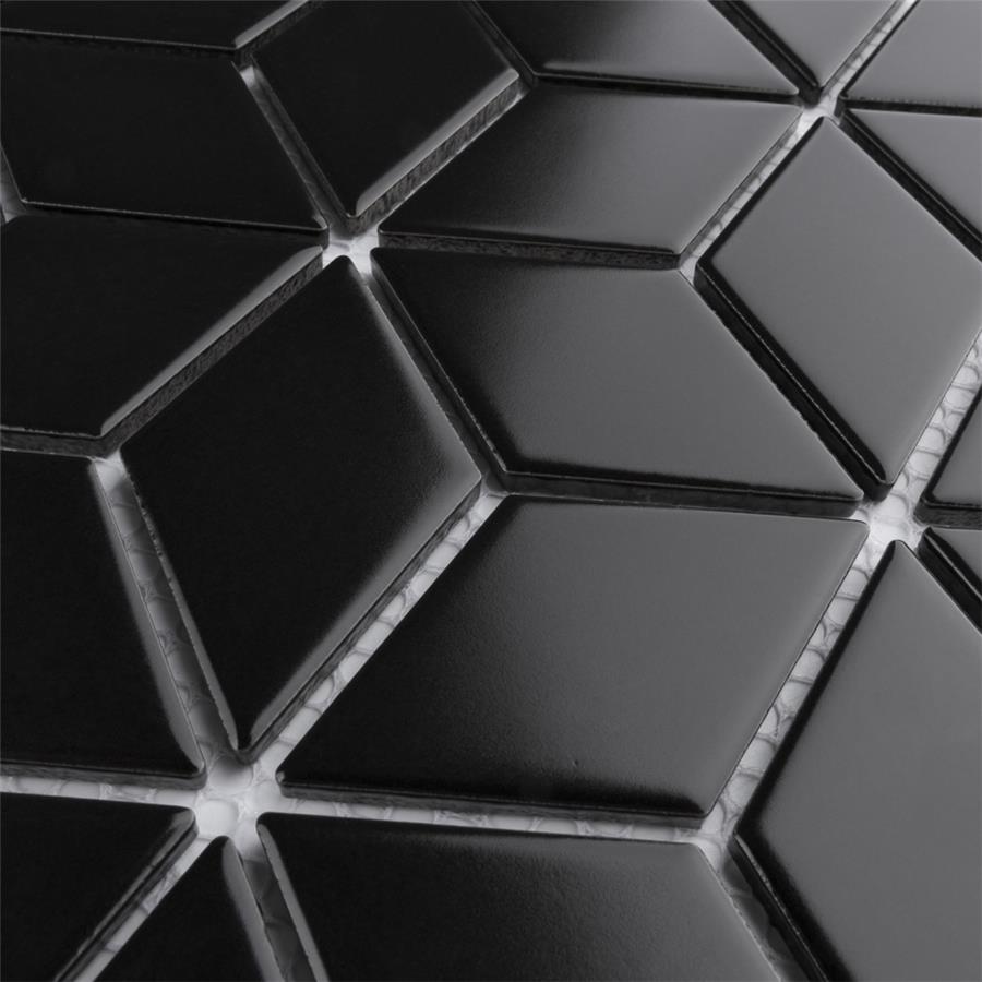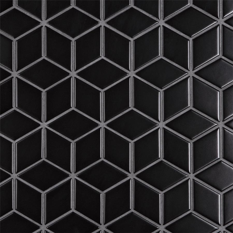 Our Metro Rhombus Matte Black 10-1/2 in. x 12-1/8 in. Porcelain Mosaic Floor and Wall Tile instantly elevates spaces through a refreshing dose of geometric design. As an innovative twist on the classic mosaic, this product is comprised of diamond shaped chips in black with a smooth surface. Matte diamonds are arranged on an interlocking mesh to create a seamless installation. This minimalistic geometric porcelain mosaic is unique yet simplistic enough to integrate into any design, ranging from traditional style renovations to modern home projects. Its impervious and frost-resistant features make this an ideal tile for both indoor and outdoor residential use, including backsplashes, bathrooms, showers and kitchens. This tile is a perfect choice on its own or paired with other products in the Metro Rhombus Collection.Tile is the better choice for your space. This tile is made from natural ingredients, making it a healthy choice as it is free from allergens, VOCs, formaldehyde and PVC.