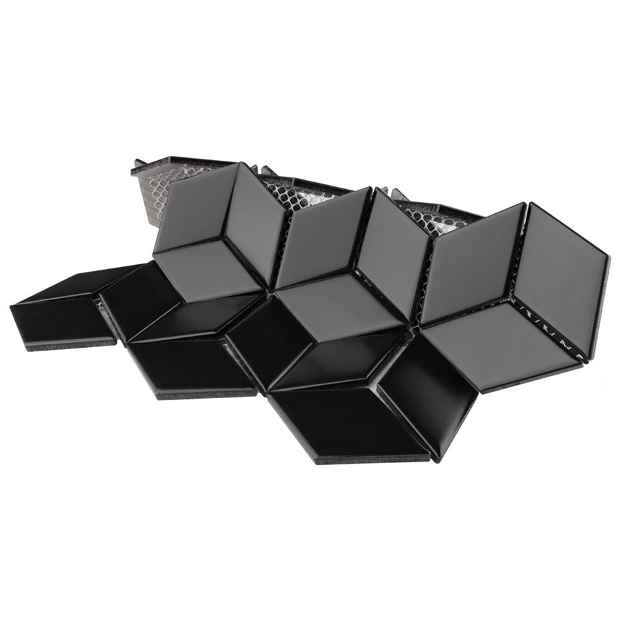 Metro Rhombus Matte Black 10-1/2″x12-1/8″ Porcelain Mos