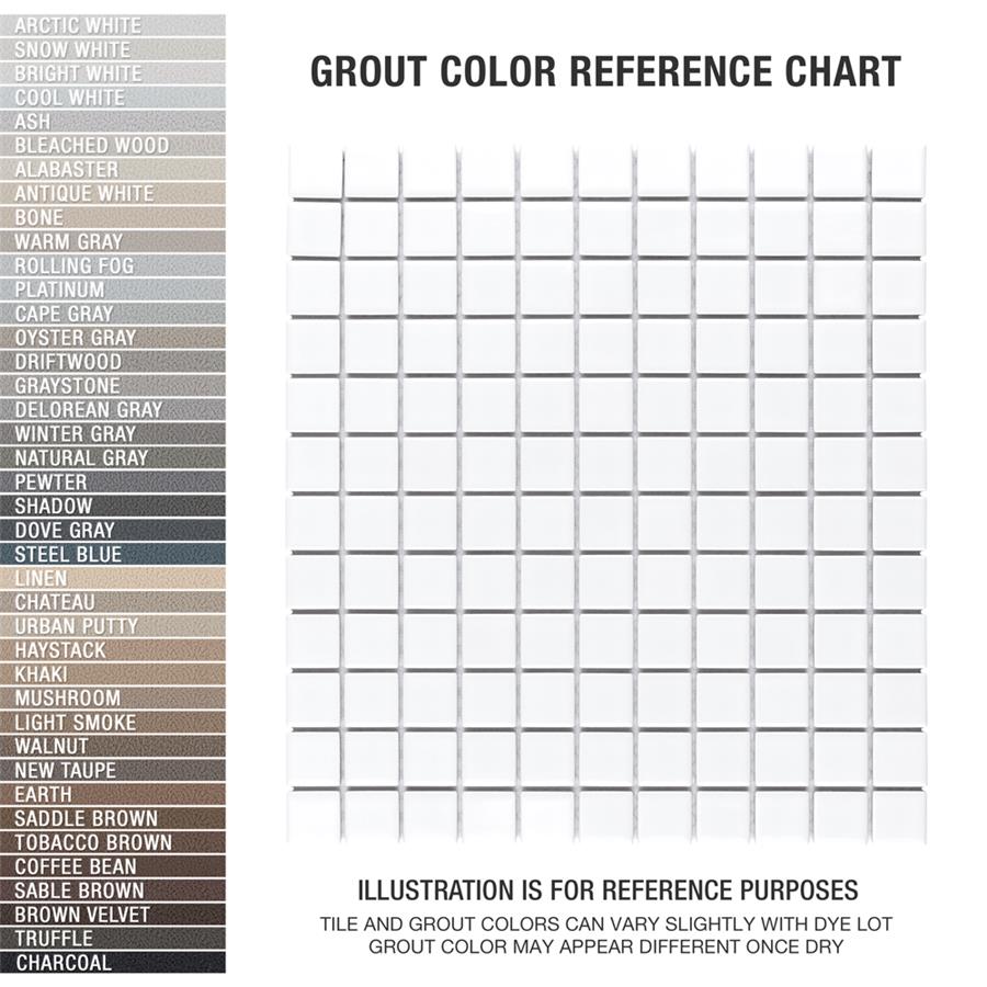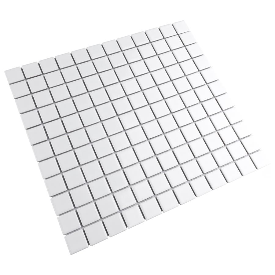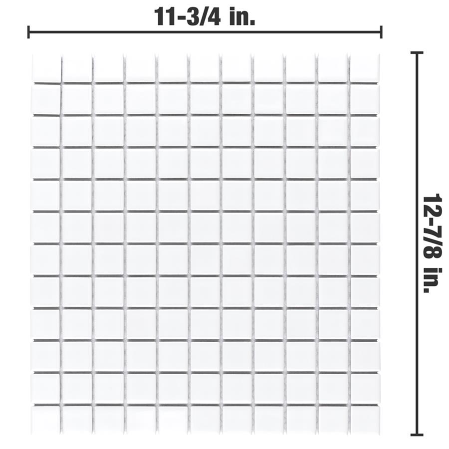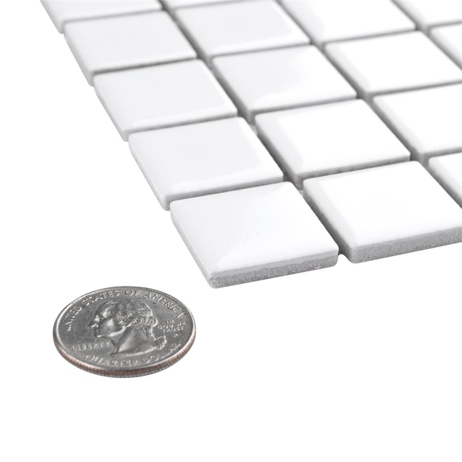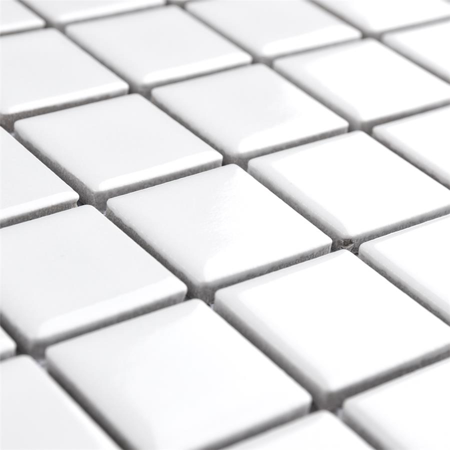 Our Metro Square Glossy White 11-3/4 in. x 12-7/8 in. Porcelain Floor and Wall Mosaic brings a Victorian-era aesthetic to any space. Featuring individual square chips with a glossy white surface, this tile offers a crisp, uniformed appearance that is suitable for a variety of design styles. With characteristics of glazed porcelain tile, this mosaic is impervious and frost resistant. These mesh-mounted tiles offer a high durability rating that is great for any interior or exterior space.Tile is the better choice for your space. This tile is made from natural ingredients, making it a healthy choice as it is free from allergens, VOCs, formaldehyde and PVC.