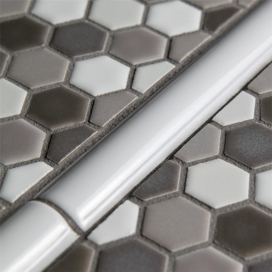 The SomerTile Moldura White 1 in. x 7-7/8 in. Ceramic Rope Pencil Wall Trim Tile features a high-gloss glaze and bold solid color pattern that create a stylish complement for your space. This easy-to-clean tile is constructed from durable, chemical-resistant ceramic material. This features a semi-vitreous water absorption rating that makes it suitable for installation on indoor walls and is a great choice for use as a stand-alone border or as an accent piece.Tile is the better choice for your space. This tile is made from natural ingredients, making it a healthy choice as it is free from allergens, VOCs, formaldehyde and PVC.