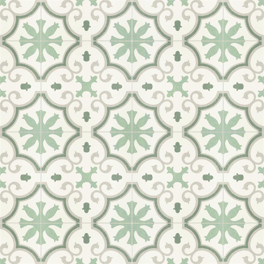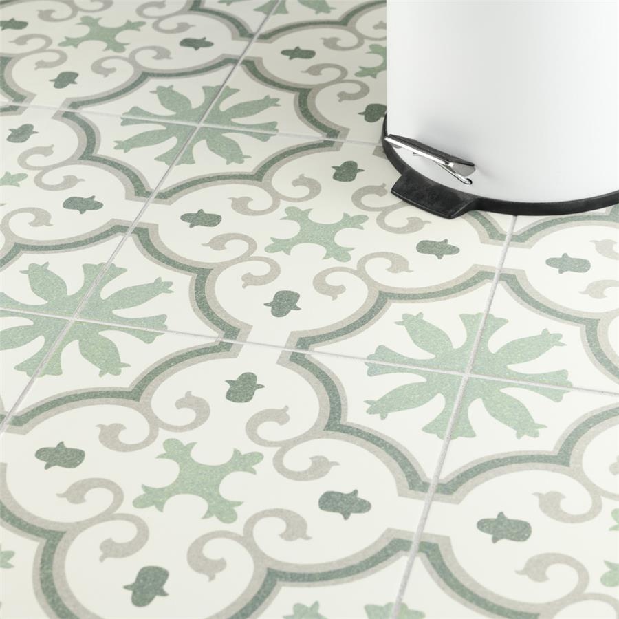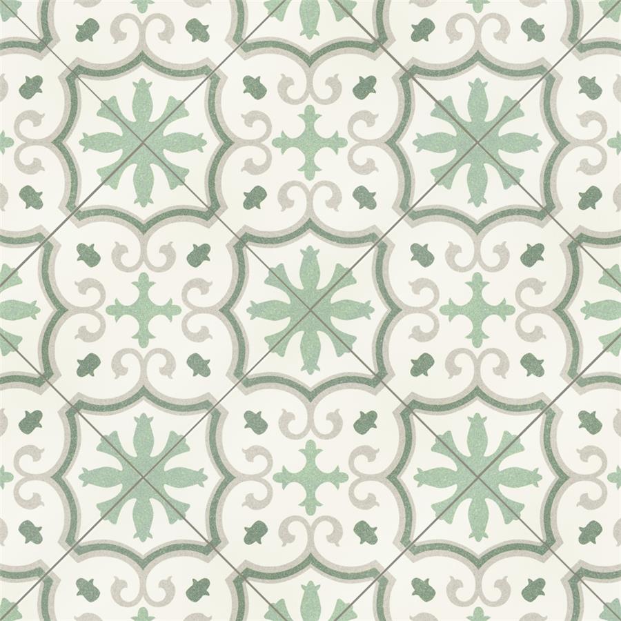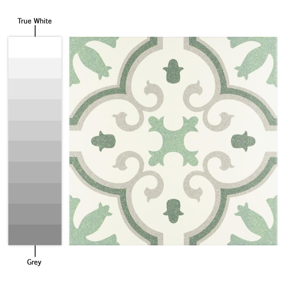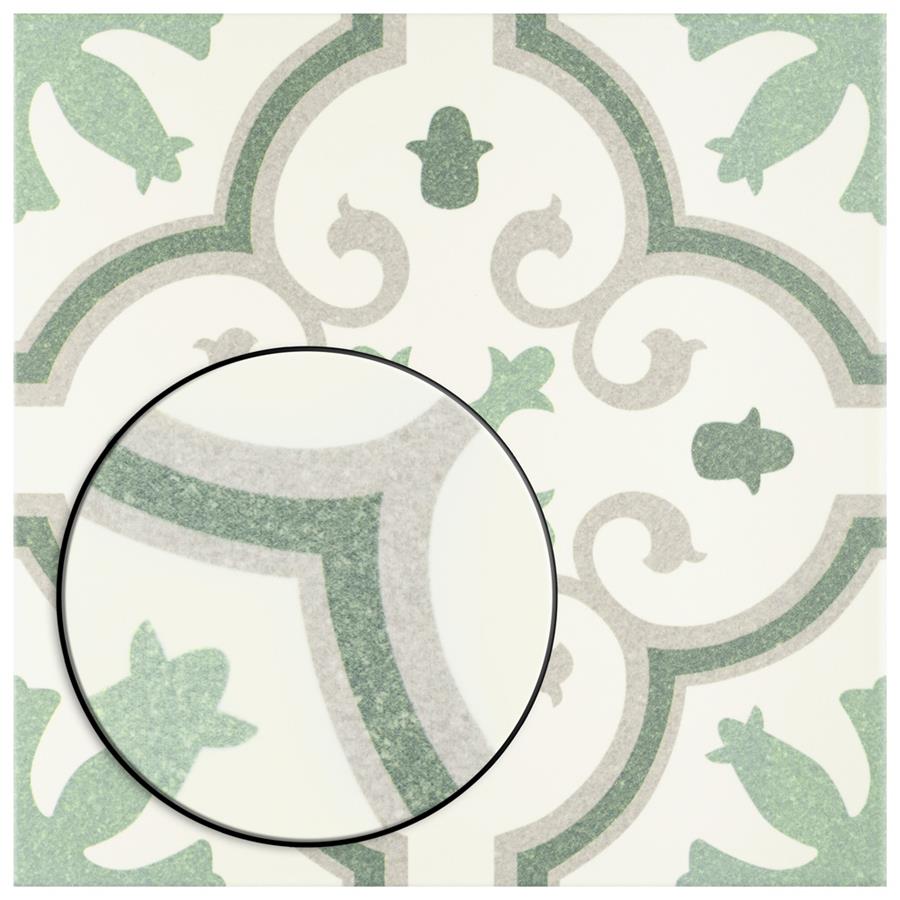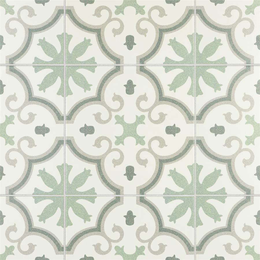 Capturing the beauty of artisanal cement tile, our Monteca Green 9-3/4 in. x 9-3/4 in. Porcelain Floor and Wall Tile is a gorgeous tribute to encaustic design. Set on an eggshell white base glaze, this tile features floral old-world patterns that frame dueling arcs at the center in varying shades of faded olive green, light green and light grey, offering contrast and dimension to the decoration. The smooth, satin surface features a weathered, speckled look, replicating the beauty of aged tile. The floral, geometric pattern blends into virtually any design theme, making this an exceptional product for modern installations and historic renovations. Its impervious and frost-resistant features make this tile and ideal choice for both indoor and outdoor commercial and residential installations, including kitchens, bathrooms, backsplashes and patios.Tile is the better choice for your space. This tile is made from natural ingredients, making it a healthy choice as it is free from allergens, VOCs, formaldehyde and PVC.