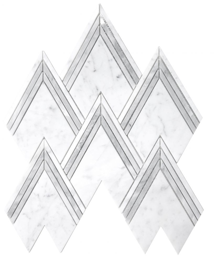 Product Sold By The SheetPrecious Stone series: Mountain Peak Carrara 12.5×12.5 – Water-jet cut Carrara marble to create precise peaks for mountain top effect. This Mosaic comes in a Polished finish.Suggested Grout Color: Bostik Trucolor White H152WARNING: This product can expose you to chemicals including crystalline silica (airborne particles of respirable size) in dust created during fabrication/installation if the product is dry cut/ground or pulverized, which are known to the State of California to cause cancer. For more information, go to https://www.p65warnings.ca.gov/.