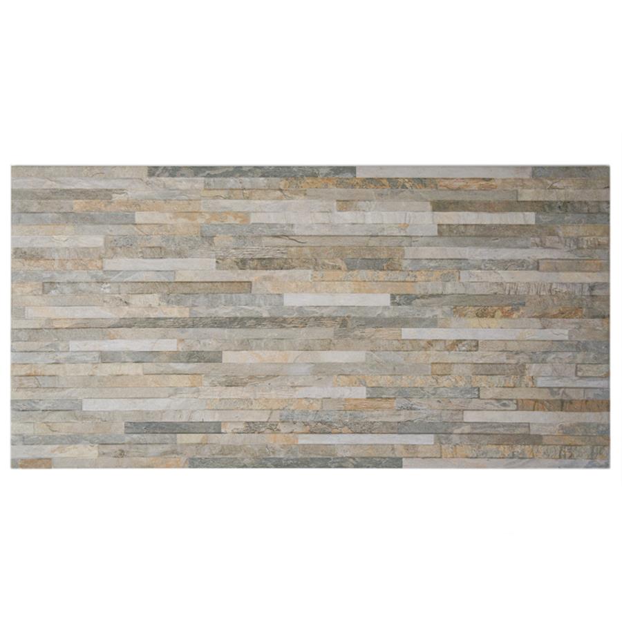 The wonderful aesthetic of split-face stone has come to life in the SomerTile Muro Ardesia Ocre 12-1/2 in. x 24-1/2 in. Porcelain Wall Tile. The complex glaze features a light and warm selection of earth tones, applied to look like carefully stacked slabs of various rocks. A matte finish with an occasional shimmer is the last detail on this meticulous piece, which brings rustic, natural appeal to your indoor or outdoor walls. This tile’s versatile palette makes it suitable for many decors, but seems especially fitting for a fireplace surround, adding an earthy feel to any space.Tile is the better choice for your space. This tile is made from natural ingredients, making it a healthy choice as it is free from allergens, VOCs, formaldehyde and PVC.