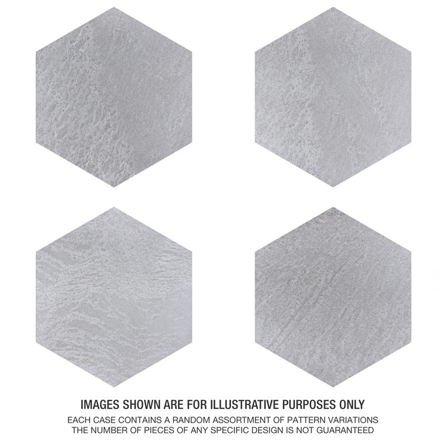 Capturing the organic appeal of natural stone in a durable porcelain material, our Nagpur Grand Hex Perla 19” x 22” Porcelain Floor and Wall Tile and Wall Tile brings the irreplaceable beauty of nature into any living space. This large format hexagon tile features delicate veining and natural mineral-like pattern variations in faded grey hues, replicating the appearance of aged stone. This unique porcelain tile offers decorative, contemporary beauty through a realistic textured finish and scuffs and spots that are ideal for bringing an interior space to life. This trendsetting display of stone-look design is visually appealing and versatile and blends beautifully with a range of styles from vintage industrial to modern day. Its impervious, frost-resistant, and durable features make this an ideal choice for both commercial and residential indoor and outdoor installations including, kitchens, bathrooms, backsplashes, showers, hallways, entryways, patios, and fireplace facades. Tile is the better choice for your space. This tile is made from natural ingredients, making it a healthy choice as it is free from allergens, VOCs, formaldehyde, and PVC.Try out our grout test below to determine which grout color suits your design preferences.