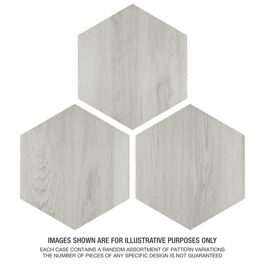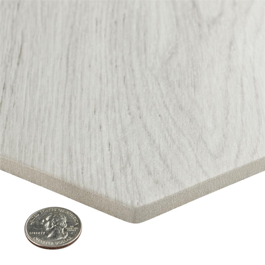 Featuring a simple yet captivating design, our Natura Hex White Porcelain Floor and Wall Tile introduces eye-catching natural beauty that provides character and personality wherever it is installed. This hexagon tile features soft shades of beige, grey and white that blend with meticulous wood grains, offering the resemblance of sophisticated natural wood. To add further contrast and depth, this tile has subtle bumps and grooves that further echo the texture and look of real wood. Its impervious and frost resistant features make this an ideal choice for indoor and outdoor installations including kitchens, bathrooms, backsplashes, showers, entryways, and patios. Tile is the better choice for your space. This tile is made from natural ingredients, making it a healthy choice as it is free from allergens, VOCs, formaldehyde, and PVC.
