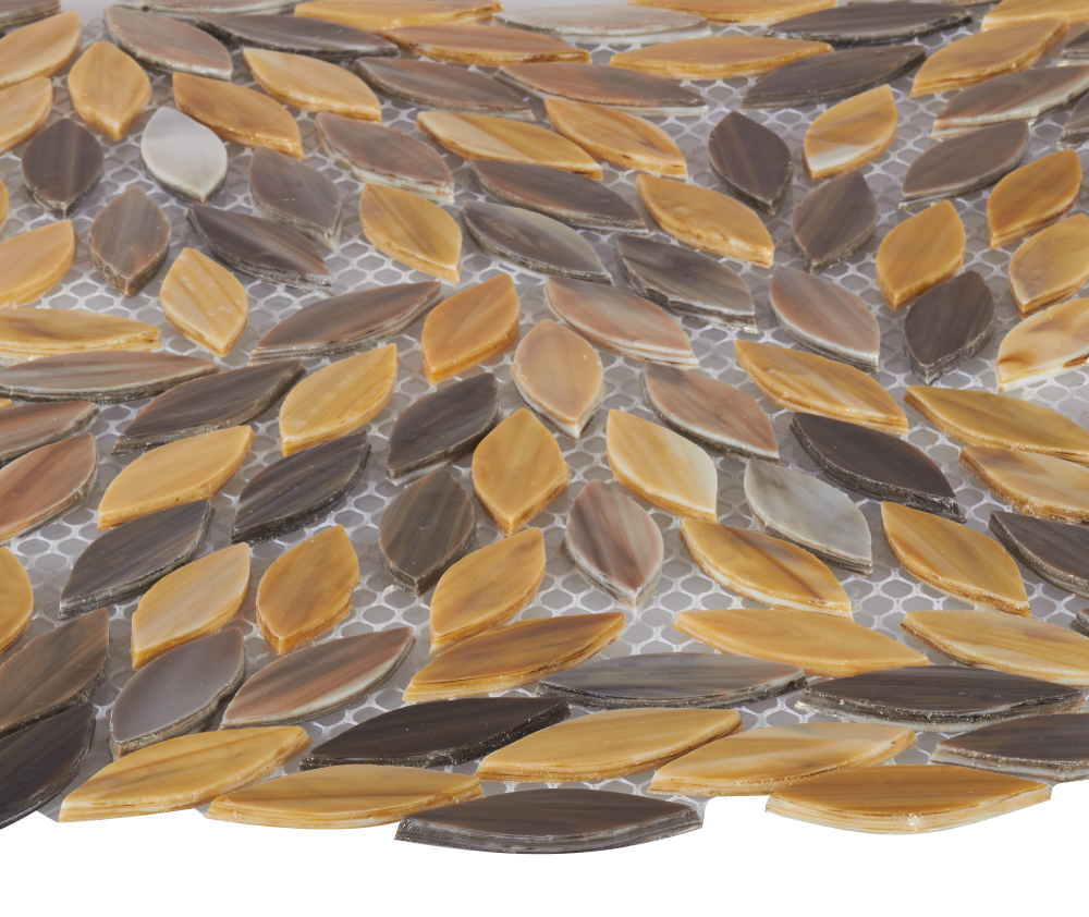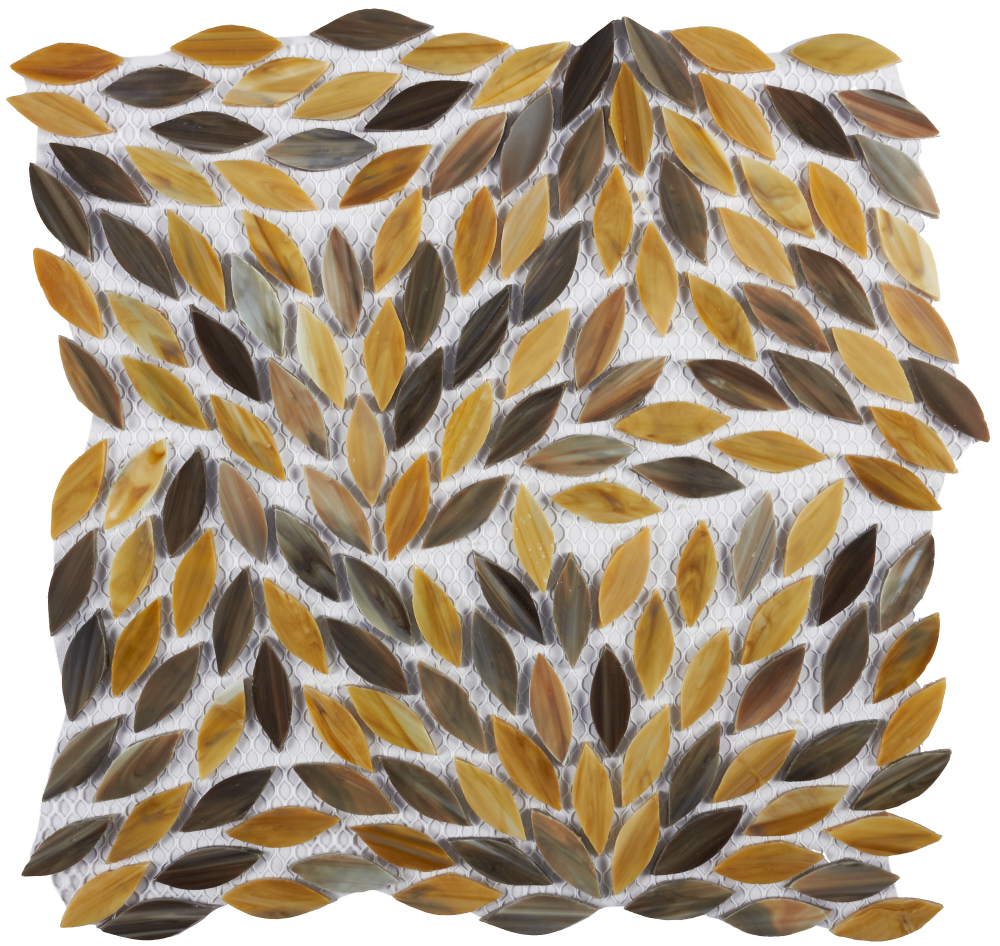Product Sold By The SheetNewport Fall – 11×11″ Stained glass tile. Tan and Brown Full body mosaic in falling leaf shape.Due to sharp edges of tile, not allowed to be installed in a place where bare foot will step on it.Can be used as swimming pool waterline tile.Suggested Grout Color: Bostik Trucolor White H152WARNING: This product can expose you to chemicals including crystalline silica (airborne particles of respirable size) in dust created during fabrication/installation if the product is dry cut/ground or pulverized, which are known to the State of California to cause cancer. For more information, go to https://www.p65warnings.ca.gov/.
