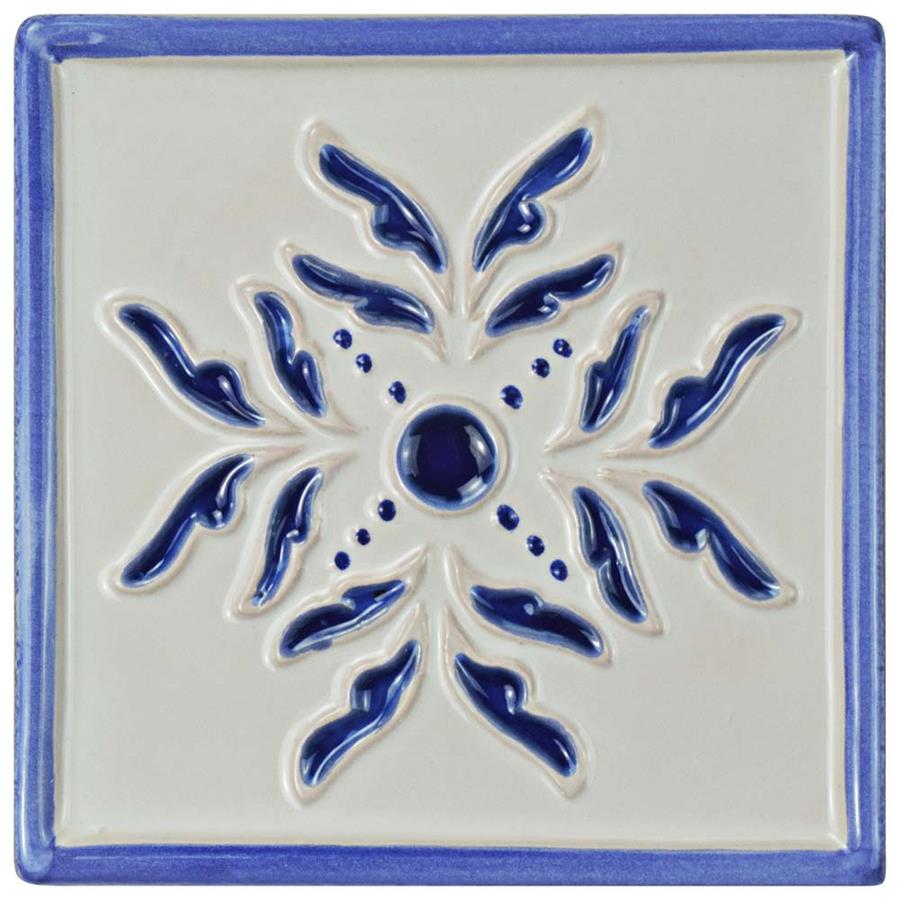 Capture a handcrafted, artisan appearance that is inspired by twentieth-century Spain with our Novecento Taco Evoli Cobalto 5-1/8 in. x 5-1/8 in. Ceramic Wall Tile. Set on a milky hand-painted white glaze, the center floral design is sunken into the surface and has a crackle finish, giving it a dimensional feel. Spots of the red ceramic peek through the bisque glaze on the elevated designs, creating the authentic artisan look. The cobalt color seen throughout has a watercolor, hand-painted design offering a great accent for your wall installation. This glossy old-world tile is great for accenting other items in the Novecento program. Intended for interior wall use, this tile is an excellent selection to accent your backsplash, shower wall, fireplace facade or accent wall. It is necessary that you seal this tile before grouting to prevent the absorption of staining agents over time. Tile is the better choice for your space. This tile is made from natural ingredients, making it a healthy choice as it is free from allergens, VOCs, formaldehyde and PVC.