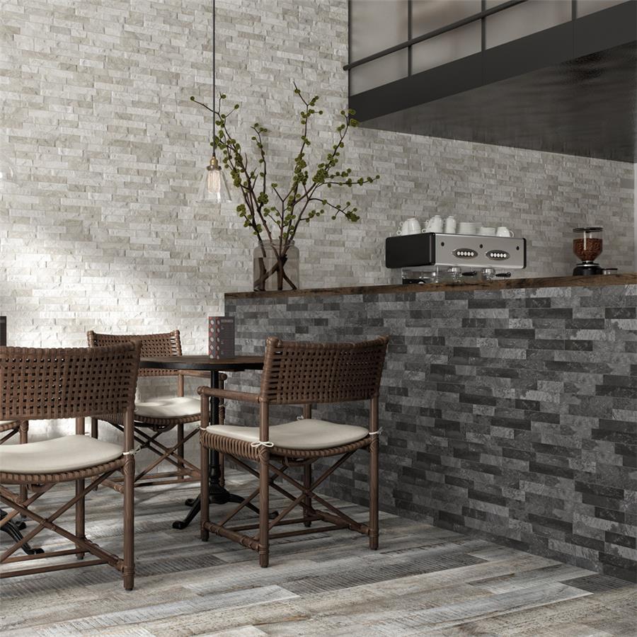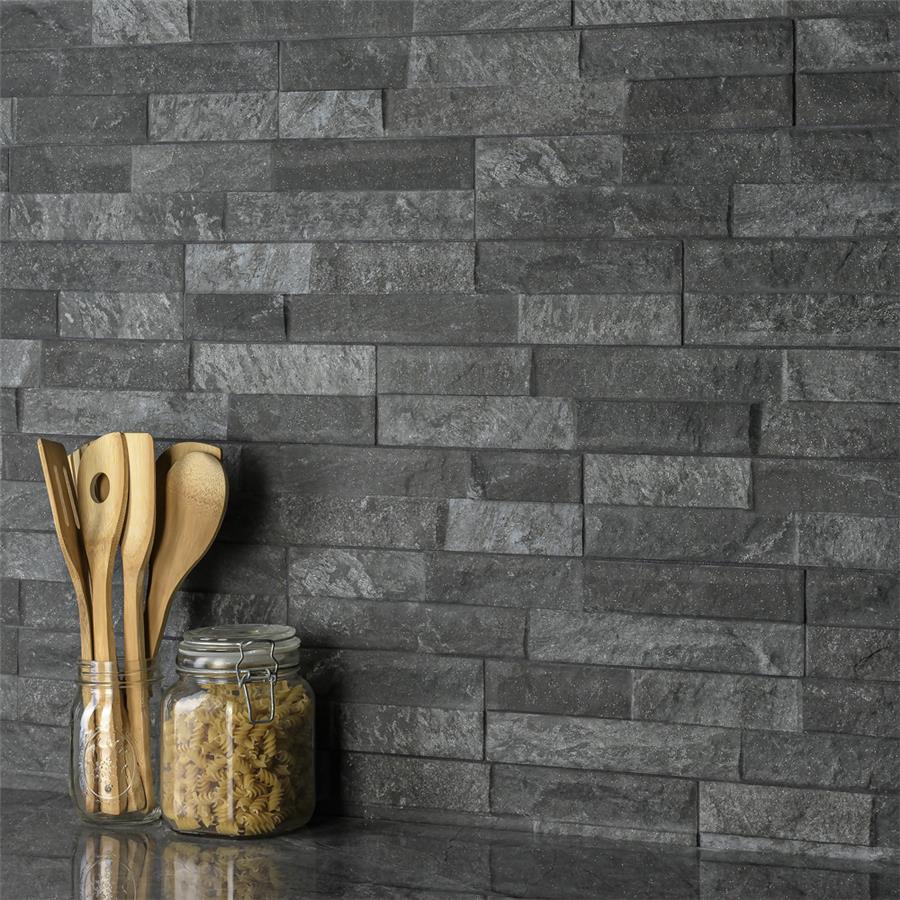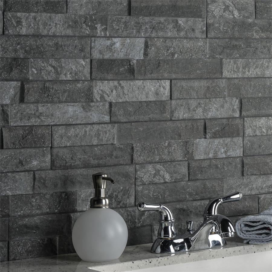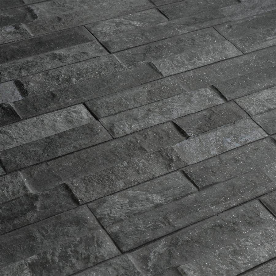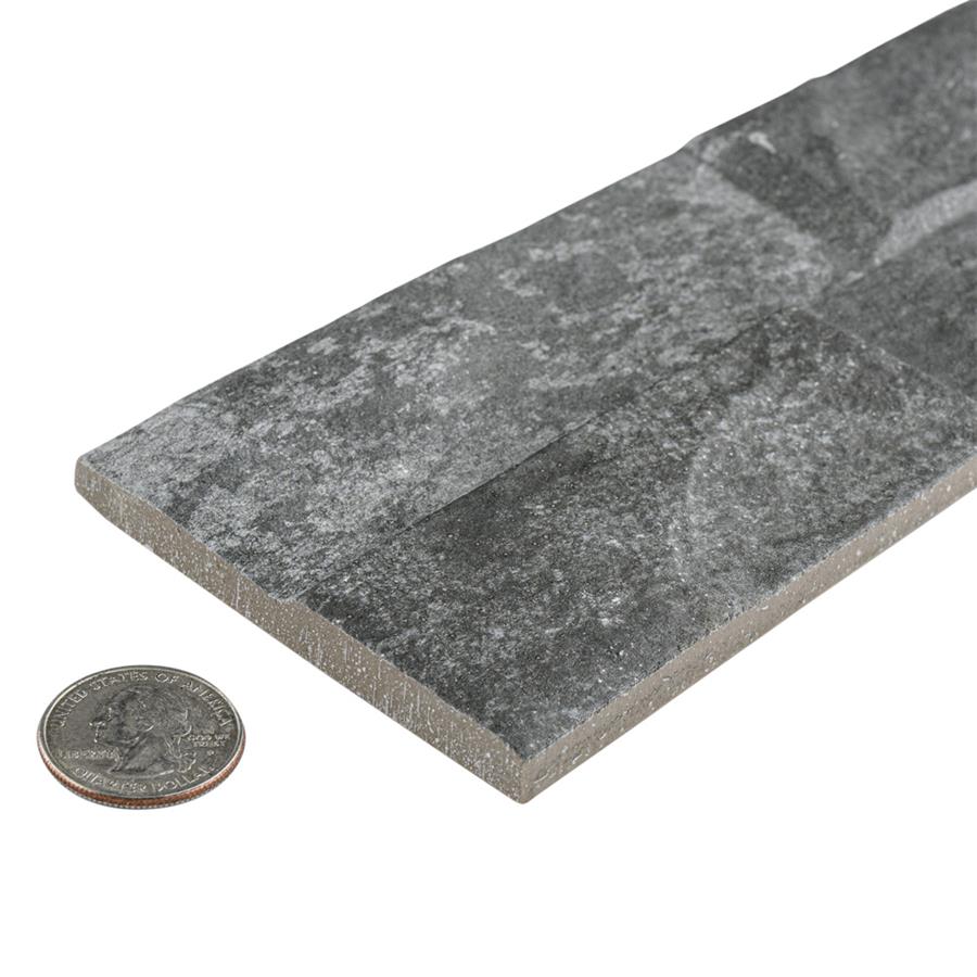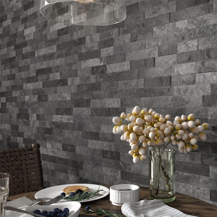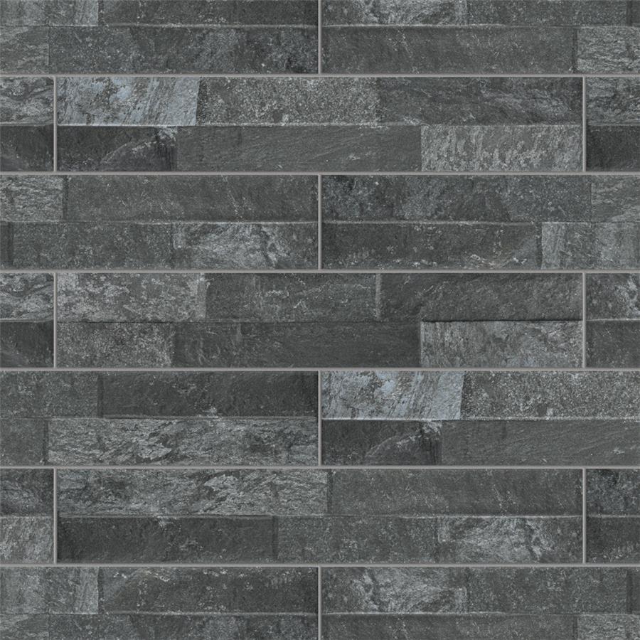 Through the realistic replication of natural stone, our Ordino Black 3-1/4” x 17-1/2” Porcelain Subway Wall Tile transforms any space into a functional and stylish extension of nature. This enlarged rectangular wall tile features an off-set stacked stone pattern in varying shades of slate grey. With a textured three dimensional surface, this unique porcelain panel offers organic, rustic beauty. Available in twenty-four print variations that are randomly scattered throughout each case, the variation throughout each tile mimics an authentic stone appearance. Its impervious and frost-proof features make it an ideal choice for indoor and outdoor wall installations including kitchen backsplashes, shower walls, and fireplace facades. Tile is the better choice for your space. This tile is made from natural ingredients, making it a healthy choice as it is free from allergens, VOCs, formaldehyde and PVC.Try out our grout test below to determine which grout color suits your design preferences.