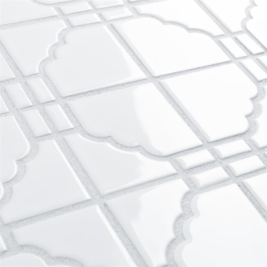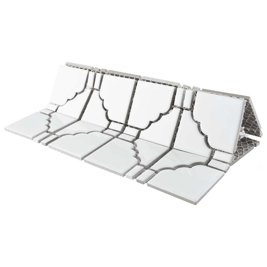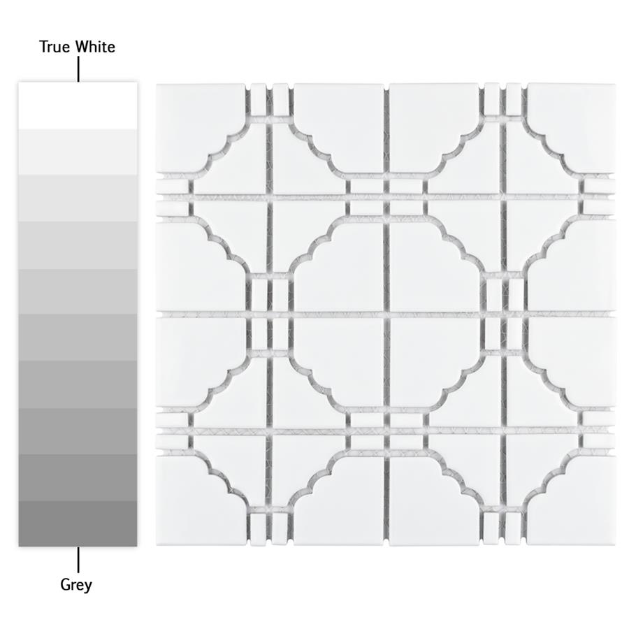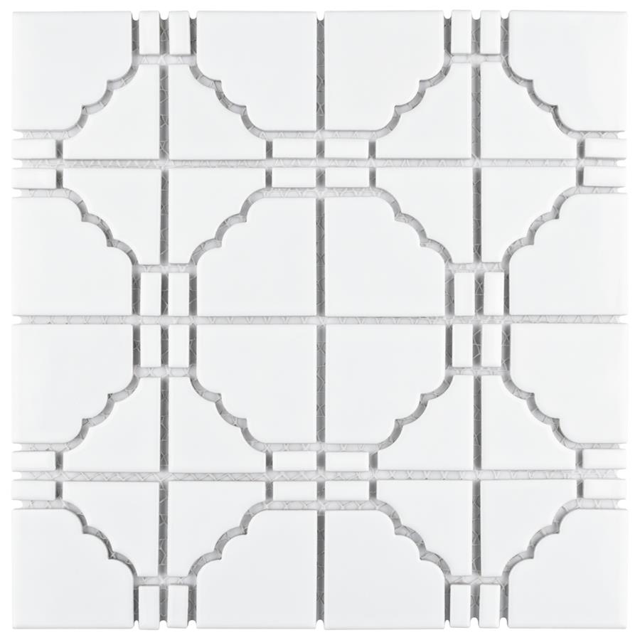 The SomerTile Osaka Glossy White 11.75″ x 11.75” Porcelain Mosaic features a unique mosaic composition as well as a beautiful uniform glossy finish. This glazed white tile is suitable for any wall or backsplash installation or light-traffic residential floors. Use it in its natural format as a field tile or cut it into strips to accent other tiles.
