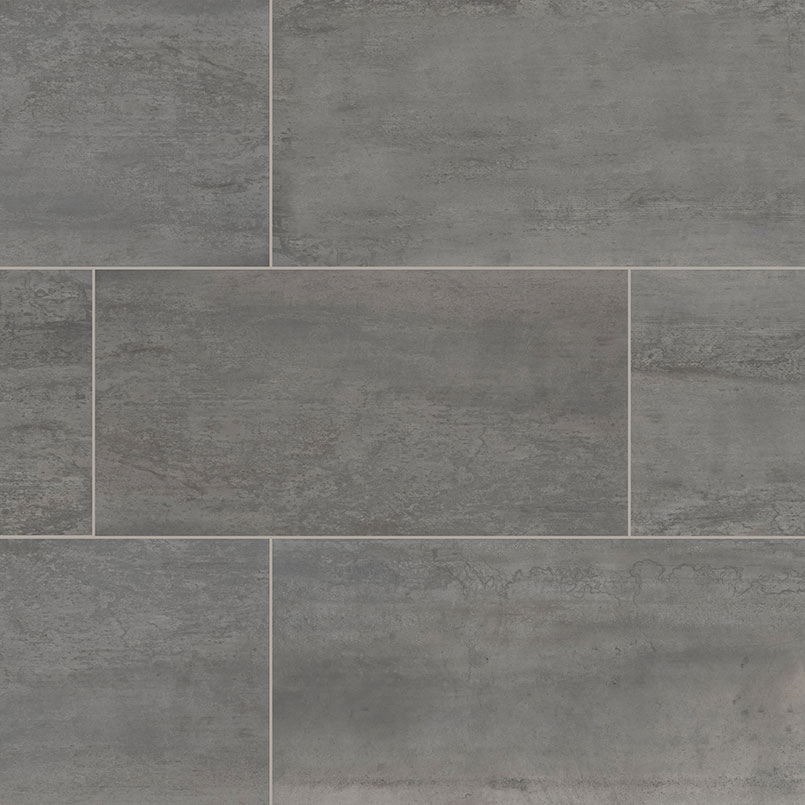 Oxide Magnetite features an artistic mix of gorgeous gray hues and a slight metallic-look finish that adds interest to any room. Impressively durable and easy to care for, this 12×24” and 24×48” large format porcelain tile is the perfect choice for residential and light commercial floors, but it also makes a unique style statement on backsplash, walls, and countertops. With its subtle oxidized look and cool neutral colors, Oxide Magnetite gives your space instant character.Flooring Info:Residential: YesCommercial Light: No