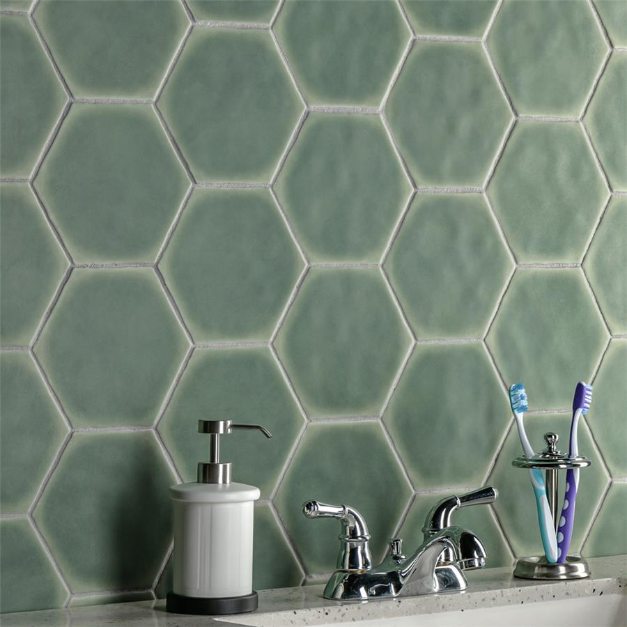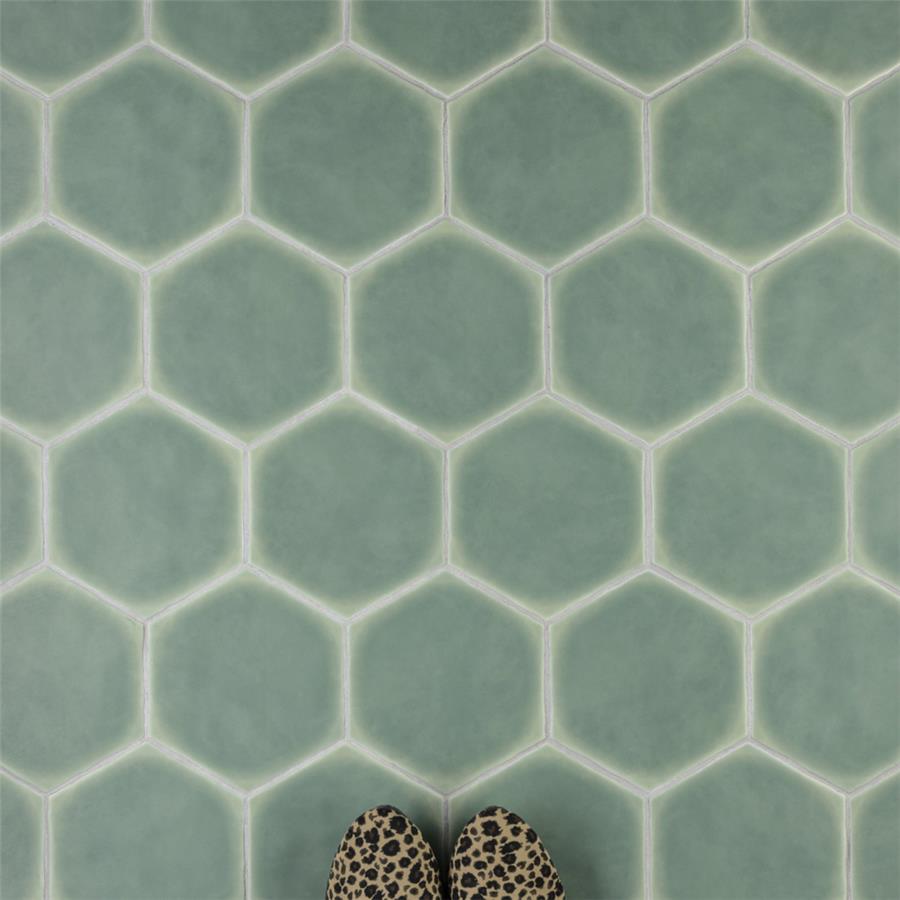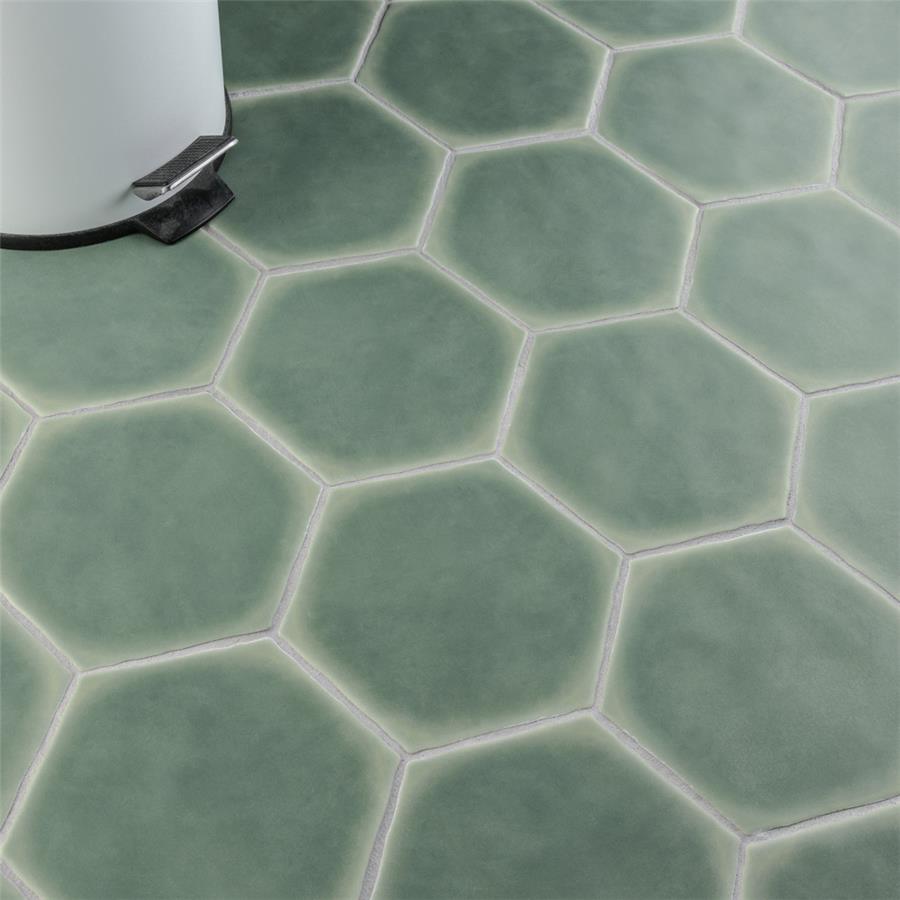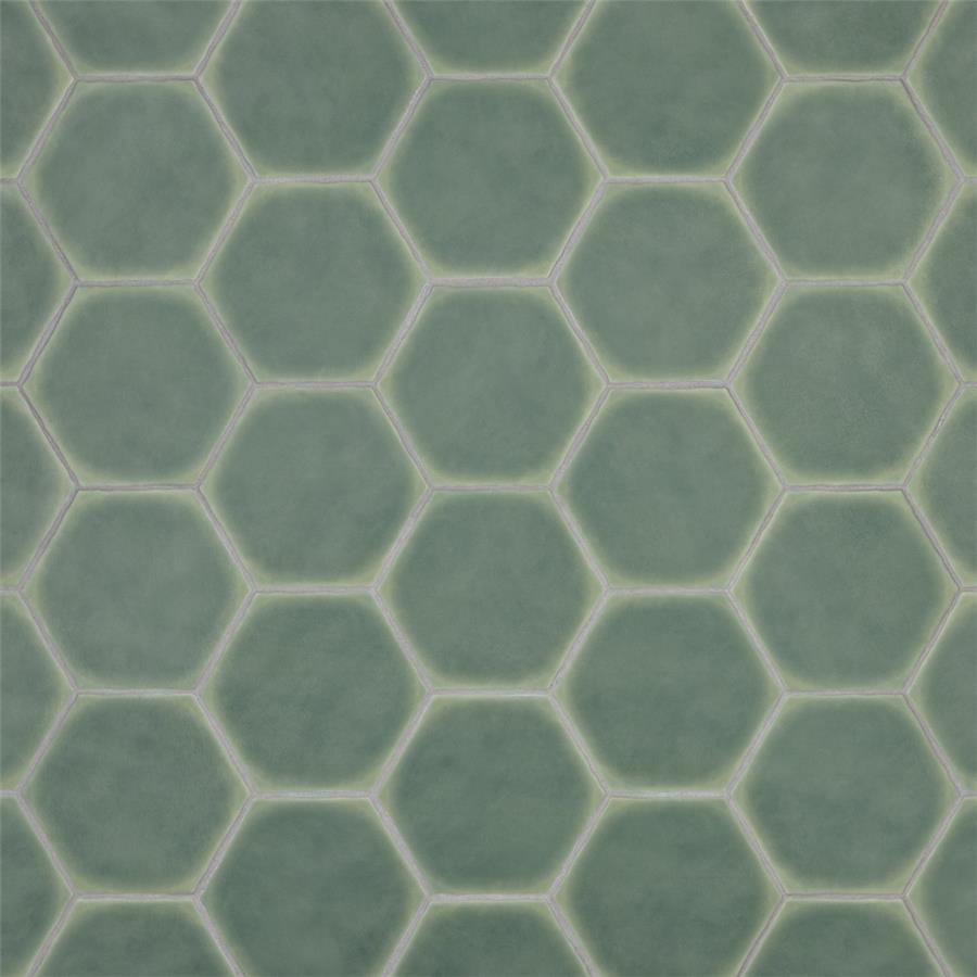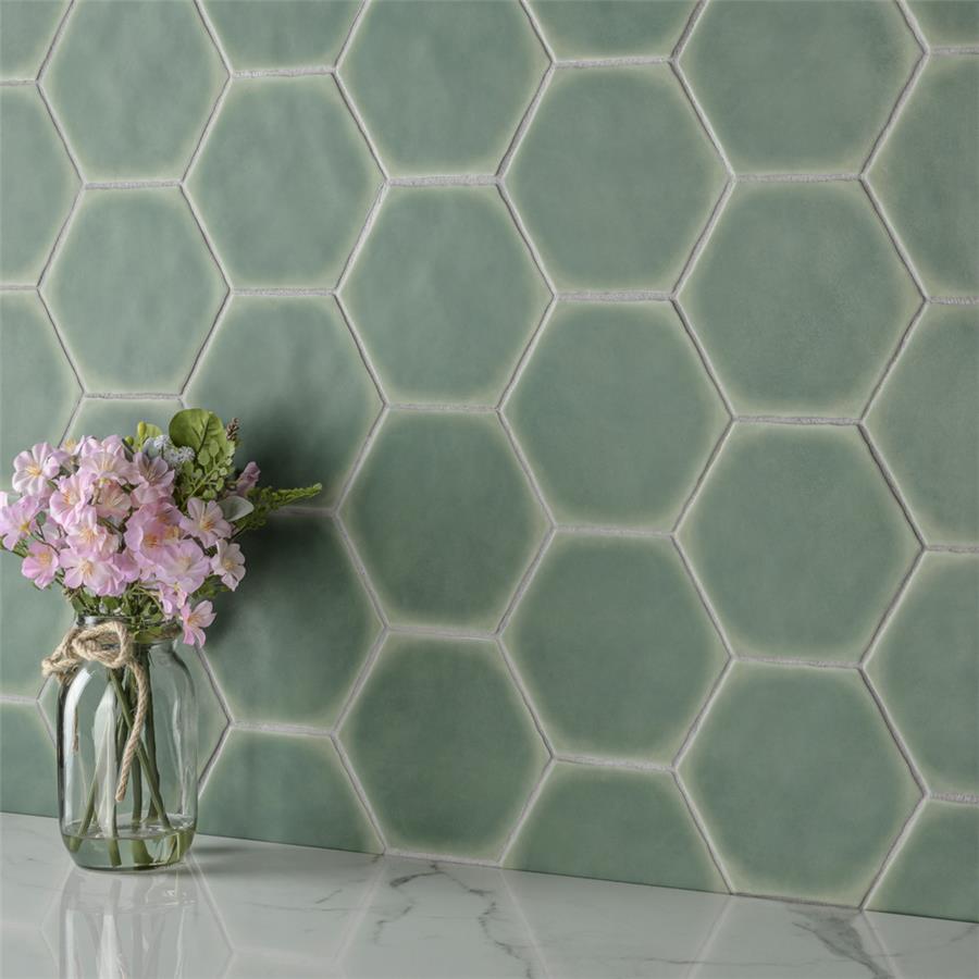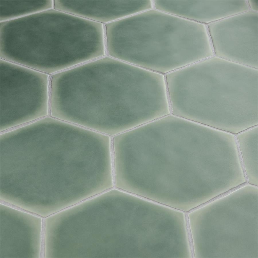 Capturing the simplicity of mid-century modern design, Our Palm Hex Green 6” x 7” Porcelain Floor and Wall Tile is a subtle infusion of soft color and shape. This hexagon shaped tile creates stunning visual effects through a soft pastel green glaze that has subtle variations that are meant to replicate genuine hydraulic tiles. This dynamic display of geometric shape is visually appealing and versatile. To add further contrast and dimension to the design, this matte floor and wall tile features slight surface undulation and subtle edge irregularities, offering an organic handcrafted appearance. Its ADA-compliant, impervious, frost-resistant and durable features make this an ideal choice for both commercial and residential indoor and outdoor installations including, kitchens, bathrooms, backsplashes, showers, hallways, entryways, patios and fireplace facades. Tiles in our Palm Collection arebicottura or double-fired, which ensures each tile is precisely calibrated to allow for installation consistency and the use of tighter grout joints. The second firing of the tile creates a stunning rich glazing effect that cannot be achieved with a single fire process. These tiles are also mono-color, meaning the colors remain consistent between production runs. Tile is the better choice for your space. This tile is made from natural ingredients, making it a healthy choice as it is free from allergens, VOCs, formaldehyde and PVC.Try out our grout test below to determine which grout color suits your design preferences.