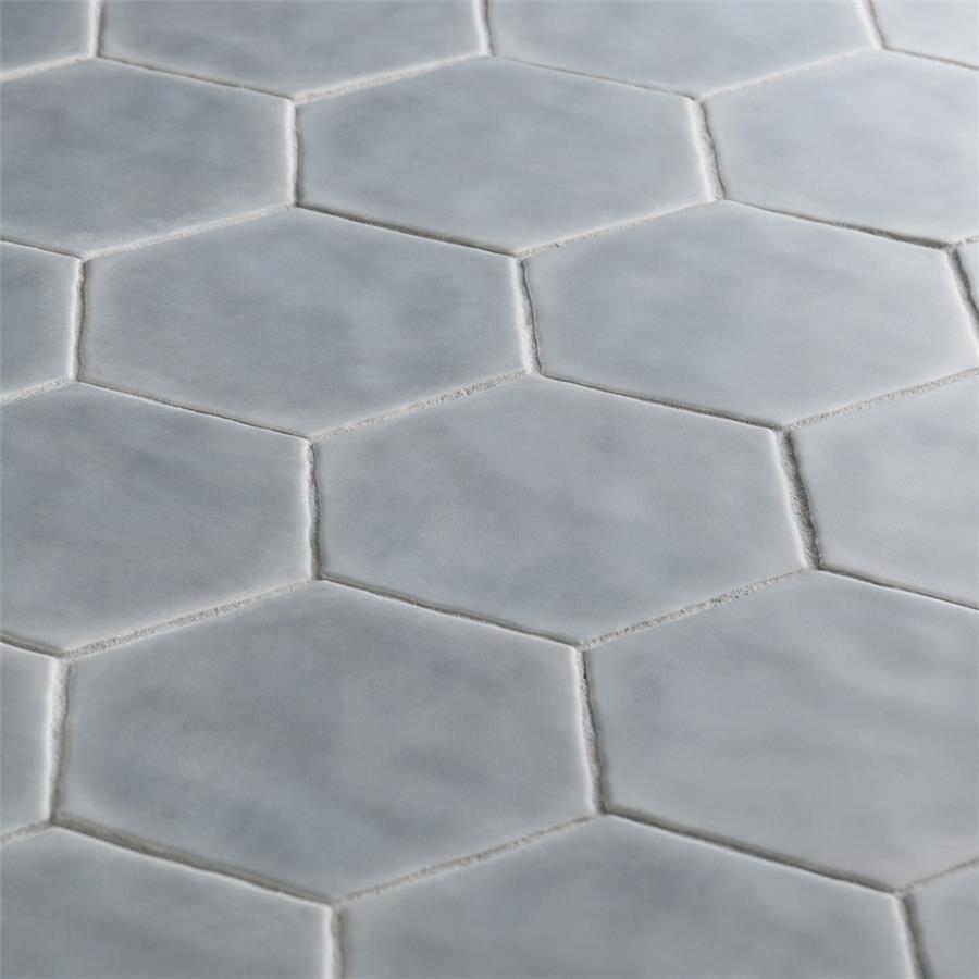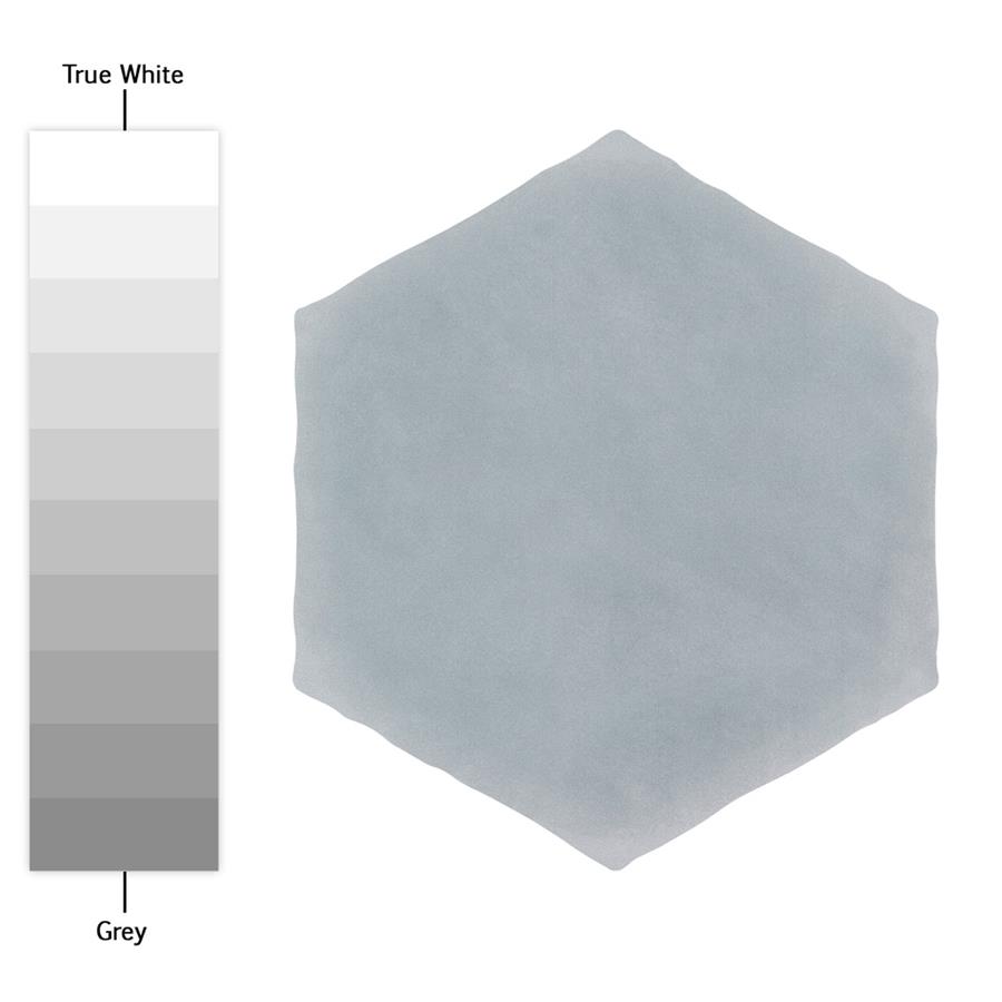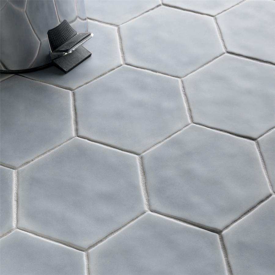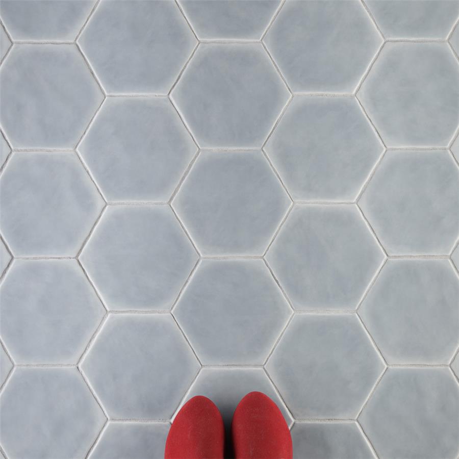 Capturing the simplicity of mid-century modern design, Our Palm Hex Grey 6” x 7” Porcelain Floor and Wall Tile is a subtle infusion of soft color and shape. This hexagon shaped tile creates stunning visual effects through a soft cool-toned grey glaze that has subtle variations that are meant to replicate genuine hydraulic tiles. This dynamic display of geometric shape is visually appealing and versatile. To add further contrast and dimension to the design, this matte floor and wall tile features slight surface undulation and subtle edge irregularities, offering an organic handcrafted appearance. Its ADA-compliant, impervious, frost-resistant and durable features make this an ideal choice for both commercial and residential indoor and outdoor installations including, kitchens, bathrooms, backsplashes, showers, hallways, entryways, patios and fireplace facades. Tiles in our Palm Collection are