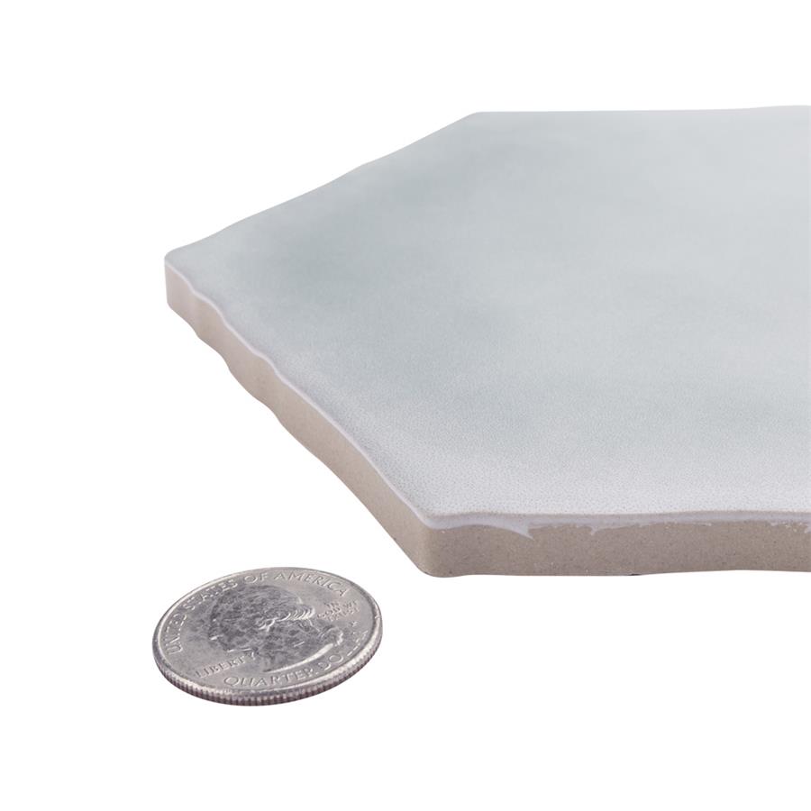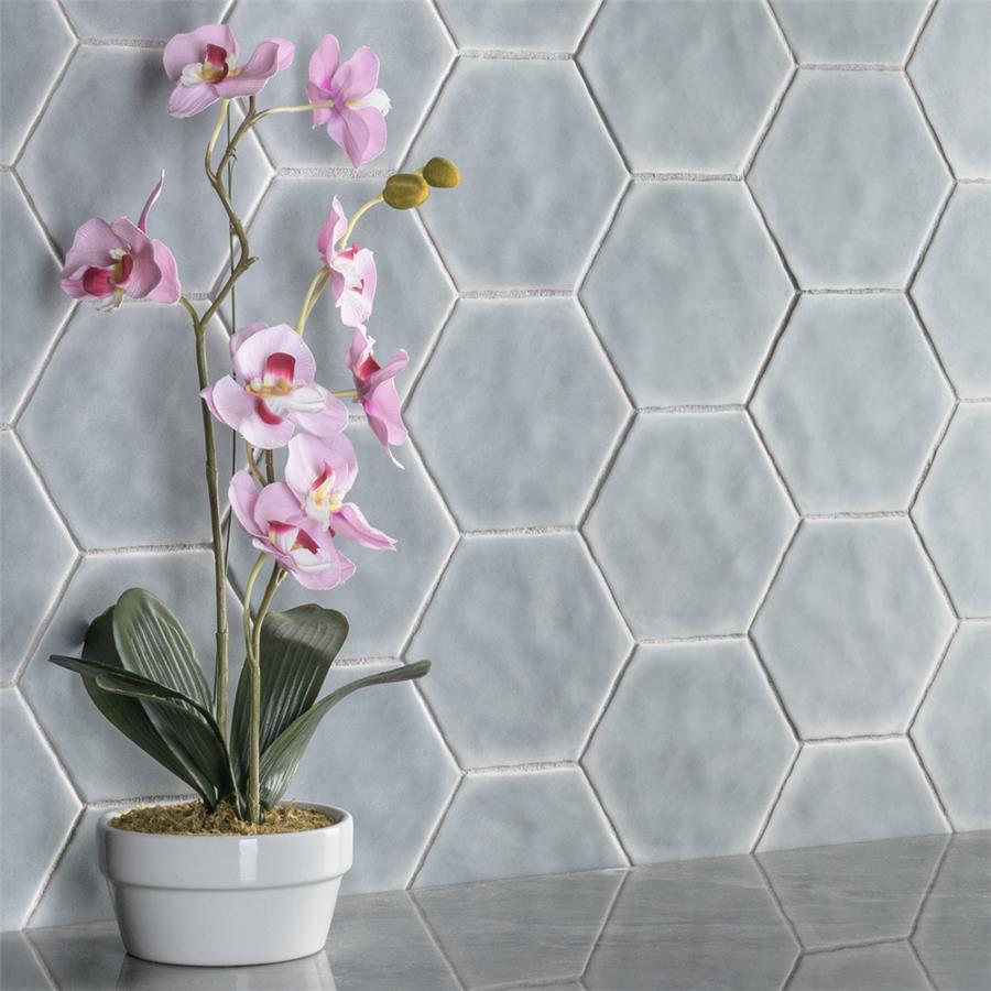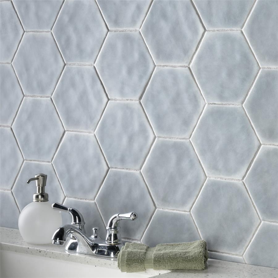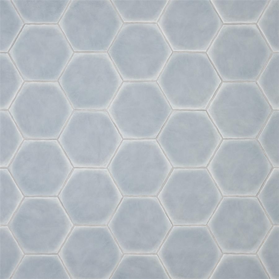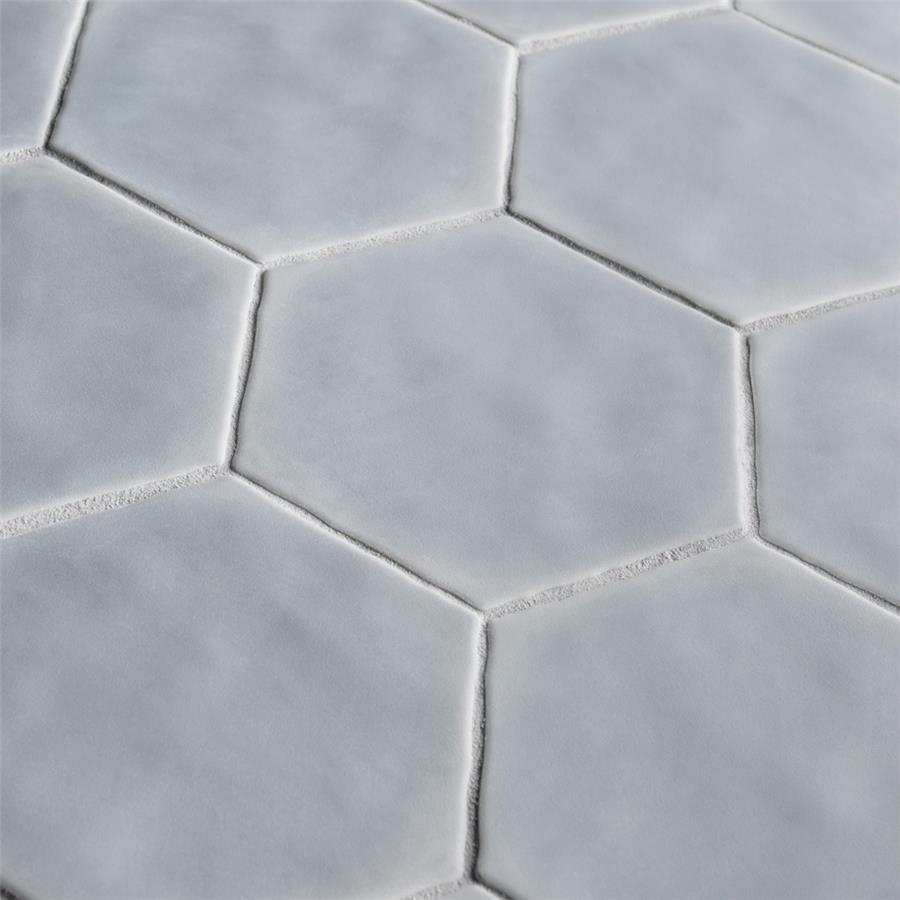 Capturing the simplicity of mid-century modern design, Our Palm Hex Grey 6” x 7” Porcelain Floor and Wall Tile is a subtle infusion of soft color and shape. This hexagon shaped tile creates stunning visual effects through a soft cool-toned grey glaze that has subtle variations that are meant to replicate genuine hydraulic tiles. This dynamic display of geometric shape is visually appealing and versatile. To add further contrast and dimension to the design, this matte floor and wall tile features slight surface undulation and subtle edge irregularities, offering an organic handcrafted appearance. Its ADA-compliant, impervious, frost-resistant and durable features make this an ideal choice for both commercial and residential indoor and outdoor installations including, kitchens, bathrooms, backsplashes, showers, hallways, entryways, patios and fireplace facades. Tiles in our Palm Collection are