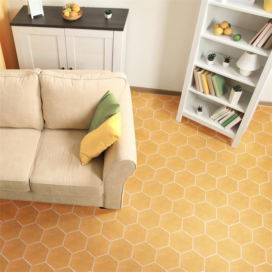 Capturing the simplicity of mid-century modern design, Our Palm Hex Mustard 6” x 7” Porcelain Floor and Wall Tile is a subtle infusion of soft color and shape. This hexagon shaped tile creates stunning visual effects through a soft mustard yellow glaze that has subtle variations that are meant to replicate genuine hydraulic tiles. This dynamic display of geometric shape is visually appealing and versatile. To add further contrast and dimension to the design, this matte floor and wall tile features slight surface undulation and subtle edge irregularities, offering an organic handcrafted appearance. Its ADA-compliant, impervious, frost-resistant and durable features make this an ideal choice for both commercial and residential indoor and outdoor installations including, kitchens, bathrooms, backsplashes, showers, hallways, entryways, patios and fireplace facades. Tiles in our Palm Collection arebicottura or double-fired, which ensures each tile is precisely calibrated to allow for installation consistency and the use of tighter grout joints. The second firing of the tile creates a stunning rich glazing effect that cannot be achieved with a single fire process. These tiles are also mono-color, meaning the colors remain consistent between production runs. Tile is the better choice for your space. This tile is made from natural ingredients, making it a healthy choice as it is free from allergens, VOCs, formaldehyde and PVC.Try out our grout test below to determine which grout color suits your design preferences.