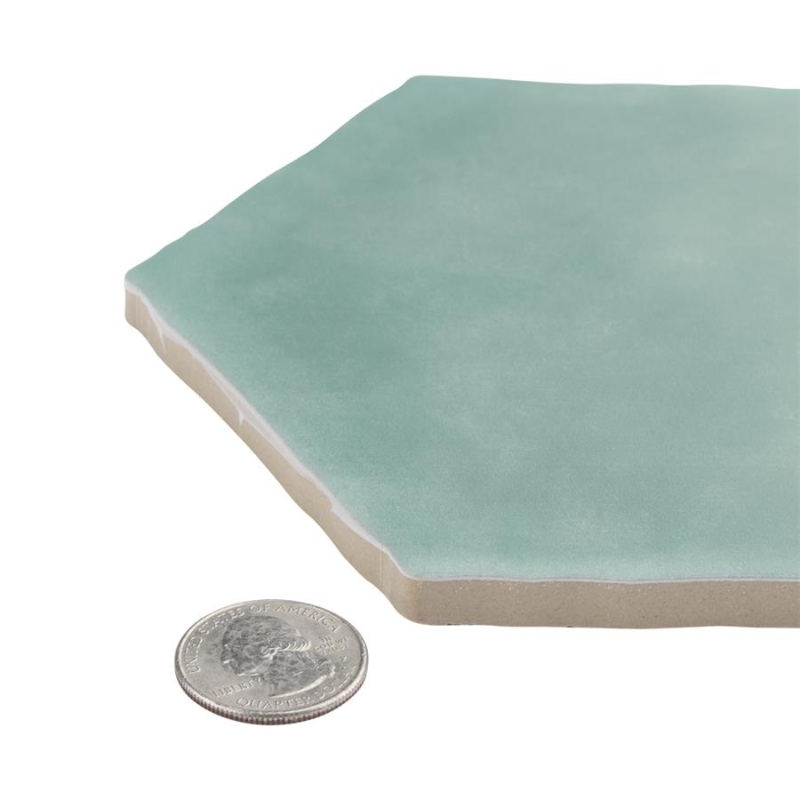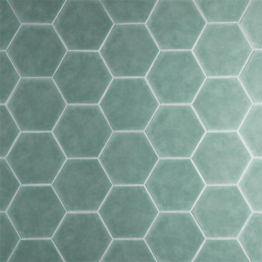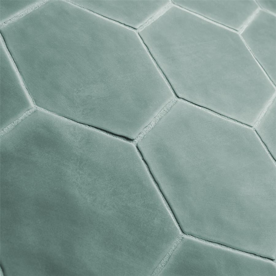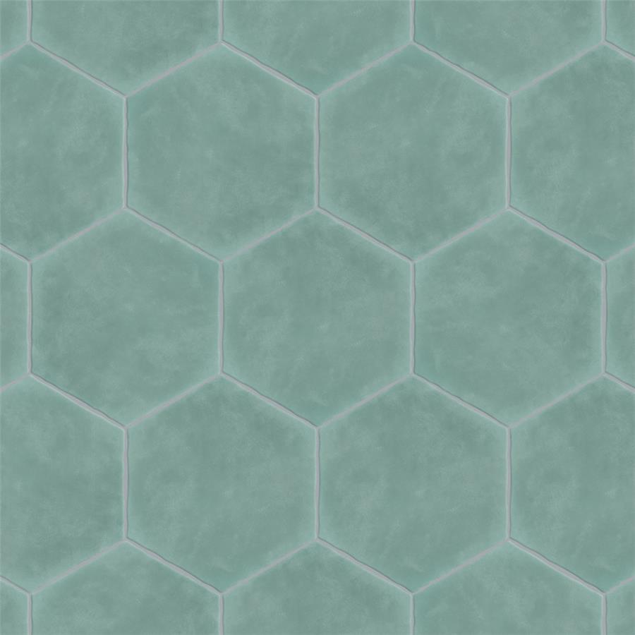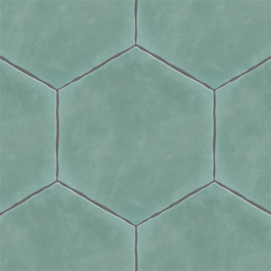 Capturing the simplicity of mid-century modern design, Our Palm Hex Turquoise 6” x 7” Porcelain Floor and Wall Tile is a subtle infusion of soft color and shape. This hexagon shaped tile creates stunning visual effects through a soft pastel turquoise glaze that has subtle variations that are meant to replicate genuine hydraulic tiles. This dynamic display of geometric shape is visually appealing and versatile. To add further contrast and dimension to the design, this matte floor and wall tile features slight surface undulation and subtle edge irregularities, offering an organic handcrafted appearance. Its ADA-compliant, impervious, frost-resistant and durable features make this an ideal choice for both commercial and residential indoor and outdoor installations including, kitchens, bathrooms, backsplashes, showers, hallways, entryways, patios and fireplace facades. Tiles in our Palm Collection are