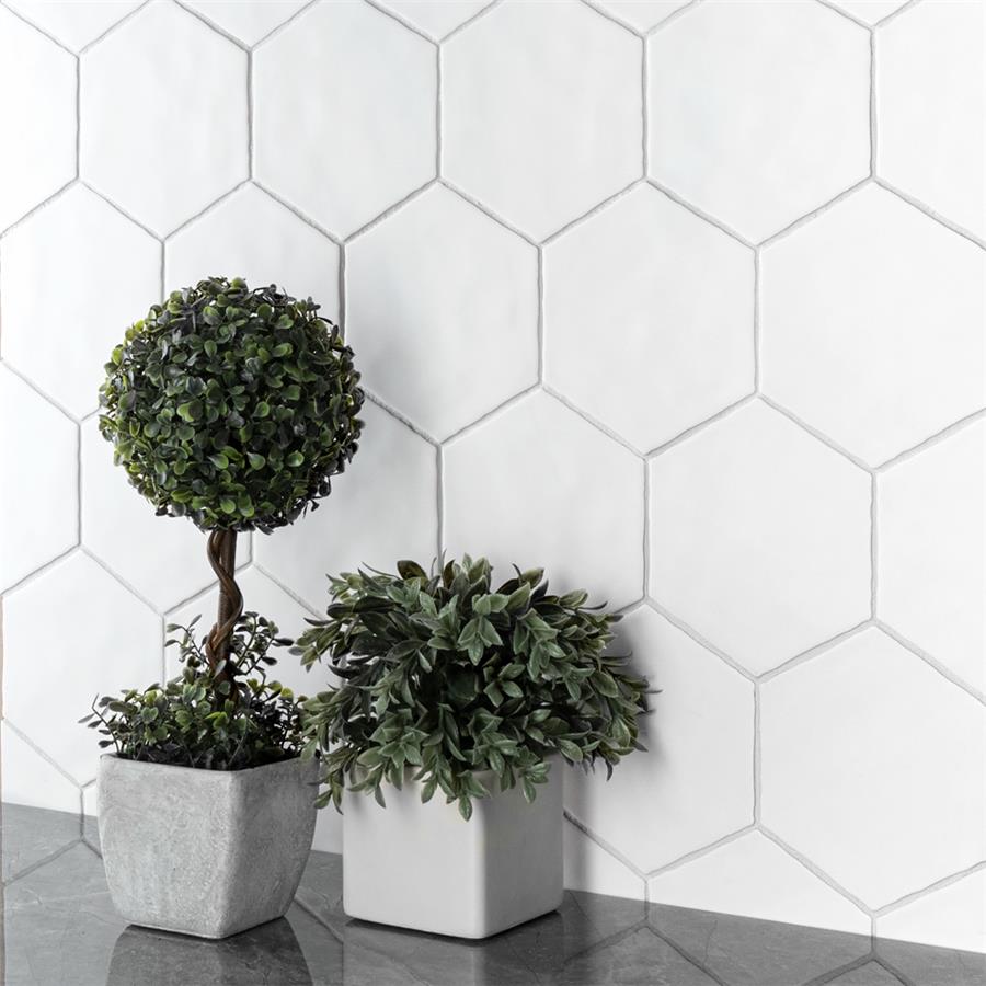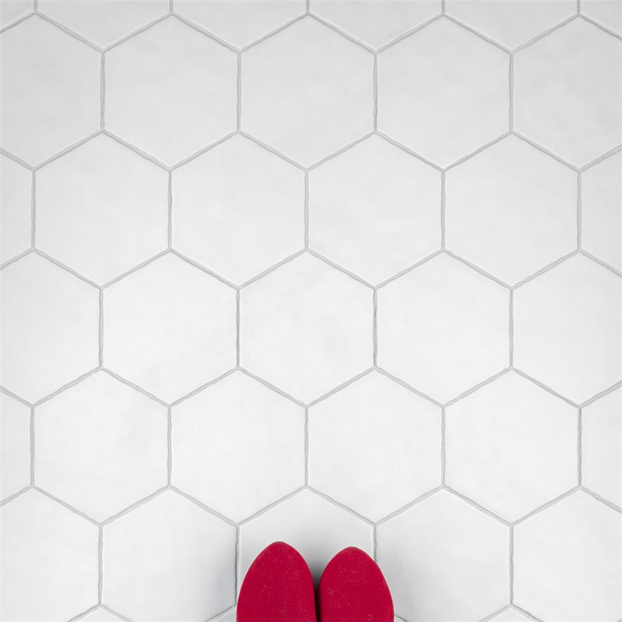 Capturing the simplicity of mid-century modern design, Our Palm Hex White 6” x 7” Porcelain Floor and Wall Tile is a subtle infusion of monochromatic color and shape. This hexagon shaped tile creates stunning visual effects through an off-white glaze that has subtle variations that are meant to replicate genuine hydraulic tiles. This dynamic display of geometric shape is visually appealing and versatile. To add further contrast and dimension to the design, this matte floor and wall tile features slight surface undulation and subtle edge irregularities, offering an organic handcrafted appearance. Its ADA-compliant, impervious, frost-resistant and durable features make this an ideal choice for both commercial and residential indoor and outdoor installations including, kitchens, bathrooms, backsplashes, showers, hallways, entryways, patios and fireplace facades. Tiles in our Palm Collection arebicottura or double-fired, which ensures each tile is precisely calibrated to allow for installation consistency and the use of tighter grout joints. The second firing of the tile creates a stunning rich glazing effect that cannot be achieved with a single fire process. These tiles are also mono-color, meaning the colors remain consistent between production runs. Tile is the better choice for your space. This tile is made from natural ingredients, making it a healthy choice as it is free from allergens, VOCs, formaldehyde and PVC.Try out our grout test below to determine which grout color suits your design preferences.
