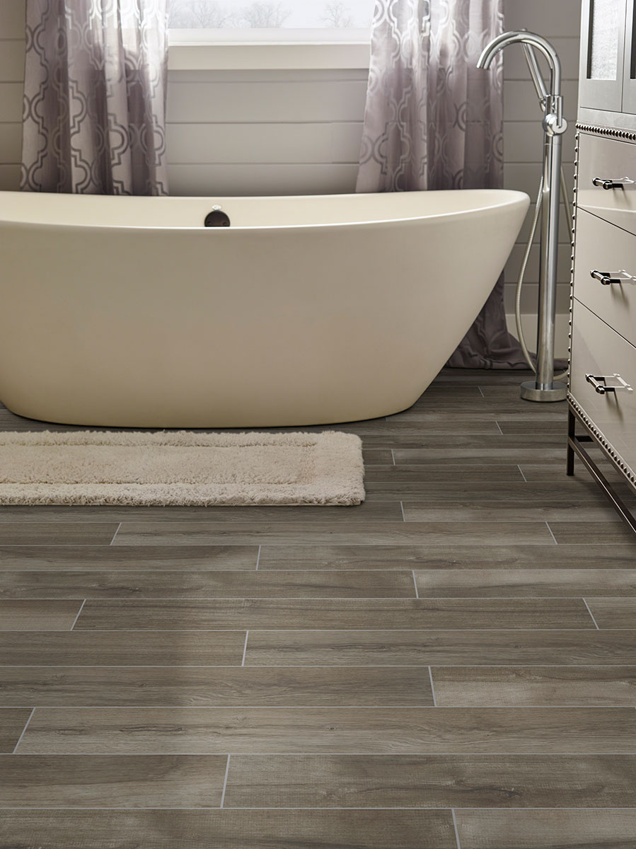 Palmetto Smoke Wood Look tile features a smoky gray tone, in a natural wood grain look. Ideal for design styles from traditional to contemporary, when you want the charm and elegance of hardwood, but the low maintenance of porcelain tiles. Suitable for a variety of interior design projects including flooring, countertops, and walls in homes and light traffic commercial properties.Flooring Info:Residential: YesCommercial Light: Yes