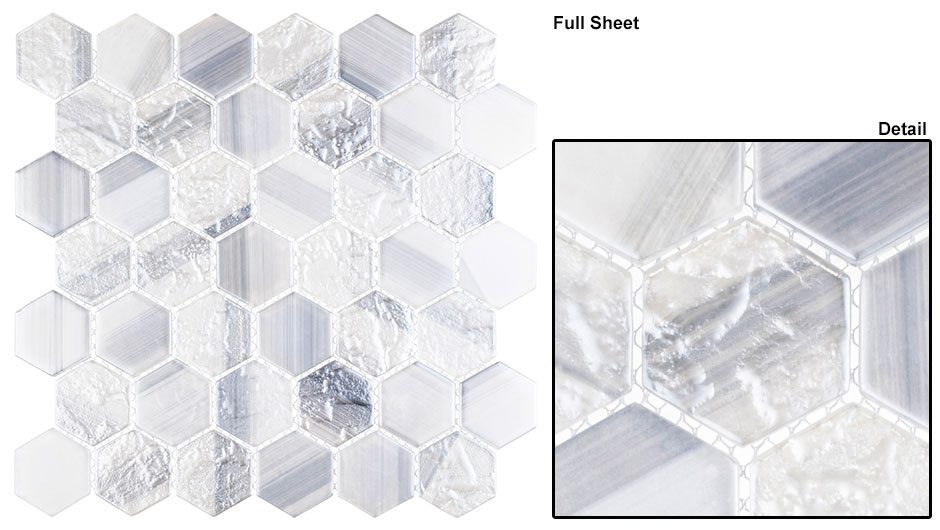 Tile Size: 2″ HexSheet Size: 11 13/16″ x 11 7/8″Sheet Coverage: 0.97 SQFRows per Sheet: 7Tiles per Sheet: 42Cut into Borders: Every 2 rowsGrout Joint: 1/16″ (2 mm)Mesh Mounted: YesDue to the variance in installation methods, grout colors, lighting, image variances and computer monitor settings; the images above may not accurately represent the true color of the products after installation.Therefore Glazzio Tiles always recommends that tiles not be purchased from an image of any kind.