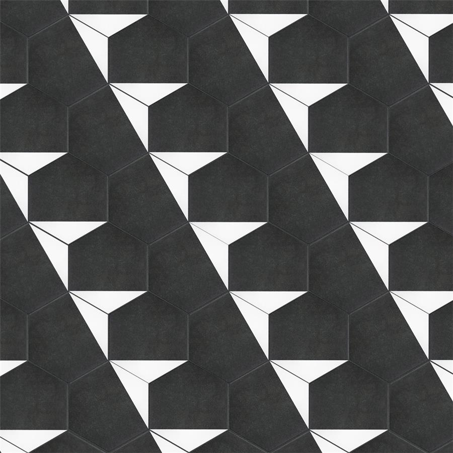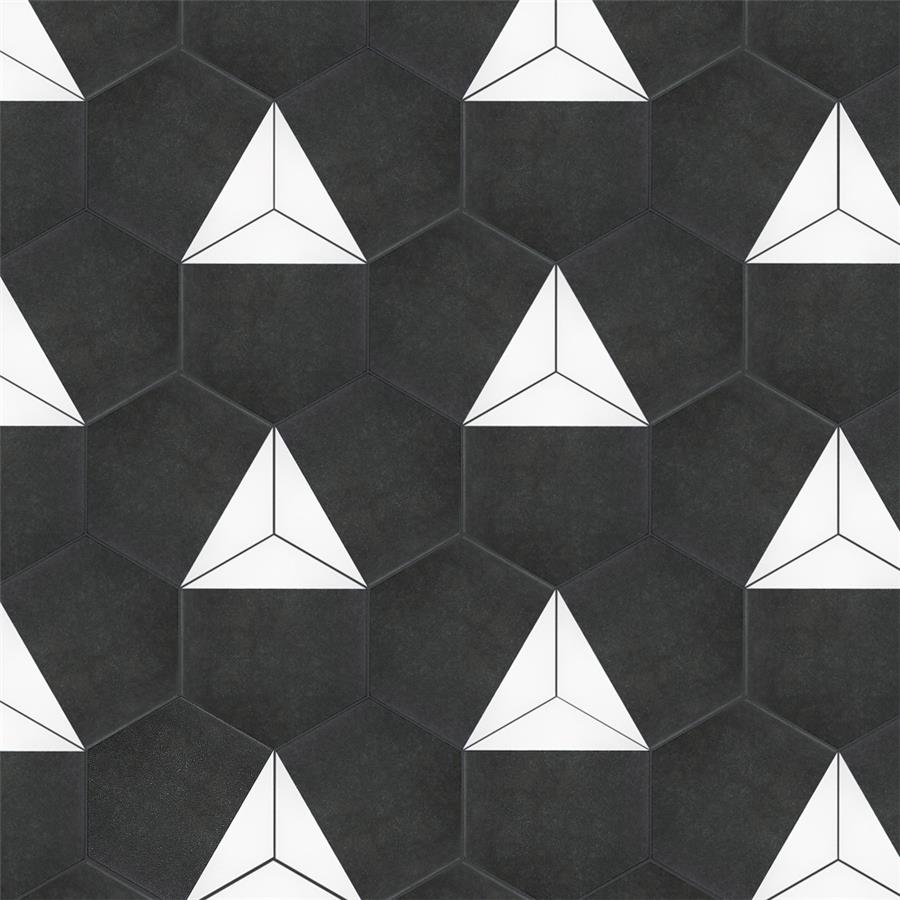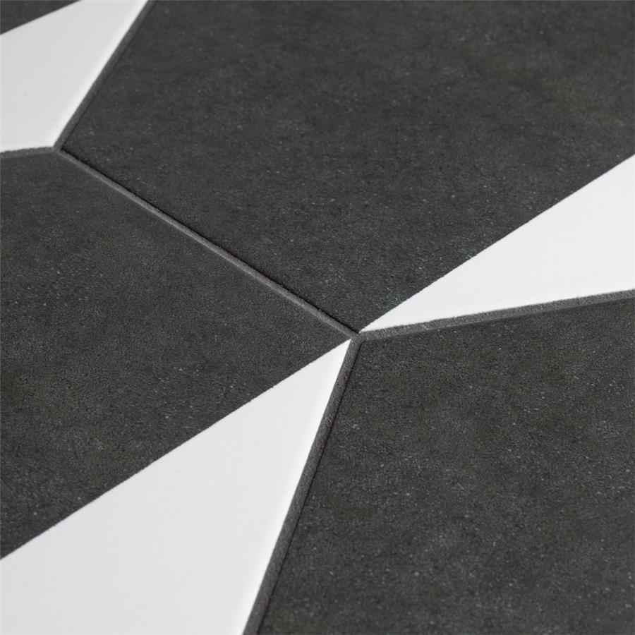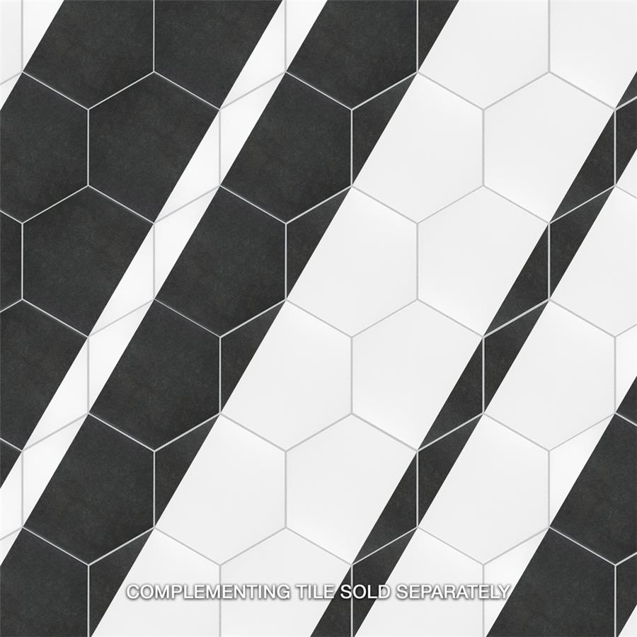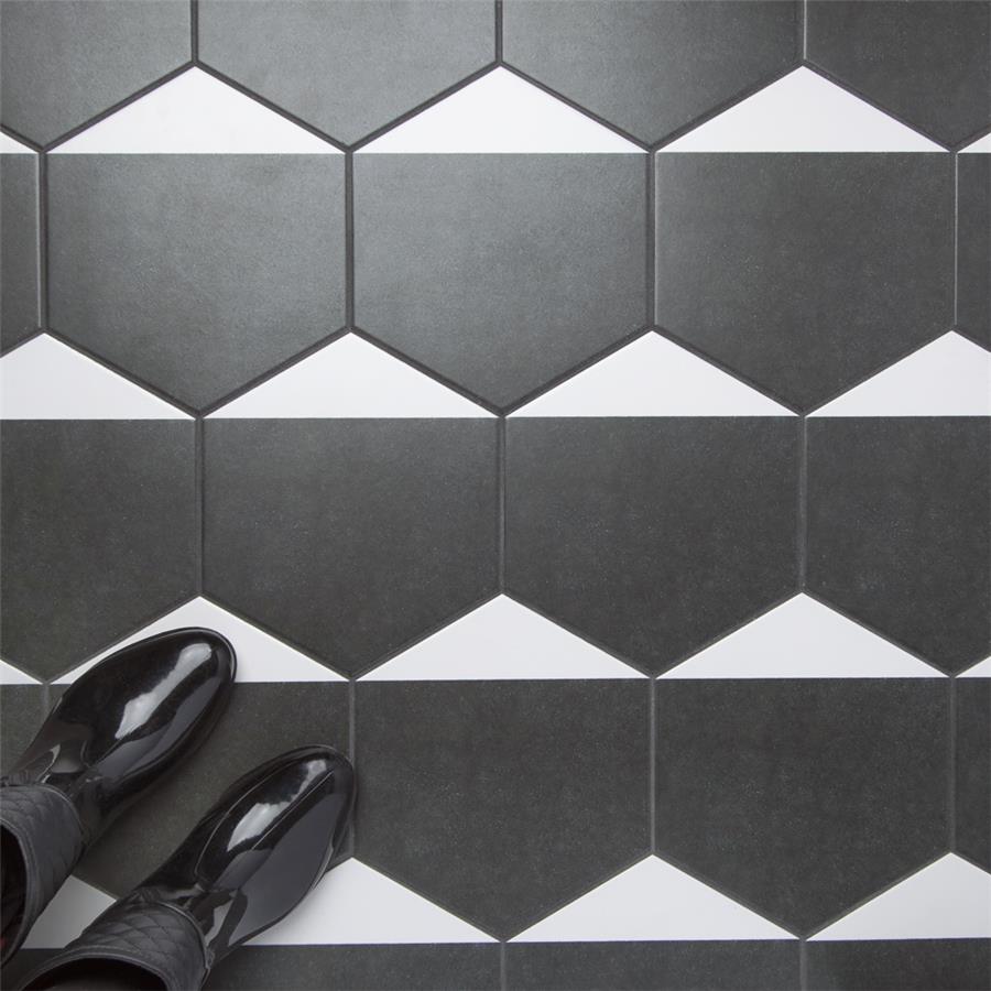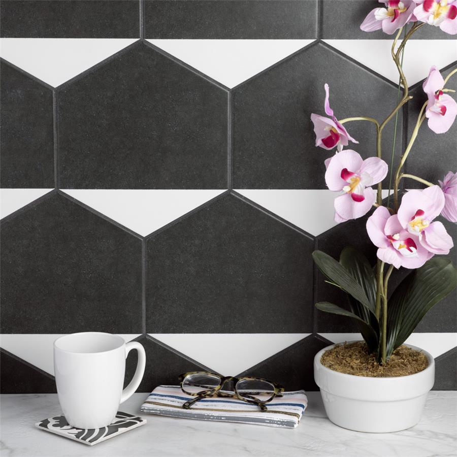 The SomerTile Peak Hex Blanco 8-5/8 in. x 9-7/8 in. Porcelain Floor and Wall Tile provides a modern look for any space. Its geometric shape is unique yet simplistic enough to integrate into any design, ranging from traditional style renovations to modern home projects. In muted black and chalky white tones, this patterned tile can be designed to create a classic or trendy look with the variations being endless. The medium-sheen glazed surface offers a sleek look that adds extra character to this unique artistic tile. Its impervious and frost resistant features make this an ideal tile for both indoor and outdoor use, including backsplashes, bathrooms, kitchens and patios. This tile is a perfect choice on its own or coordinate with other products in the Peak series.Tile is the better choice for your space. This tile is made from natural ingredients, making it a healthy choice as it is free from allergens, VOCs, formaldehyde and PVC.