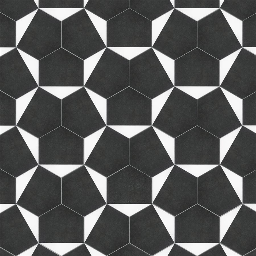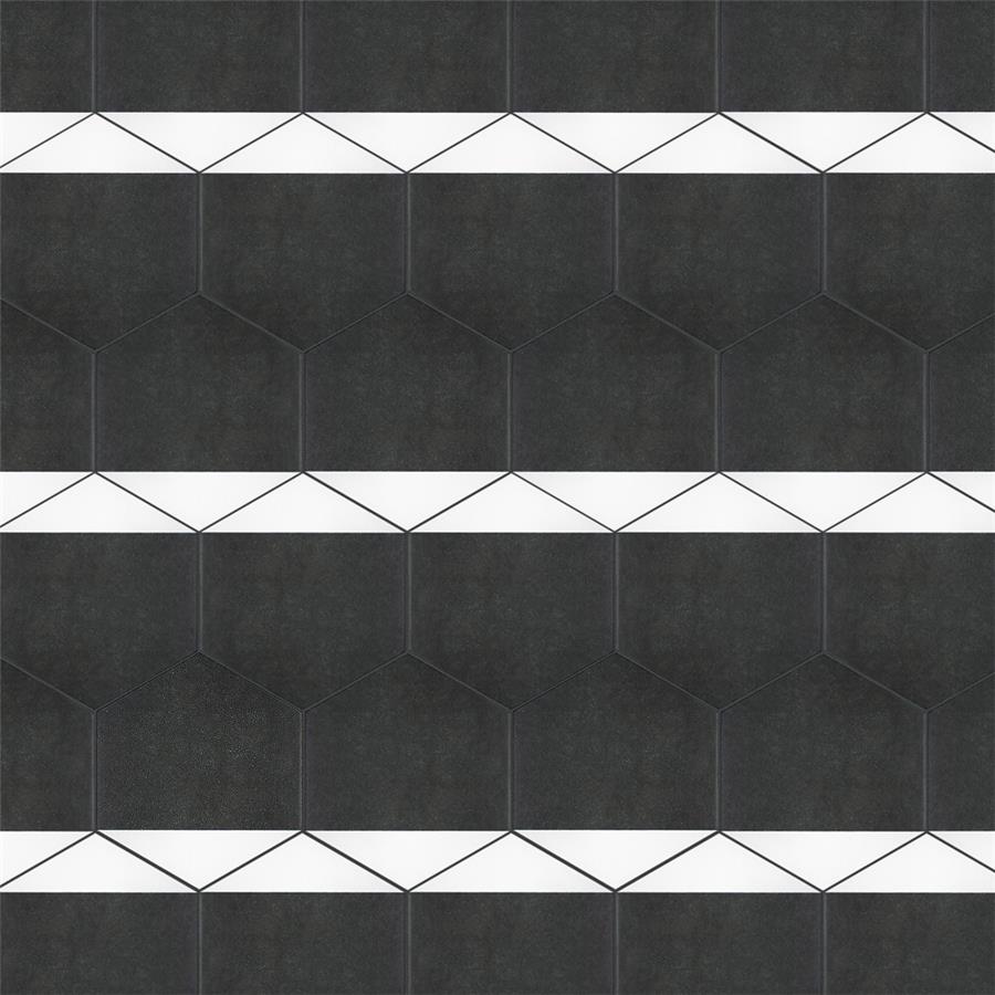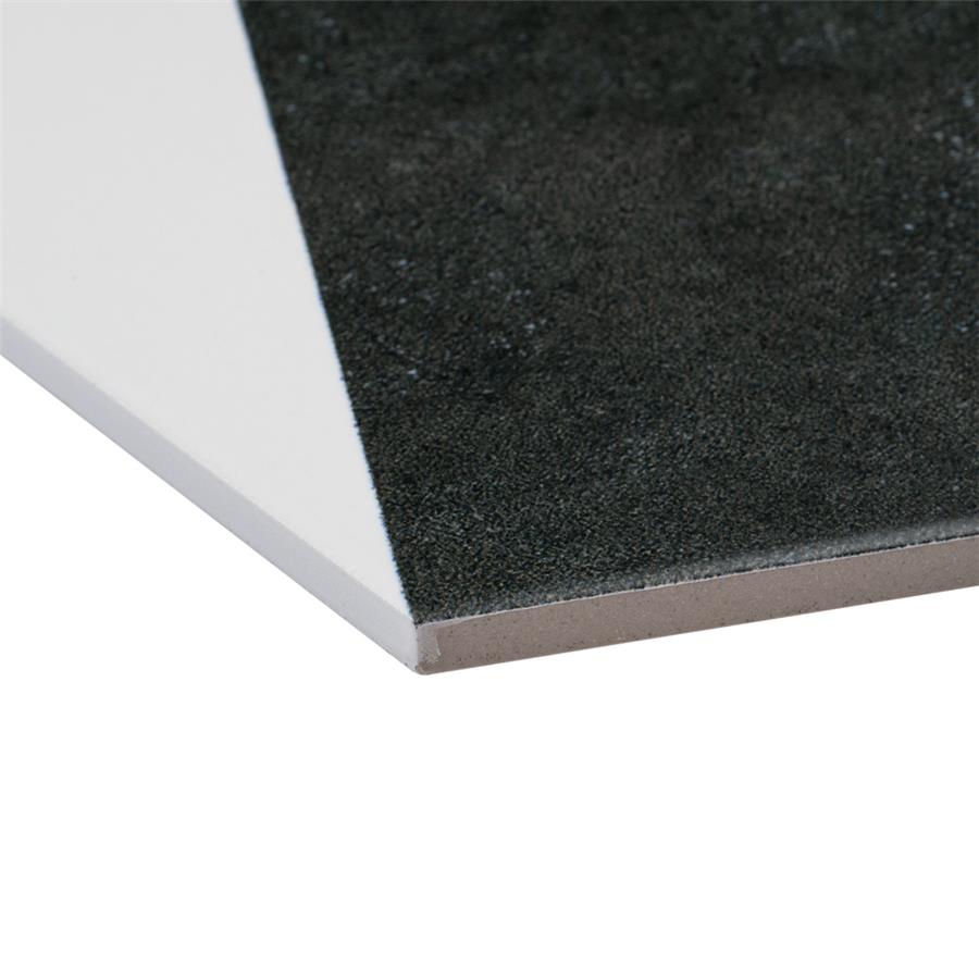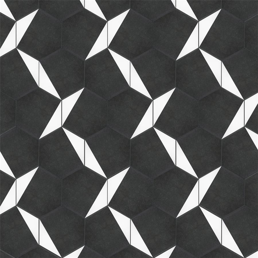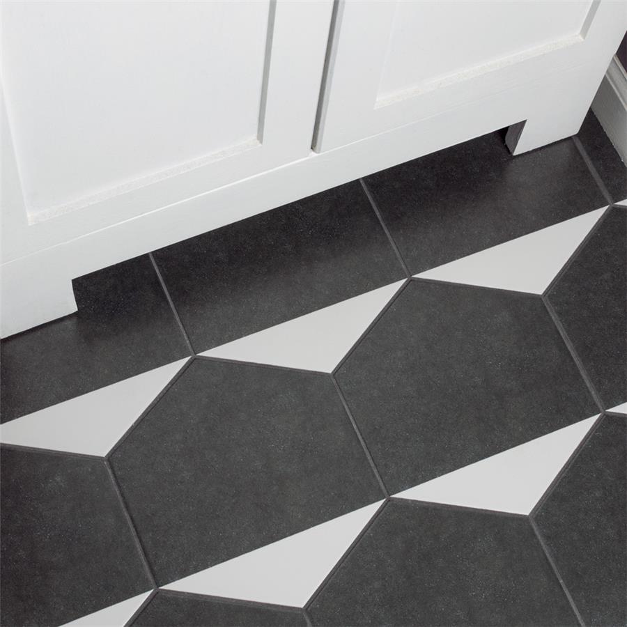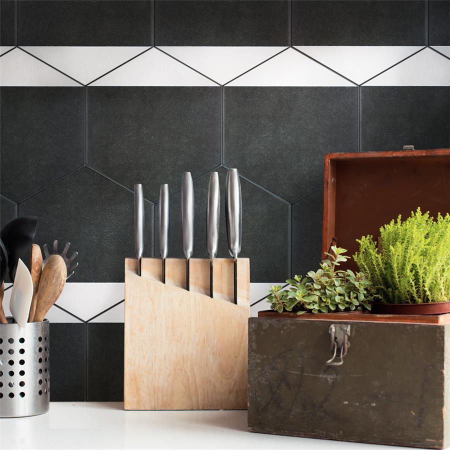 The SomerTile Peak Hex Blanco 8-5/8 in. x 9-7/8 in. Porcelain Floor and Wall Tile provides a modern look for any space. Its geometric shape is unique yet simplistic enough to integrate into any design, ranging from traditional style renovations to modern home projects. In muted black and chalky white tones, this patterned tile can be designed to create a classic or trendy look with the variations being endless. The medium-sheen glazed surface offers a sleek look that adds extra character to this unique artistic tile. Its impervious and frost resistant features make this an ideal tile for both indoor and outdoor use, including backsplashes, bathrooms, kitchens and patios. This tile is a perfect choice on its own or coordinate with other products in the Peak series.Tile is the better choice for your space. This tile is made from natural ingredients, making it a healthy choice as it is free from allergens, VOCs, formaldehyde and PVC.